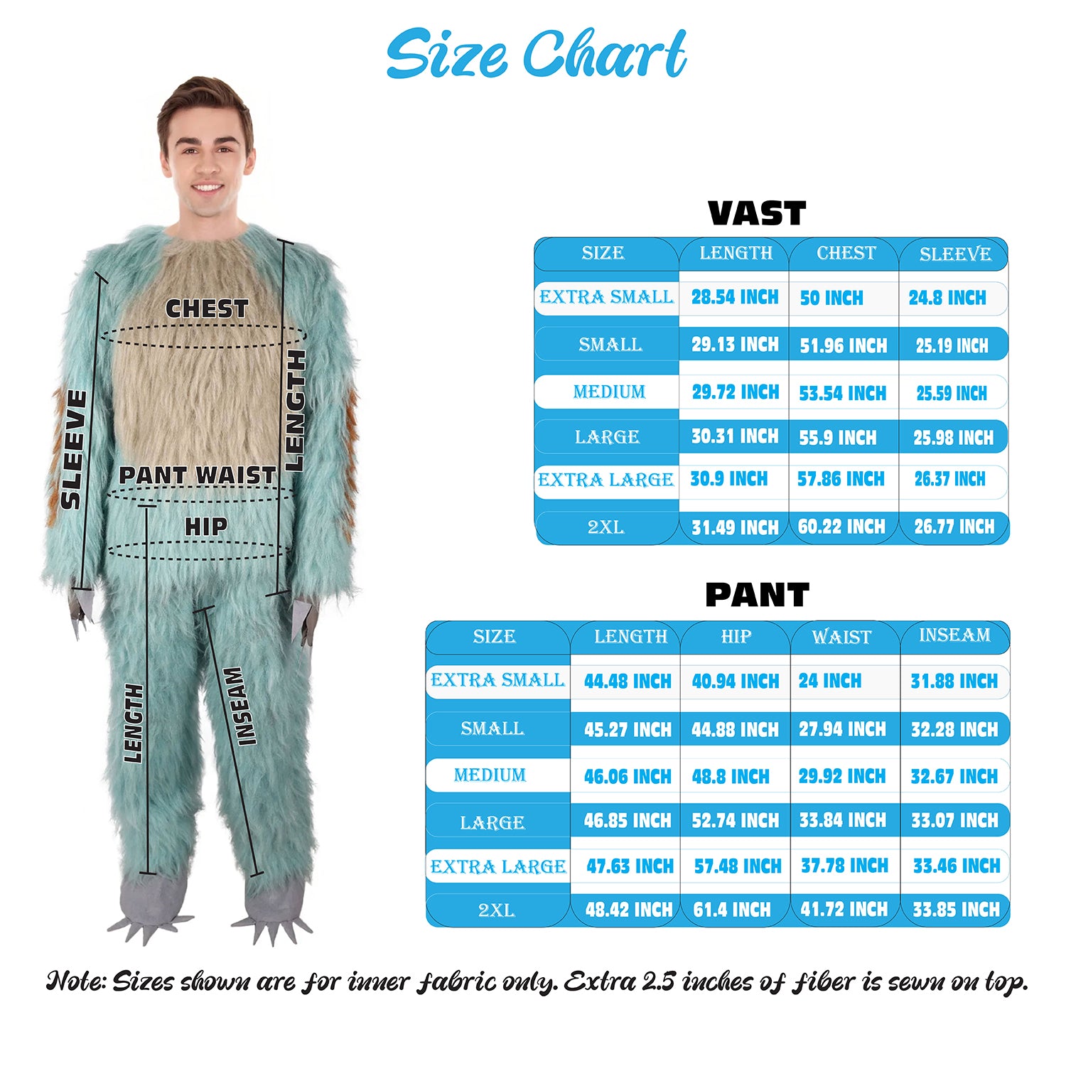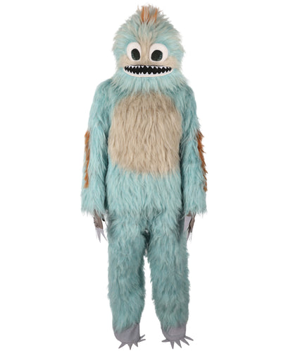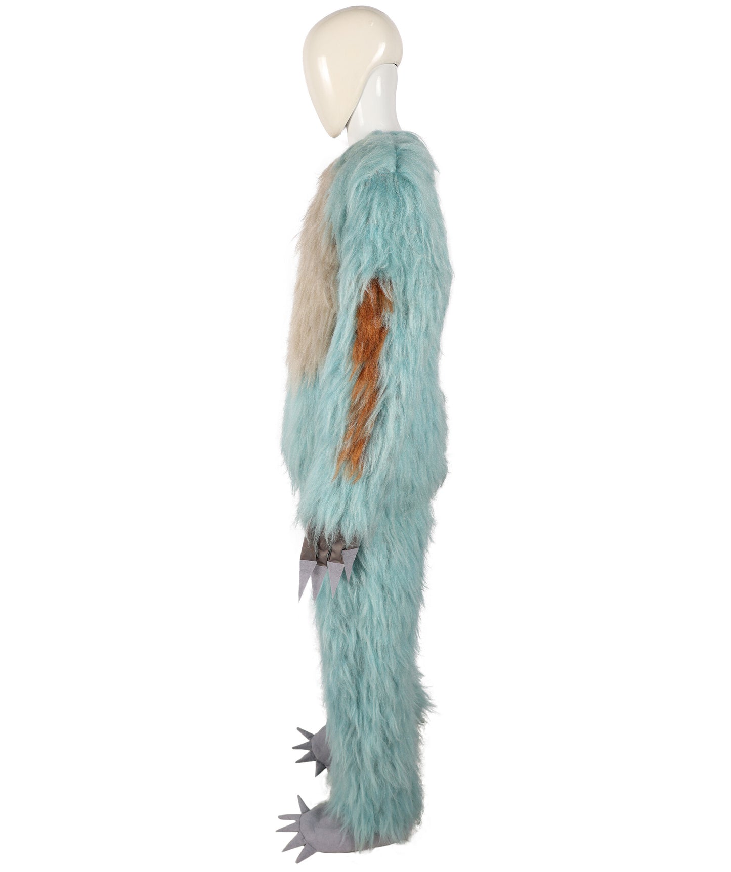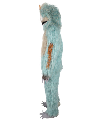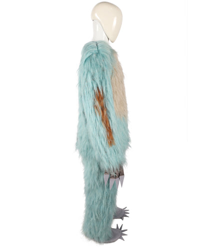 The full-body suit of the costume is composed of fluffy, soft faux fur, ensuring a fun and realistic monster appearance. A unique and identifiable character design is produced by the light blue fur with brown patches on the arms and beige chest embellishments. Playful Monster Costume Set is not only suitable for cosplay or Halloween but also acceptable for birthday parties, dancing, acting, or simply having a good time at any gathering.