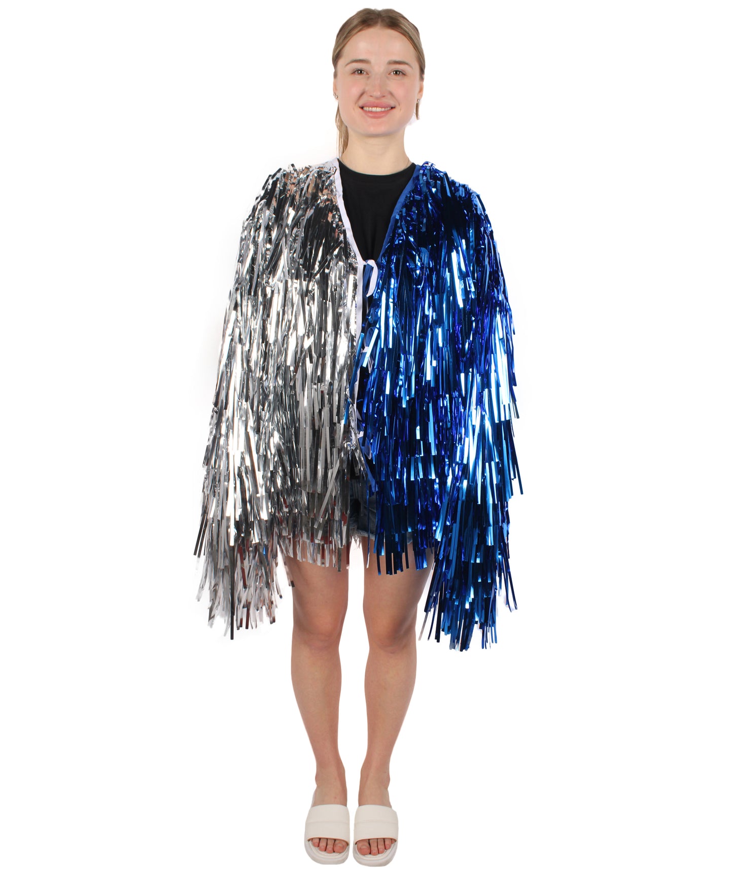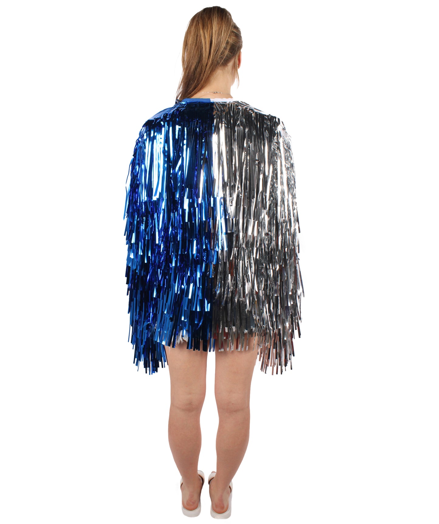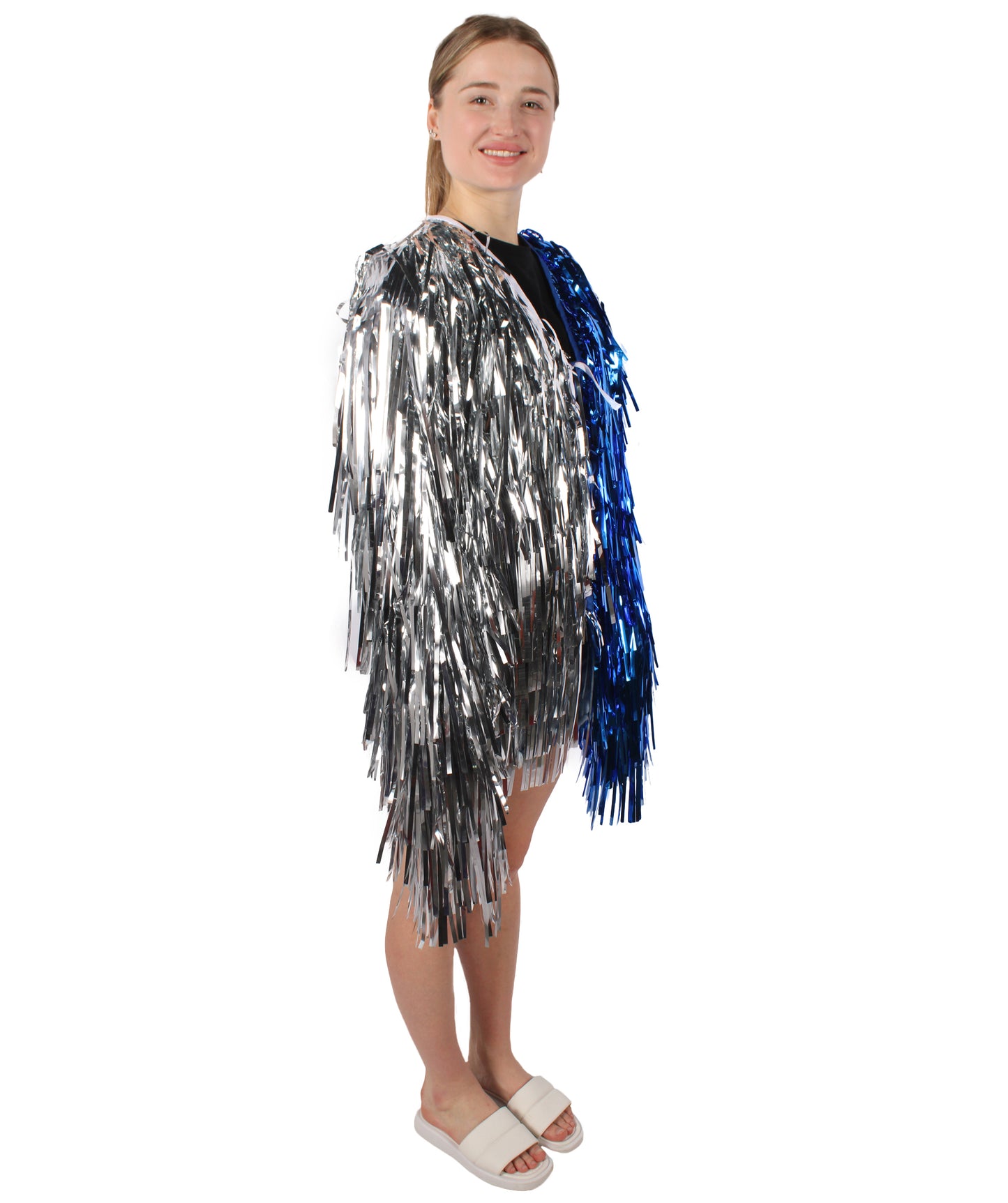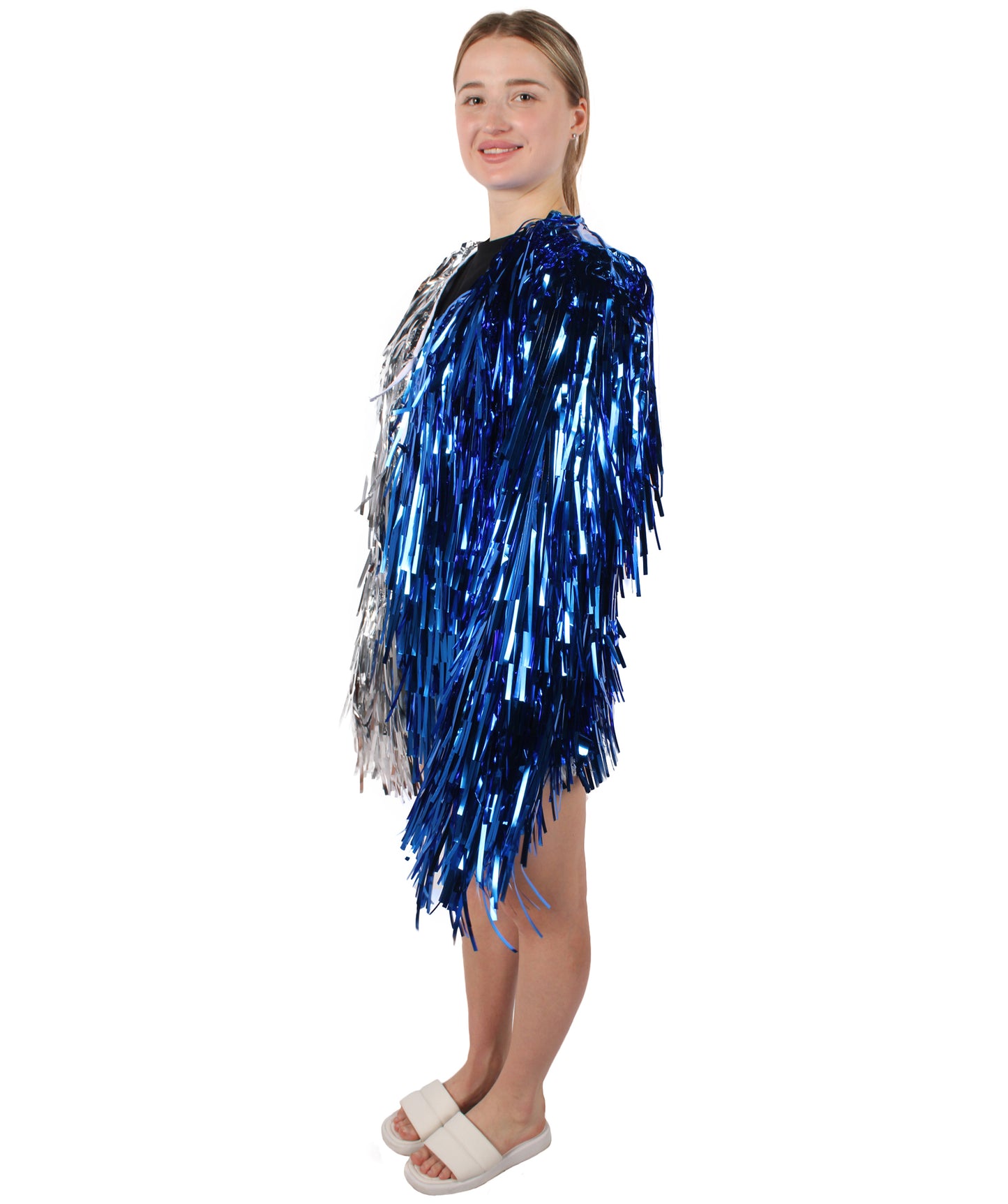 This tinsel costume jacket comes in a color combination which is blue and white. This Thick Tinsel Costume Jacket can be your choice when you're attending a Halloween party, convention, DJ event, or carnival.