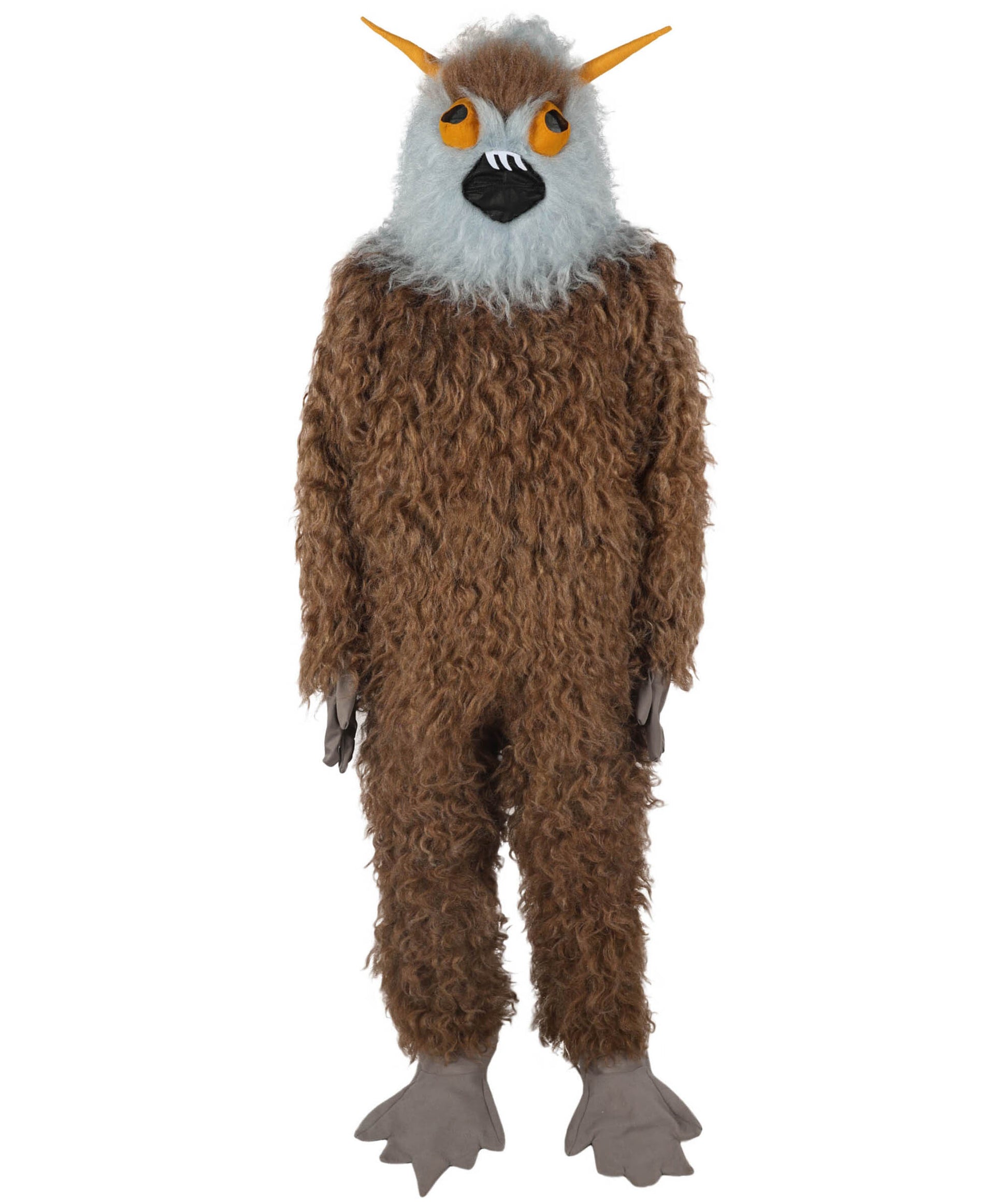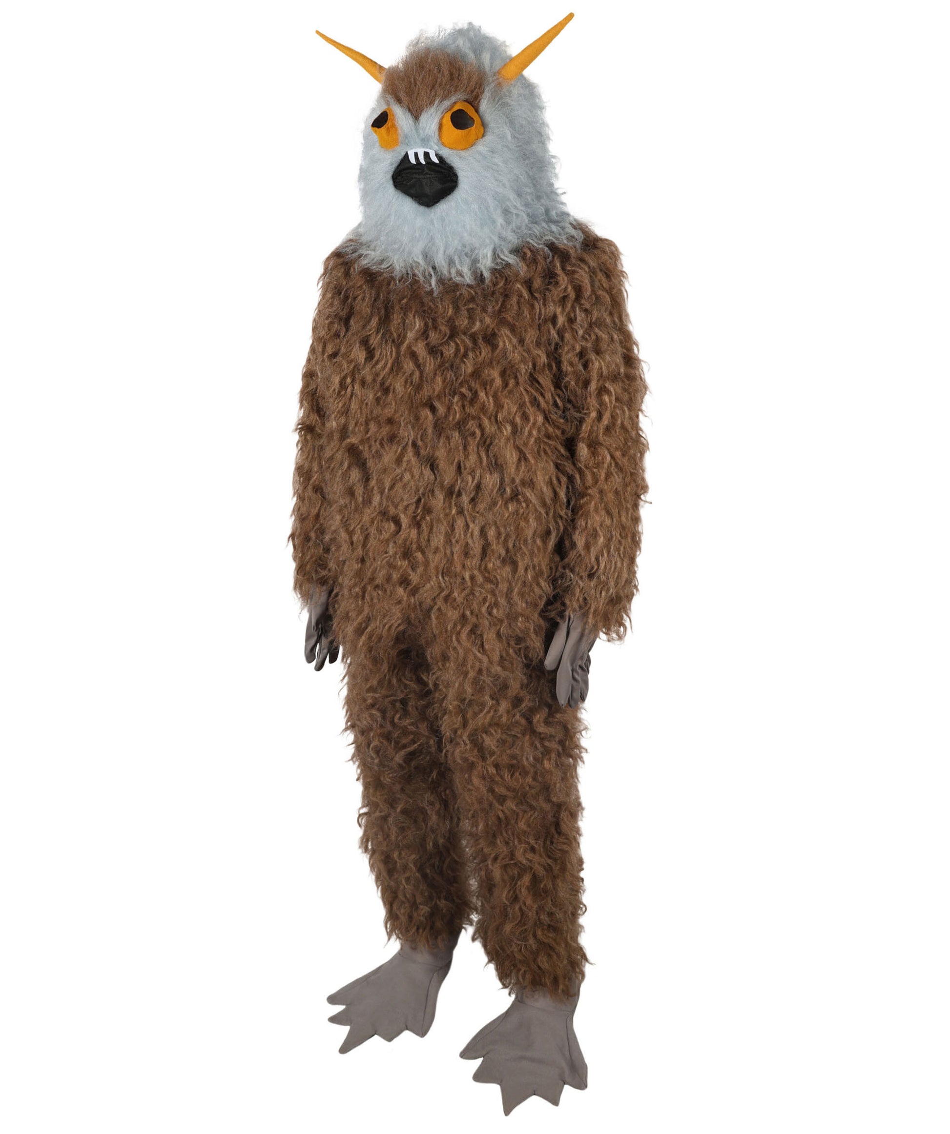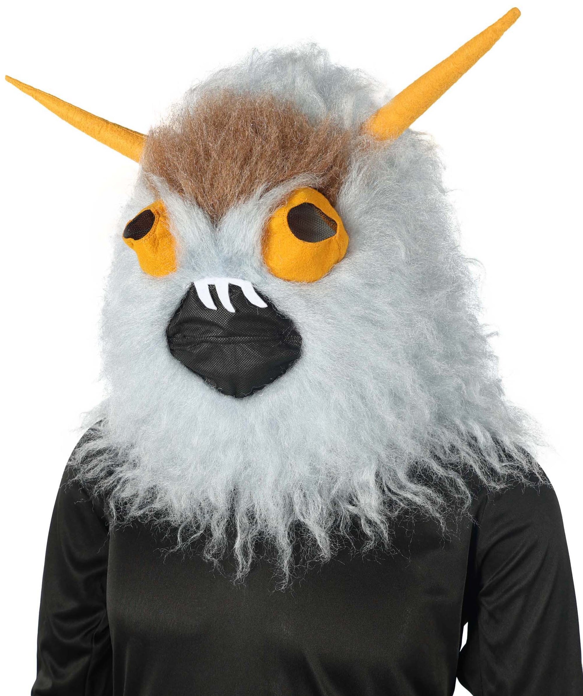 The Monster Costume features ultra-soft, flame-retardant synthetic fur with a striking light blue and brown color combination, giving it a realistic yet whimsical monster look. With its shaggy fur texture, cartoonish eyes, long horns, and amusing wide grin, the head mask adds an extra layer of fun and mystery to your character. Whether you are entertaining a crowd, attending a cosplay convention, or just looking to make a bold statement at a party, this Monster Costume is sure to stand out!