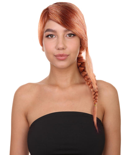 HPO Women Braided Side Part Wig | Peach Color Options | Flame-retardant Synthetic Fiber