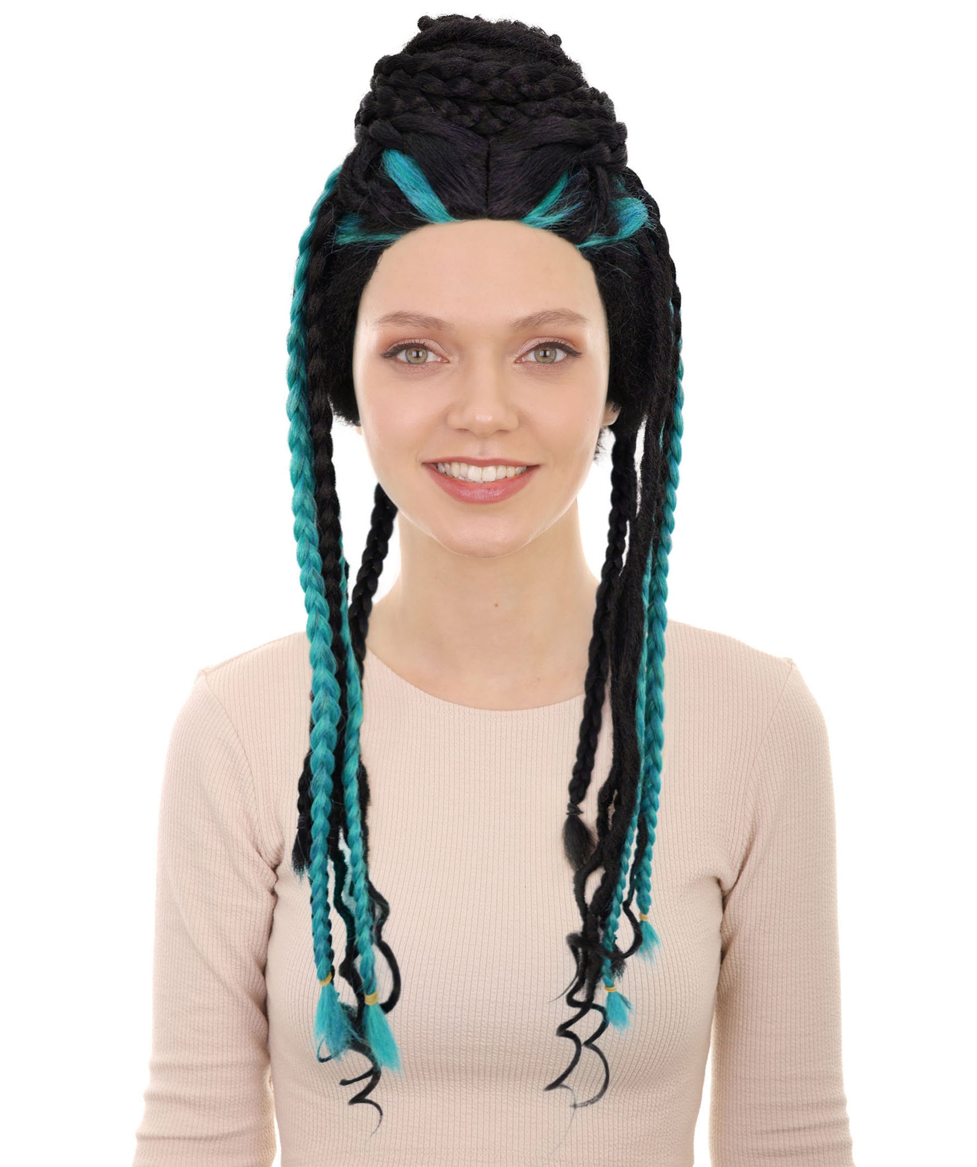 HPO Women’s Afro Fusion Braided Multicolor Wig with Hair Accessories | Ombré Braids for Cosplay & Halloween | Flame-Retardant Synthetic Fiber | Festival Ready Look