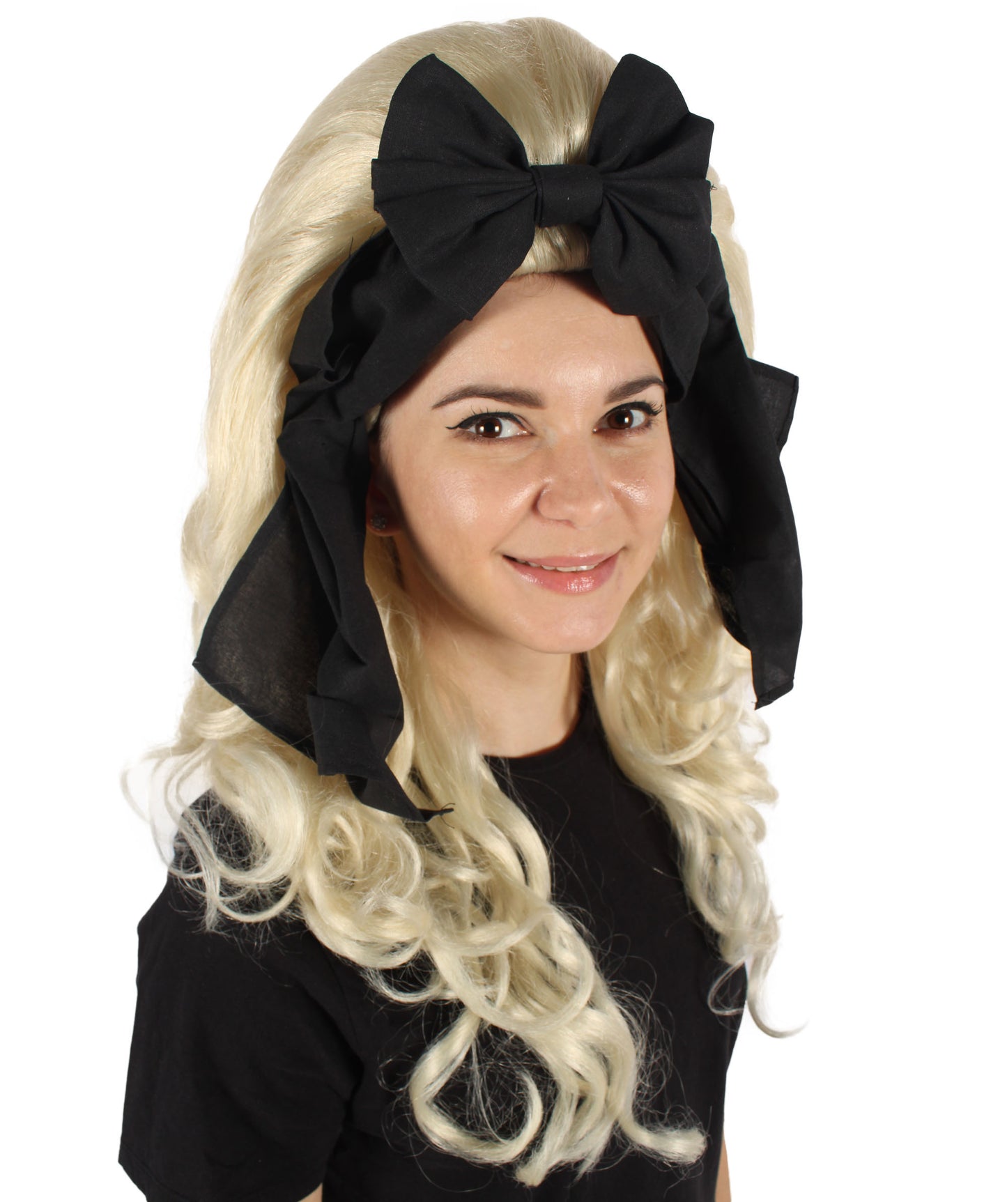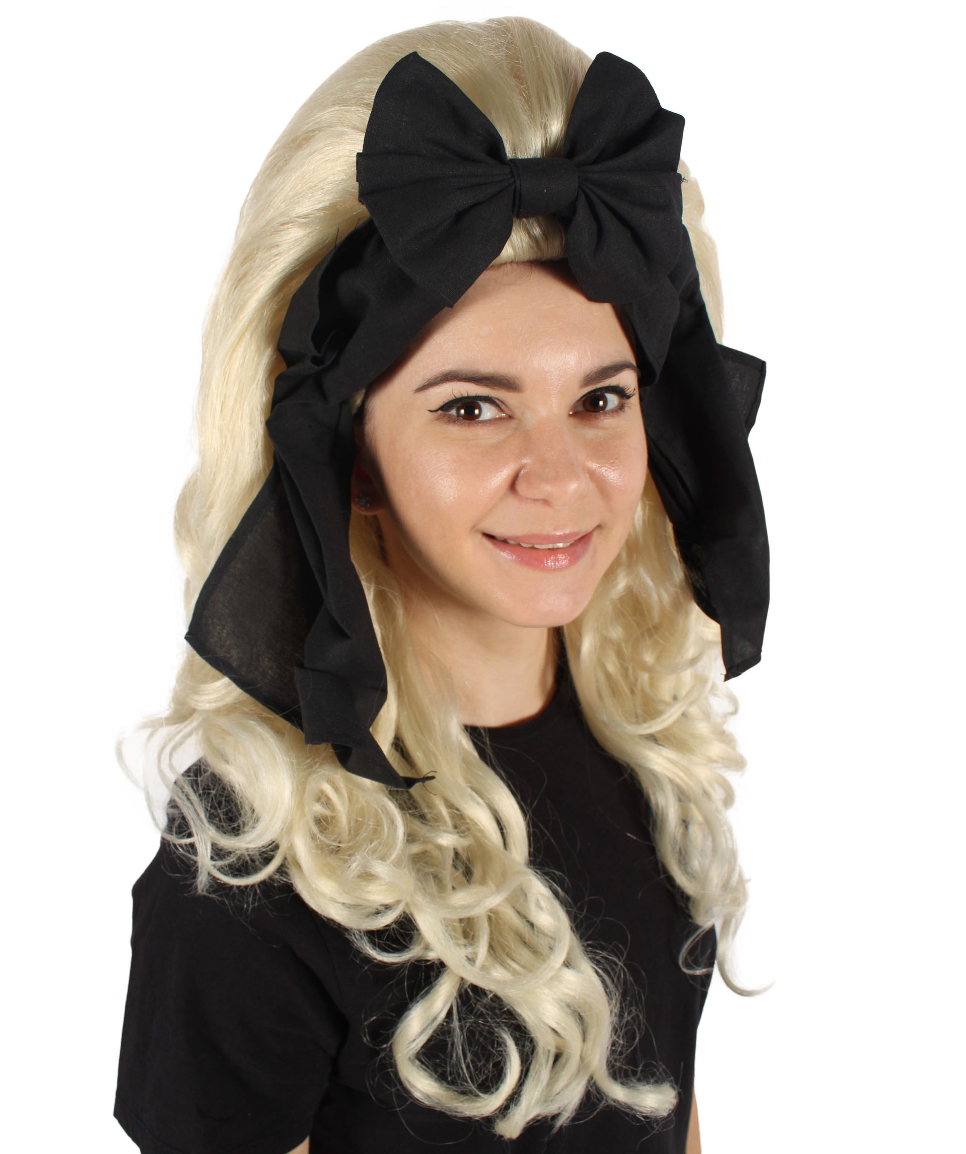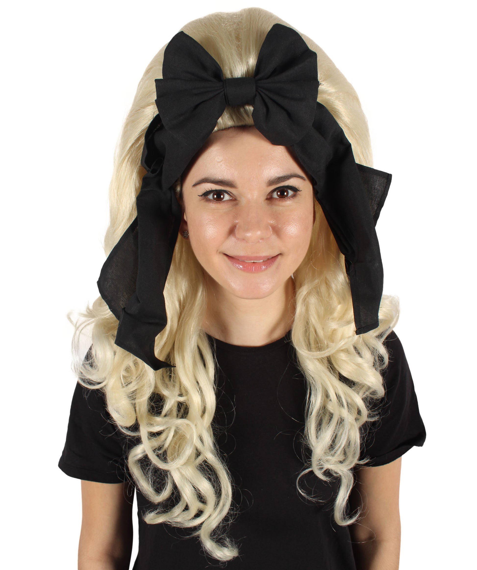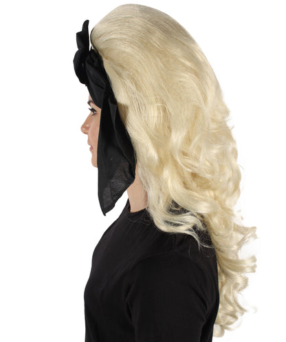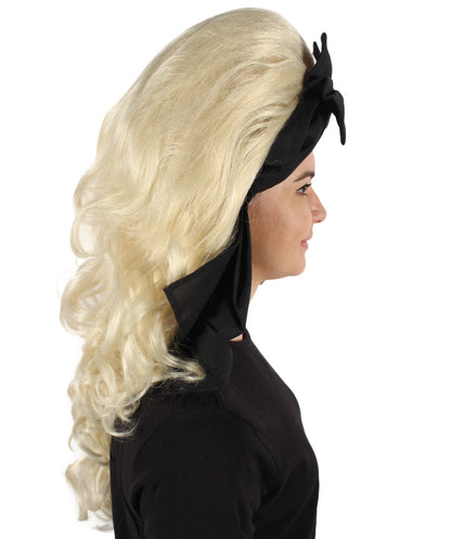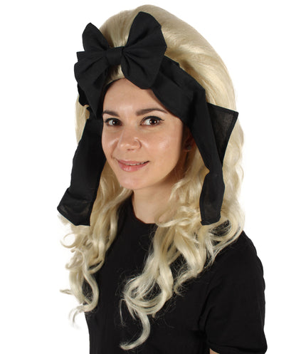 HPO Women’s English Drag Queen Blonde Wig with Black Hair Bow | Capless Cap Design | Flame-retardant Synthetic Fiber
