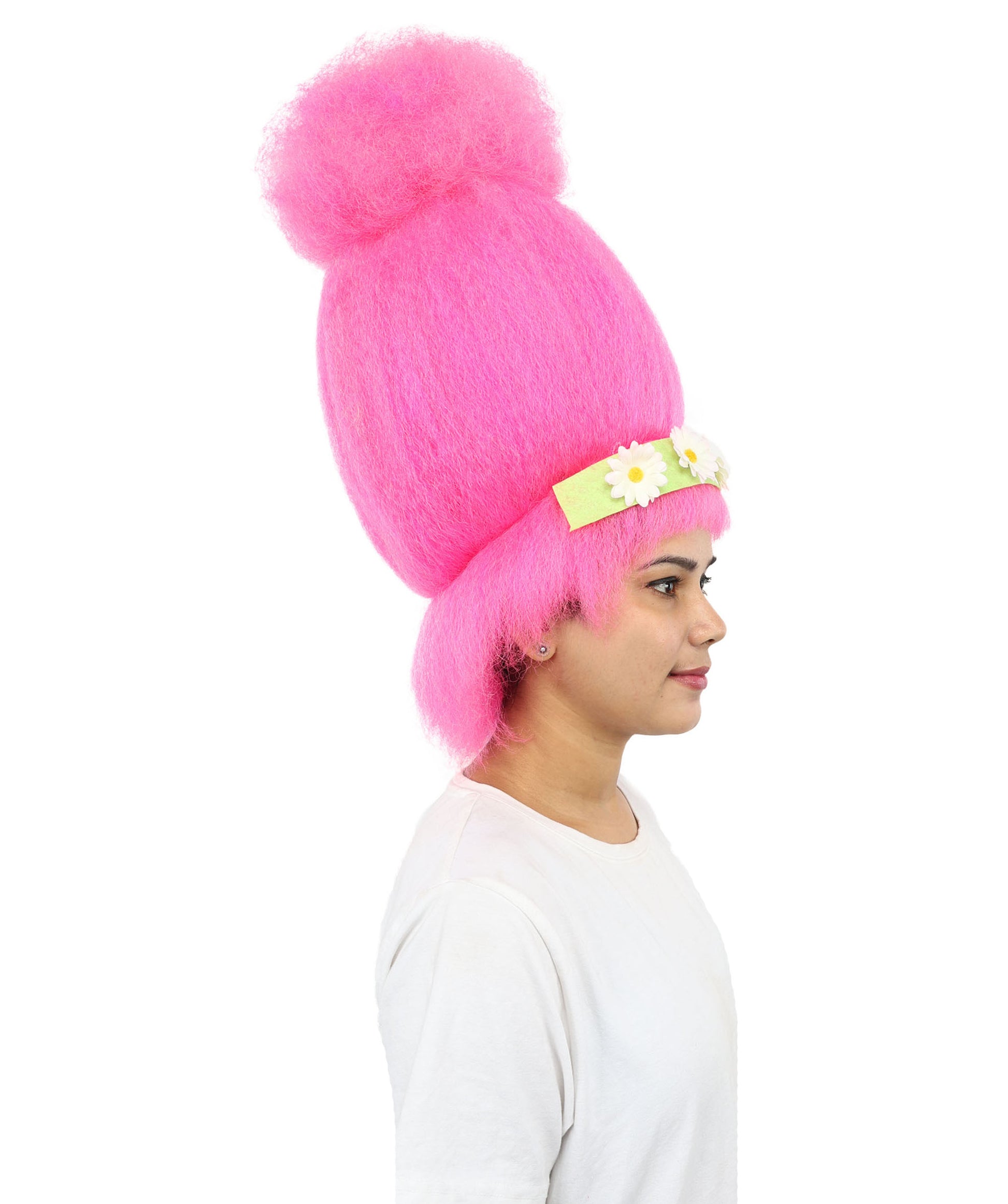 HPO Women’s Troll Wig | Bright Pink High-Volume Hairstyle | Synthetic Hair for Cosplay, Halloween, Stage Performances & Parties"
