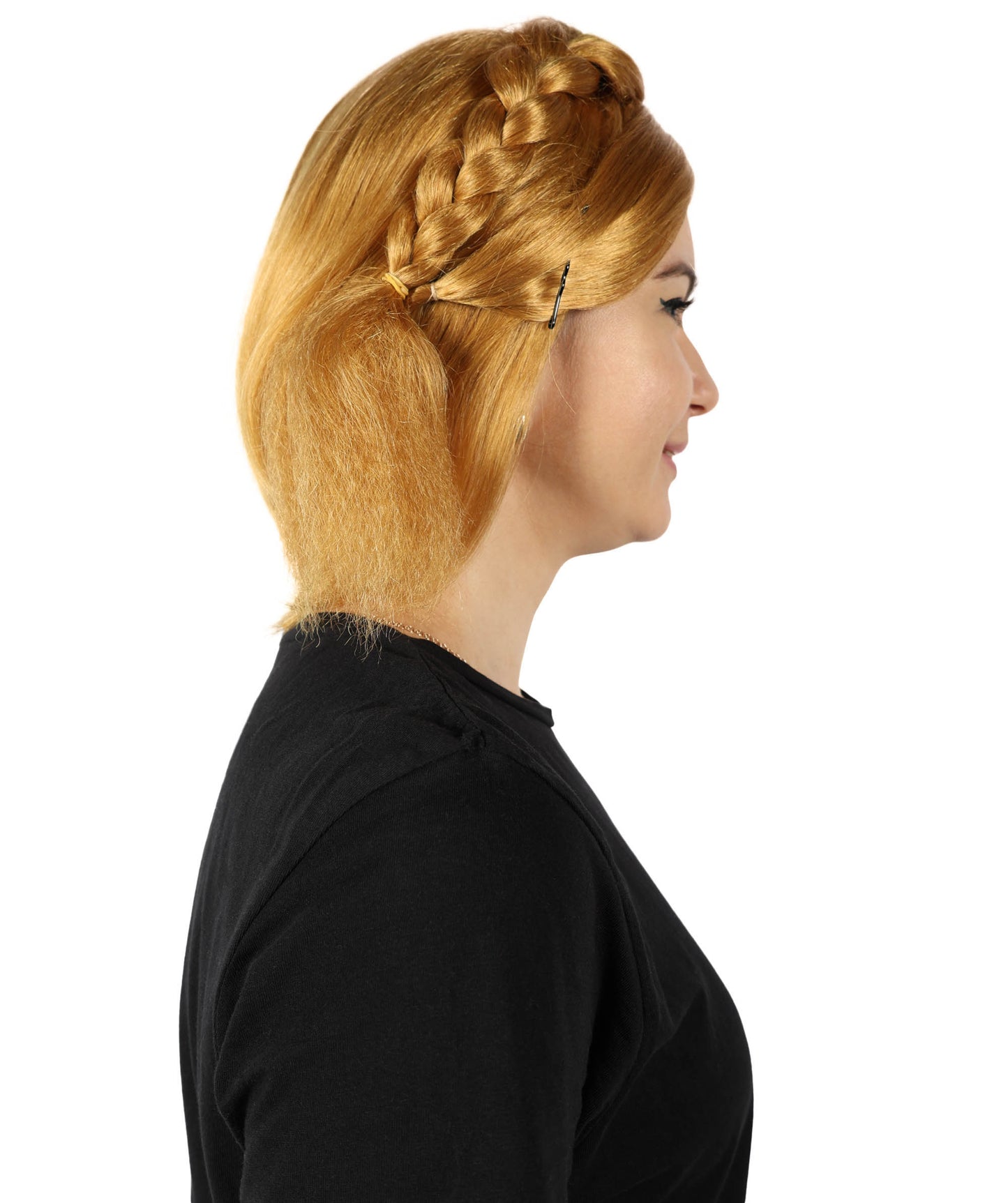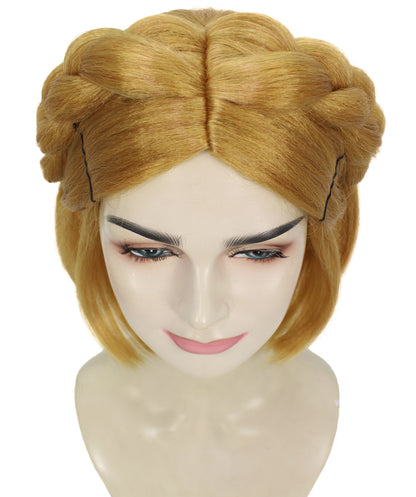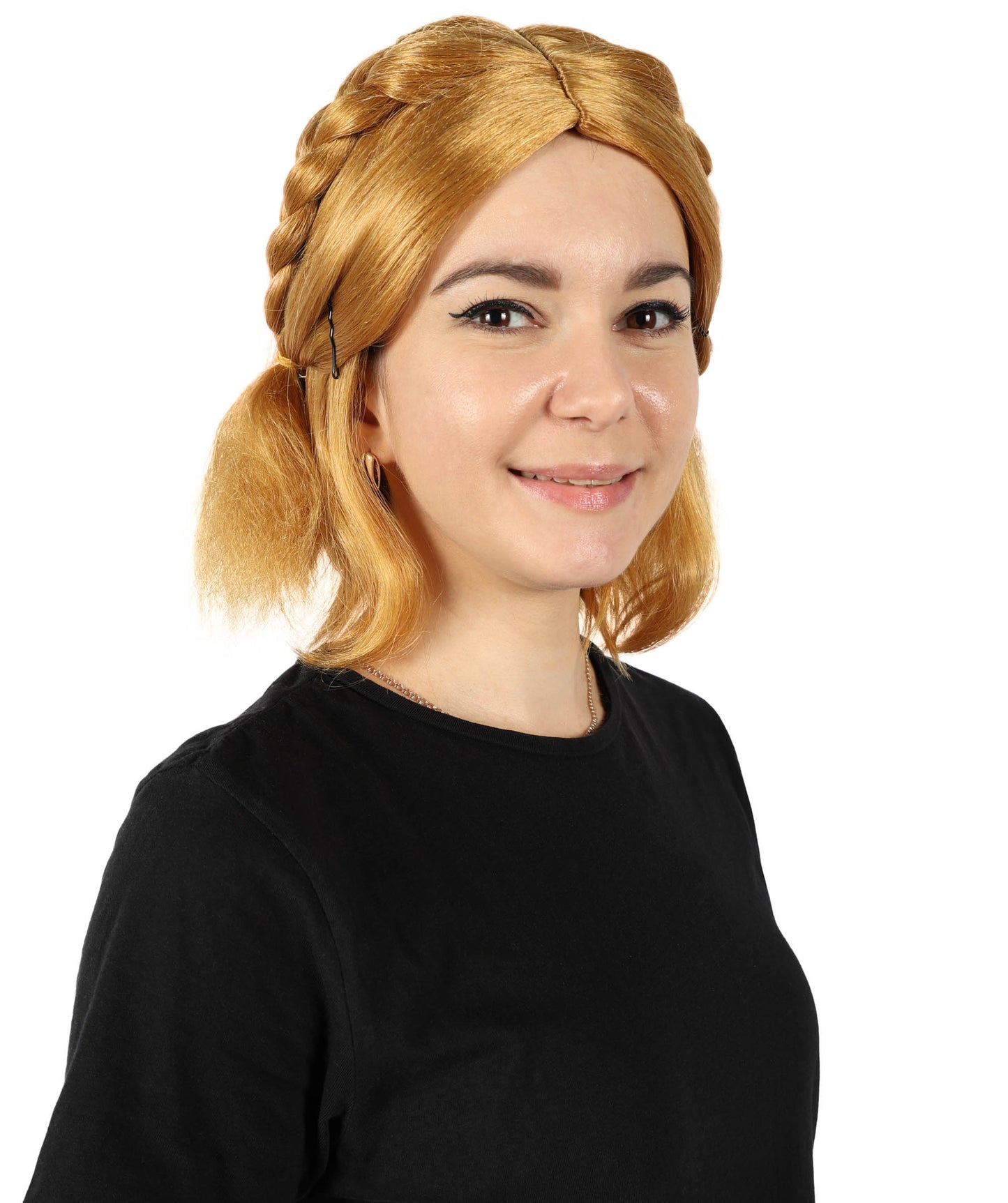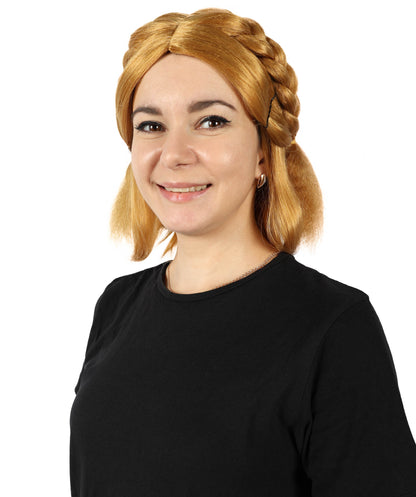 It is a short blonde Bob Wig with a beautiful braided hairstyle in the front. Creating a dramatic and elegant character with our Bob Wig is very easy because it complements your overall outfit.