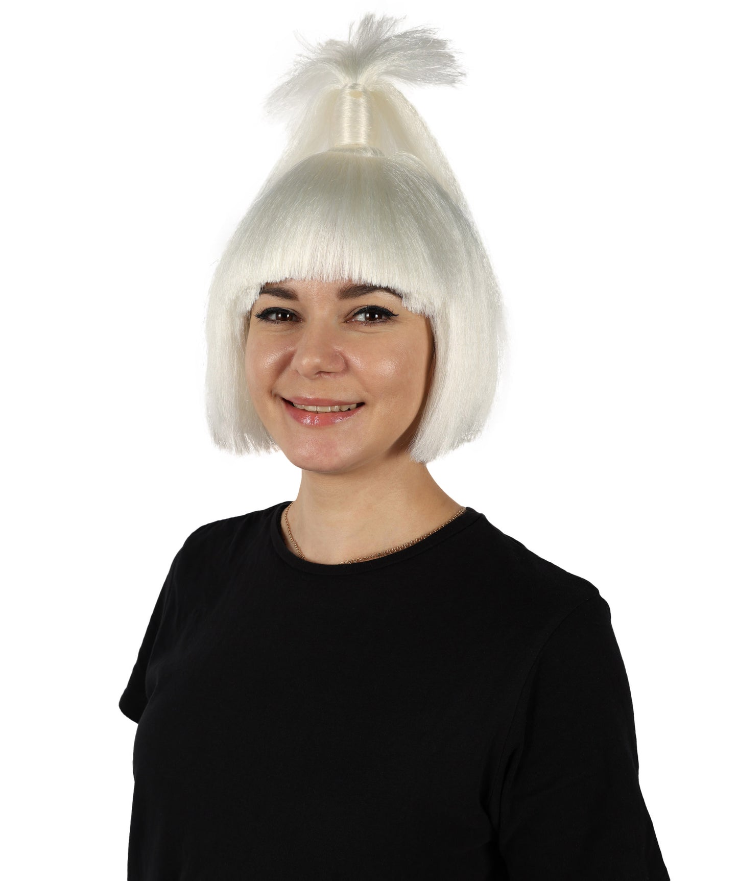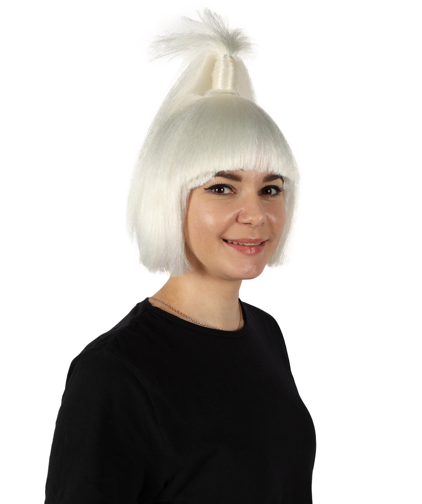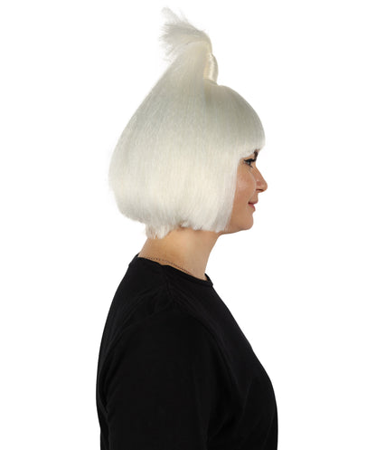 HPO Women's American Figure Skater White Ponytail Wig I Halloween Wig I Flame-retardant Synthetic Fiber