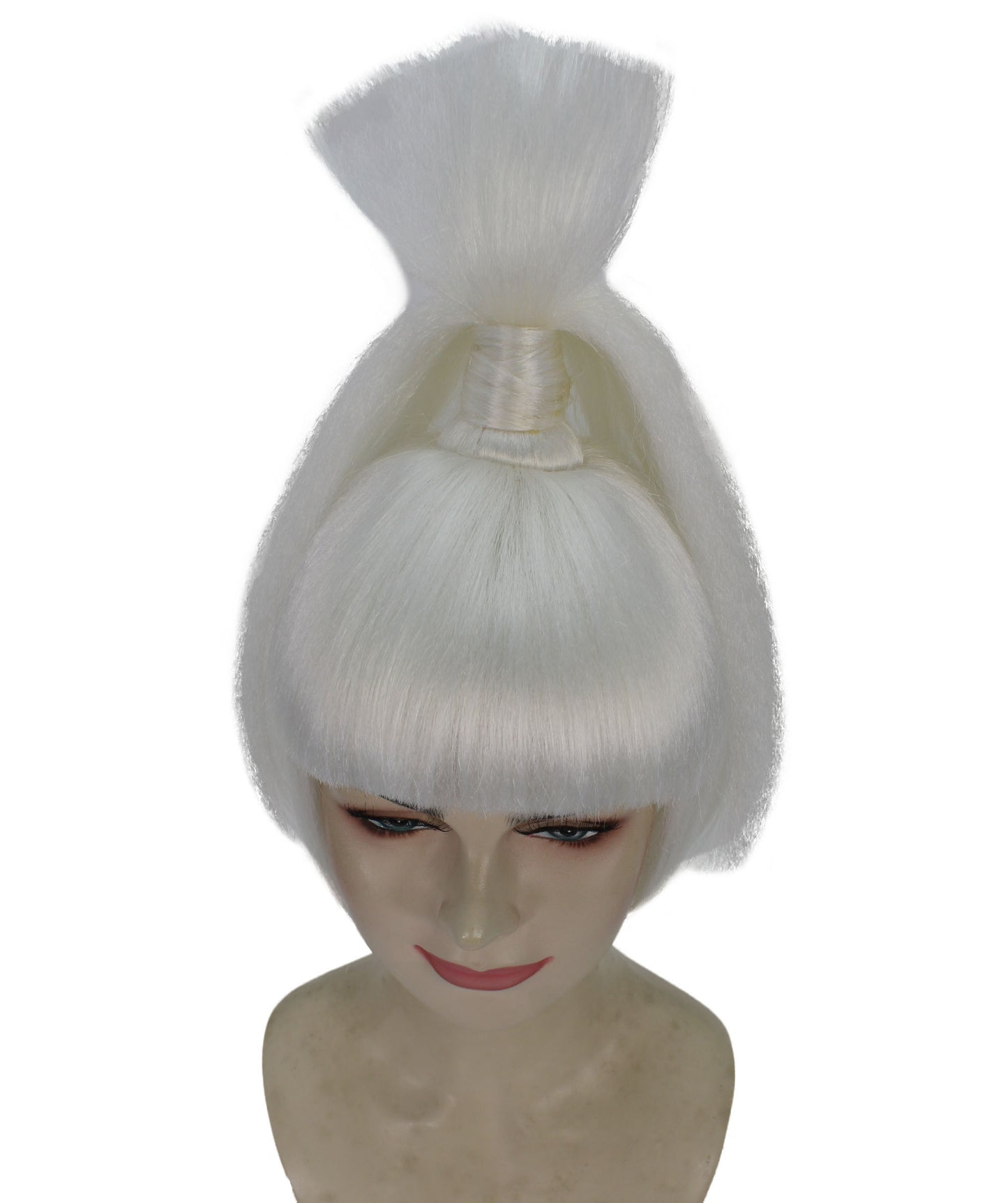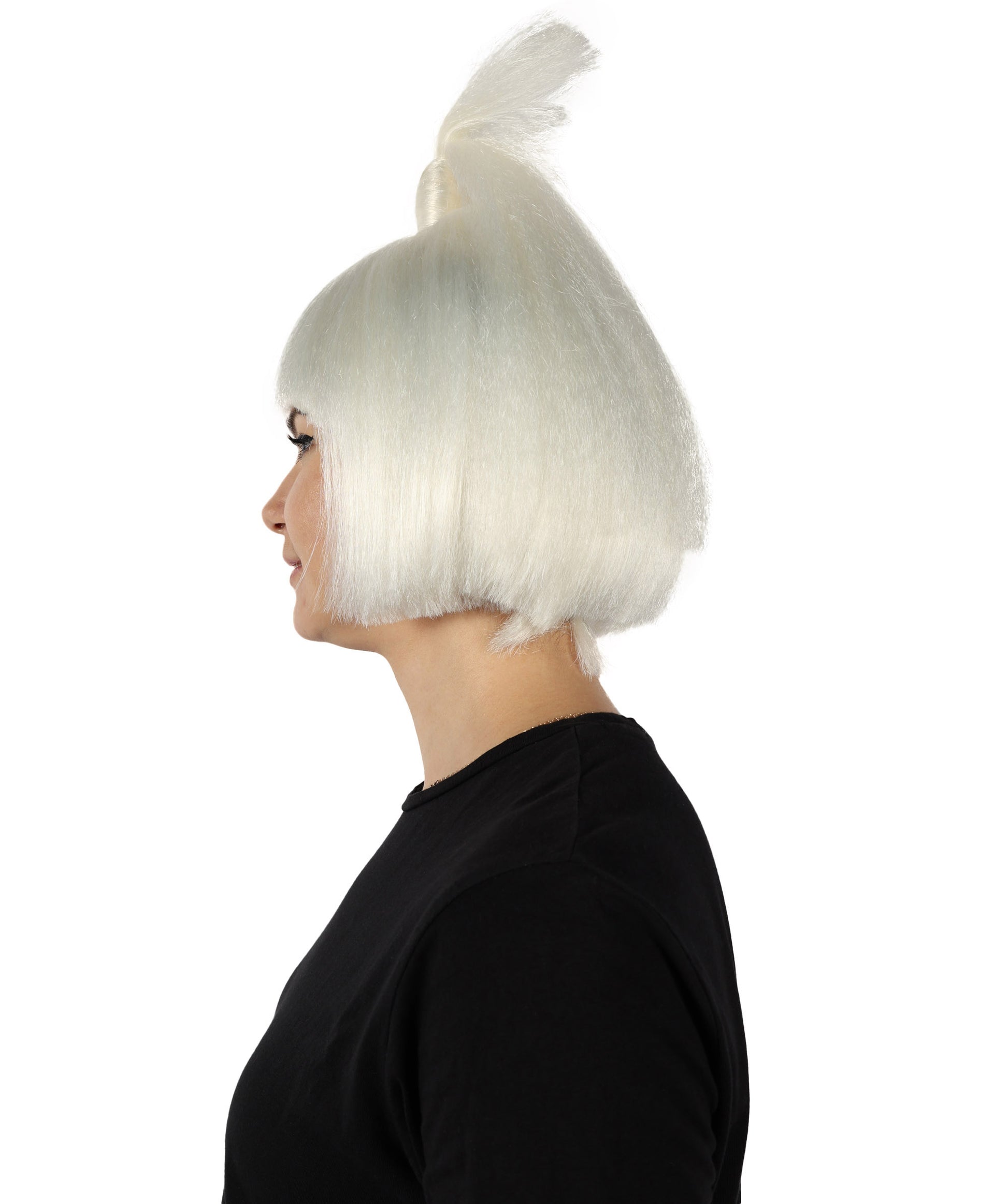 For Halloween, our ponytail wig is a stylish and smart accessory that helps you change your looks to fit different people or characters. It is a short ponytail wig that provides a dynamic and playful look. White color with a very unique shape creates a dramatic look. Inspired by a famous American drag queen who is popular for stage performance, figure skater, and choreographer.
