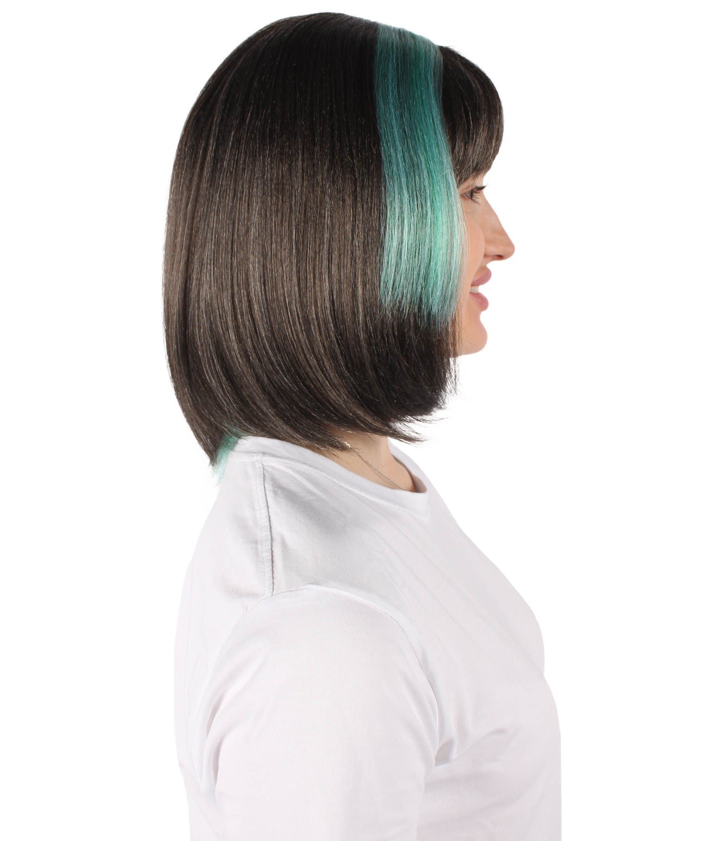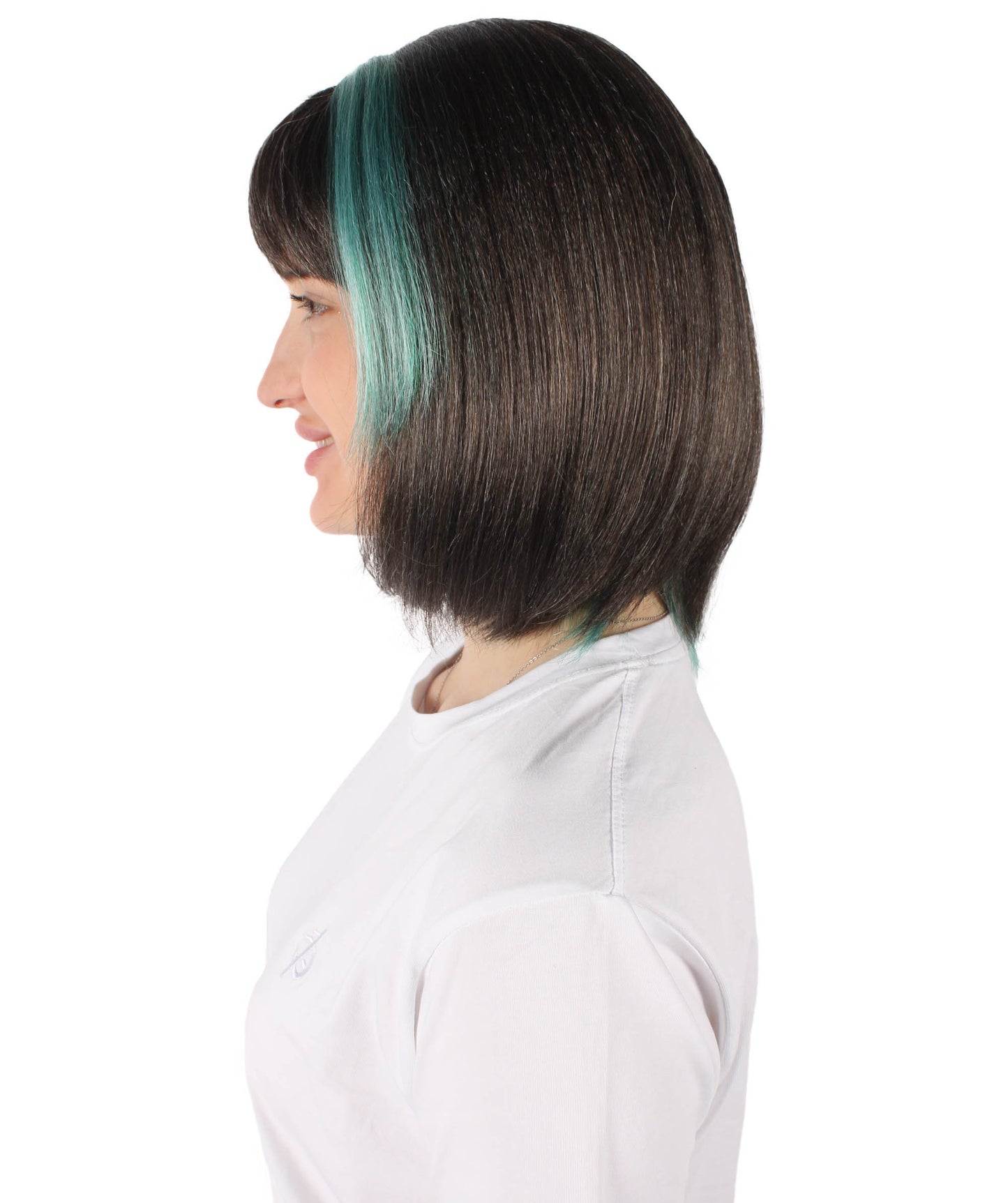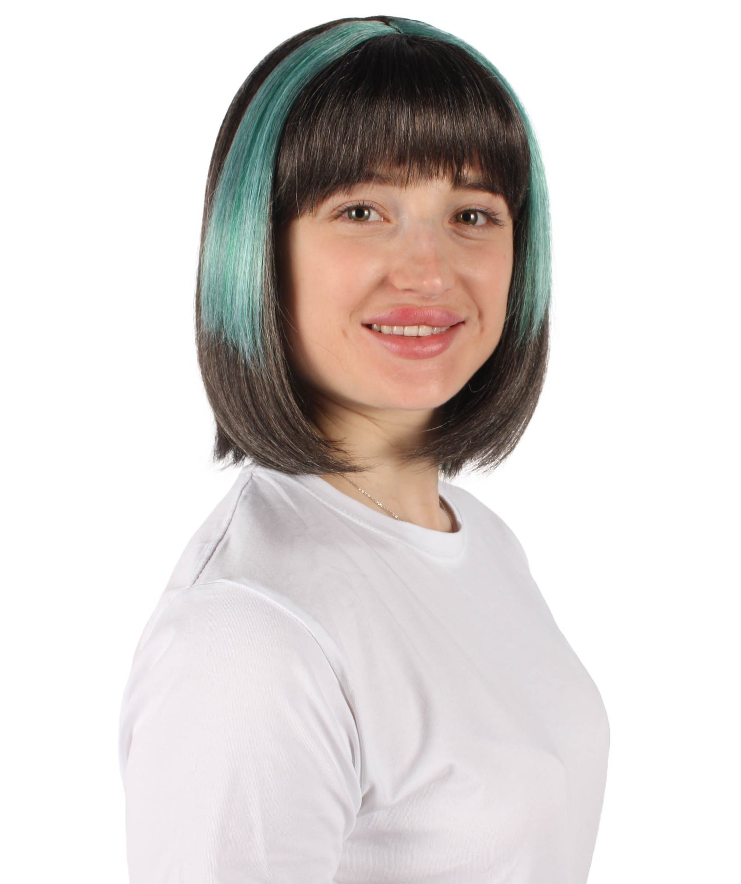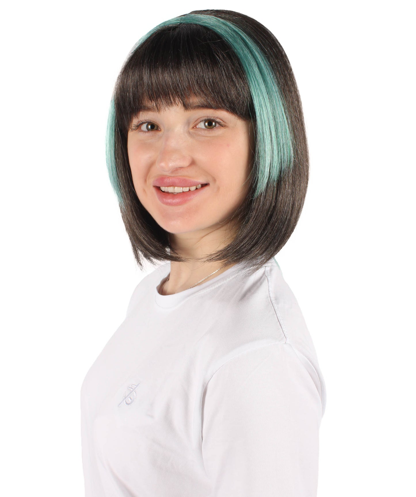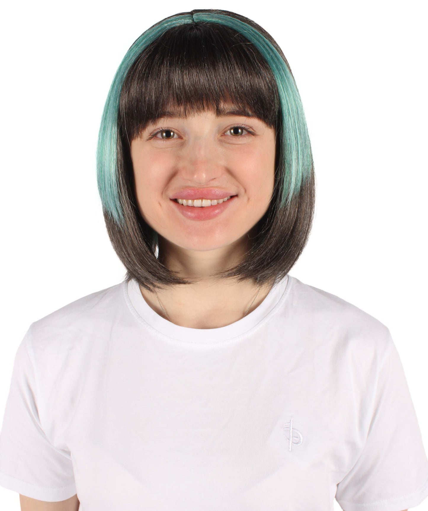 HPO Women's Anime Grey Mixed Blue Short Halloween Wig | Perfect for Halloween| Flame-retardant Synthetic Fiber