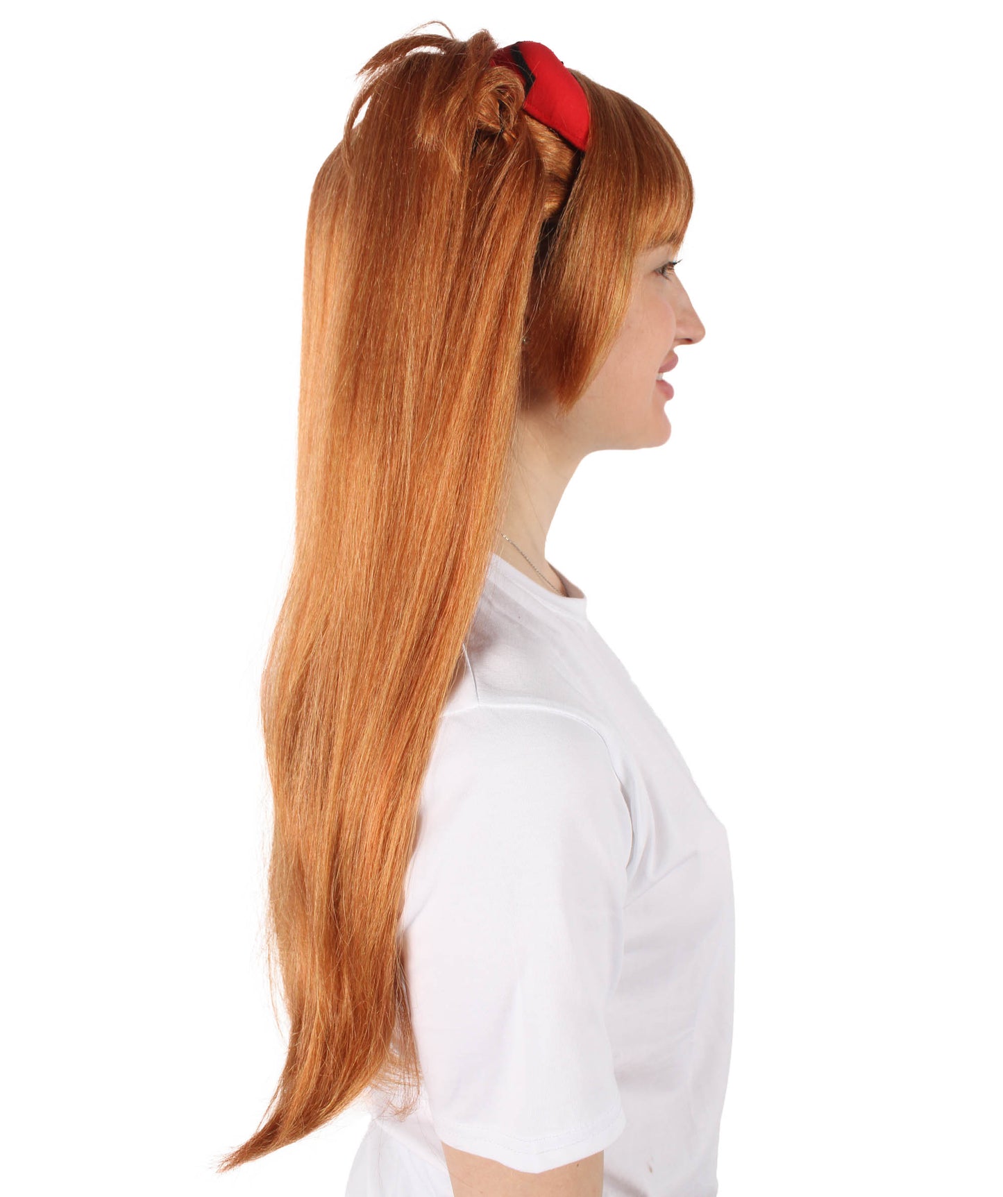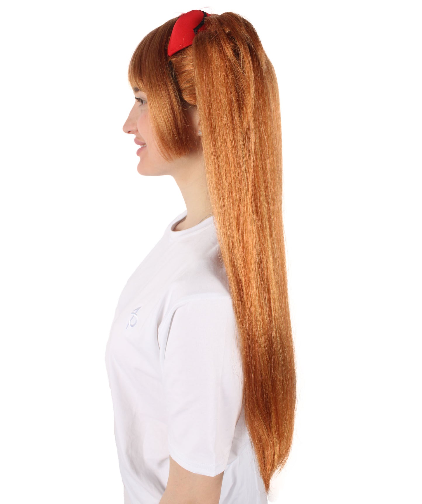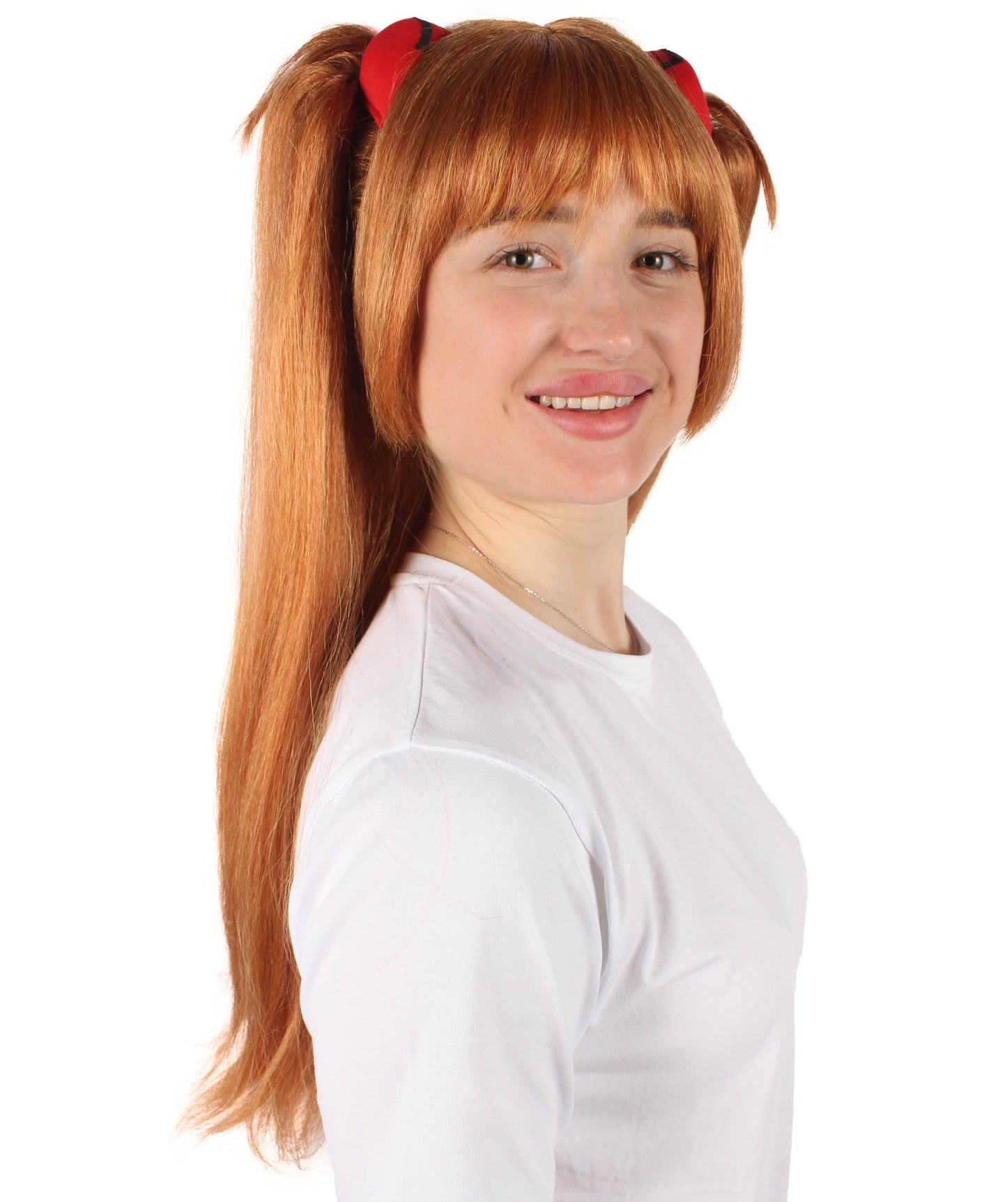 This is our Double Ponytail Brown Wig, an ideal accessory for your adventures, inspired by a science fiction anime's main lead character. This wig is flame retardant and made with soft synthetic fiber that’ll ensure safety along with the comfort feeling of your long wear time. This wig resembles the protagonist of the anime, who is the second child and pilot who needs to deal with fighting otherworldly monsters using giant machines, this brown wig captures the outlook of the character's signature double ponytail hairstyle.