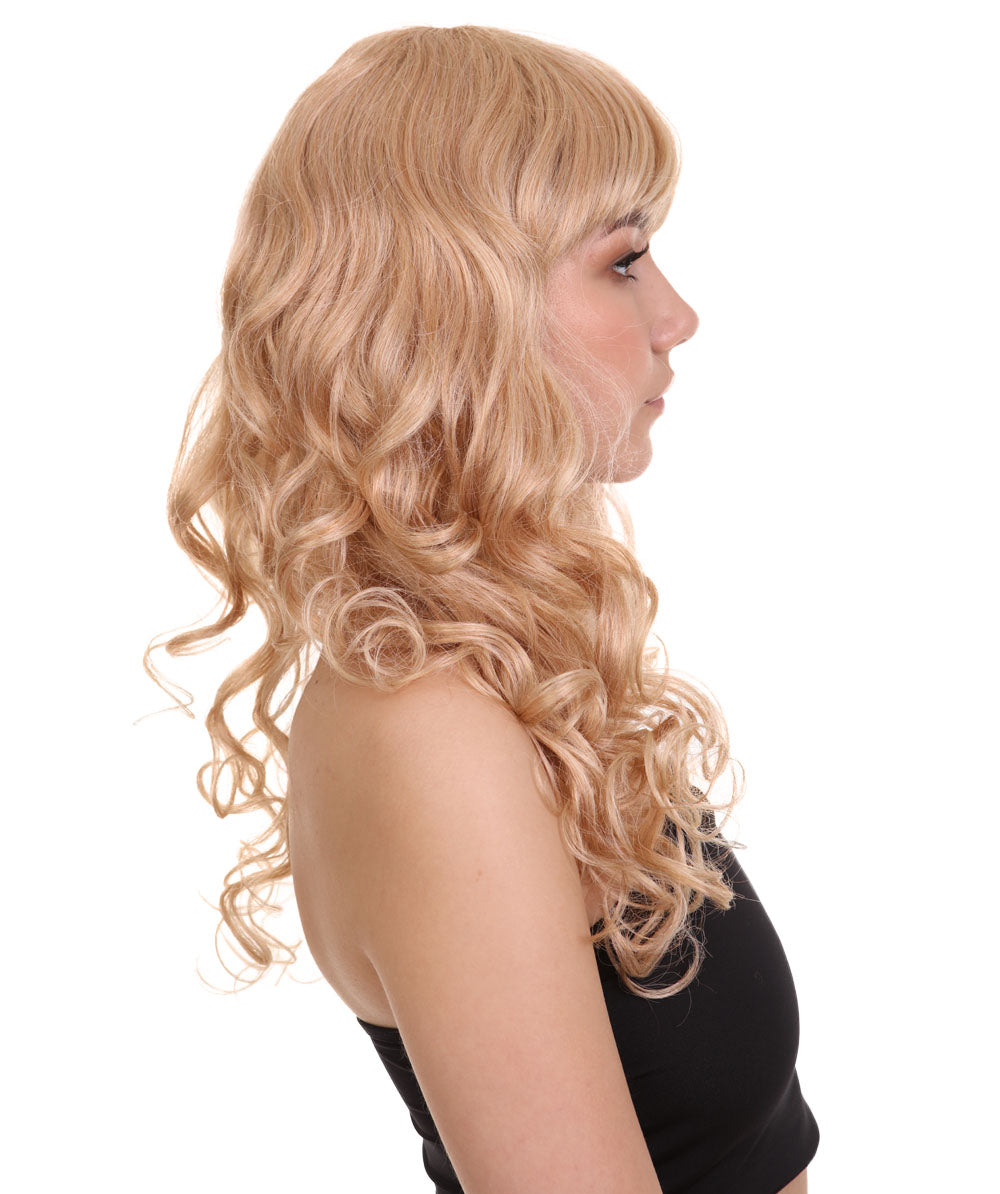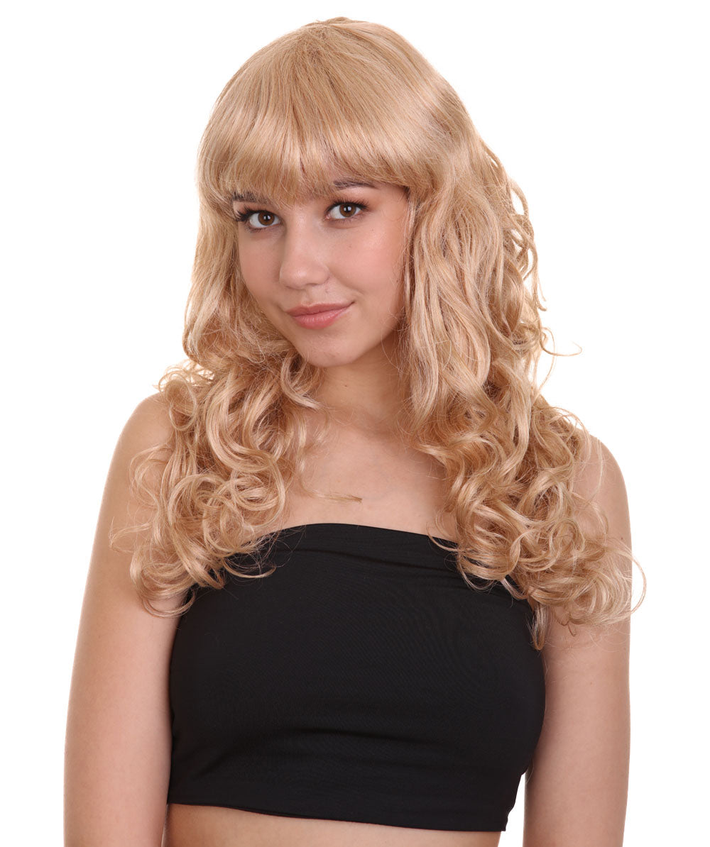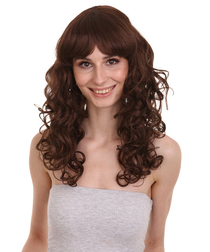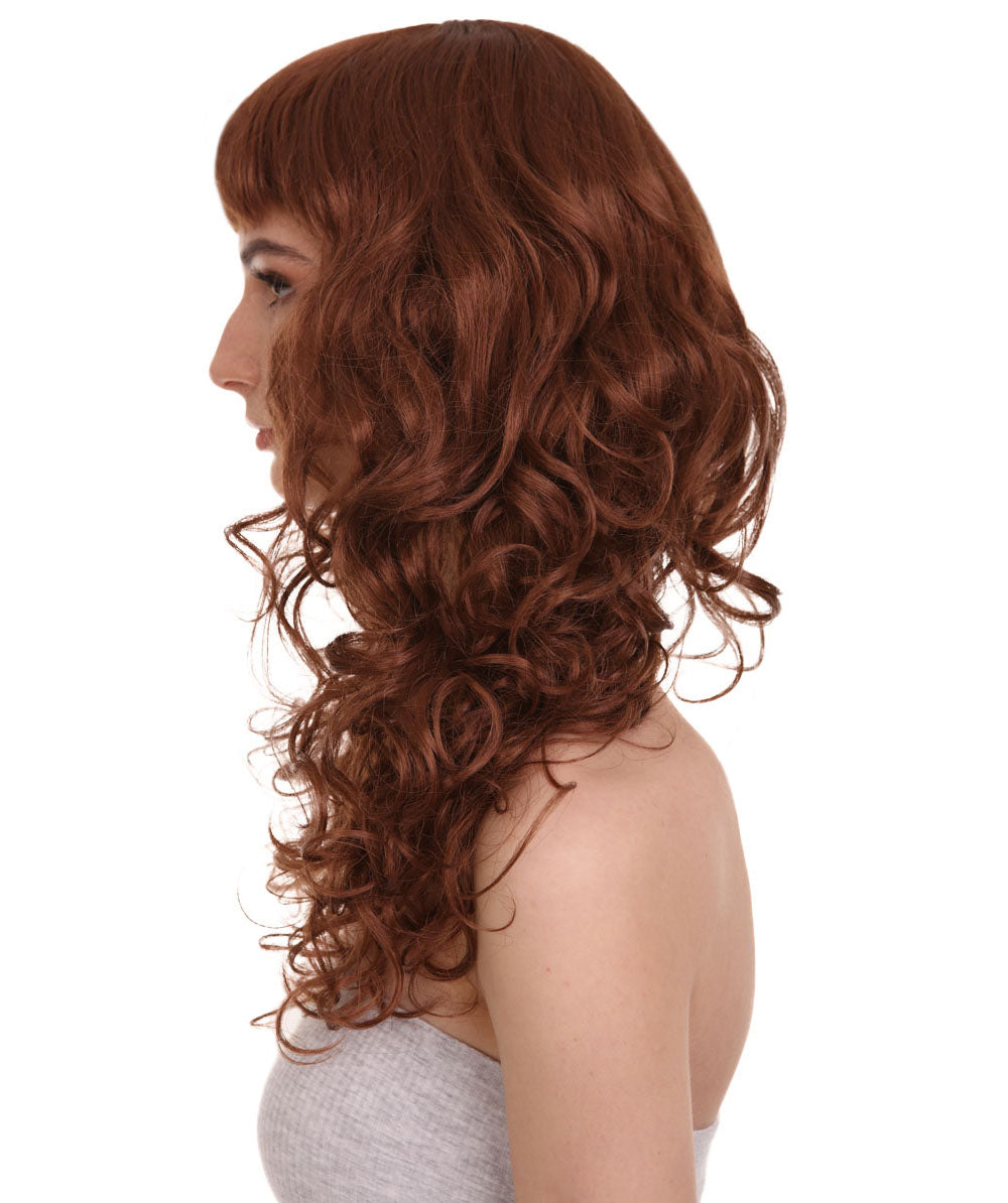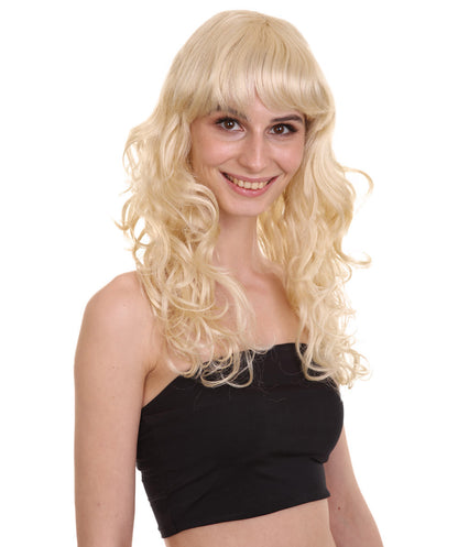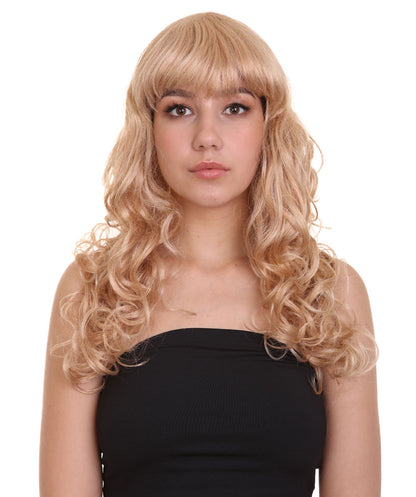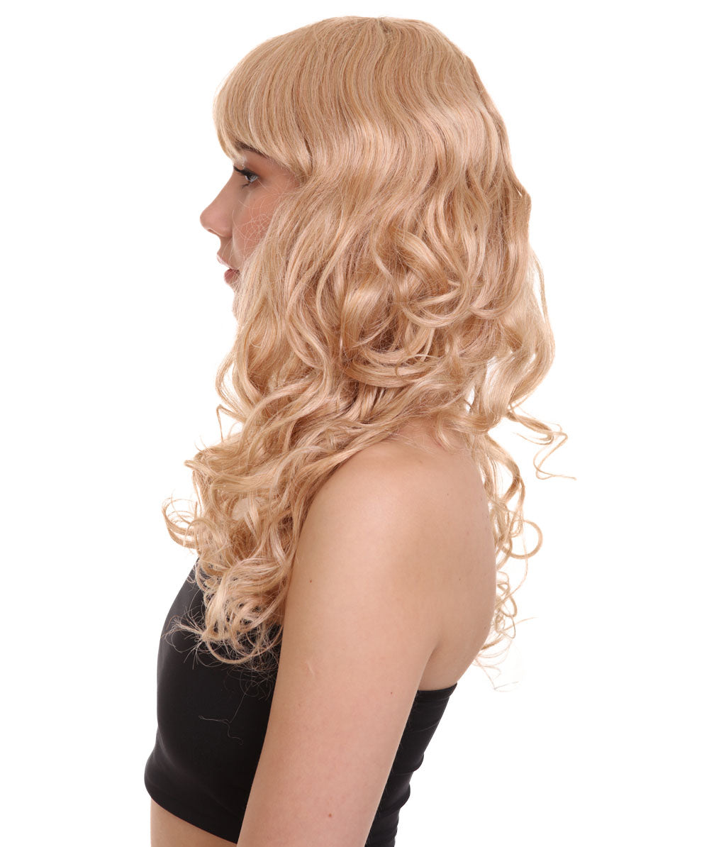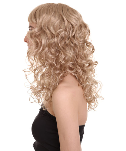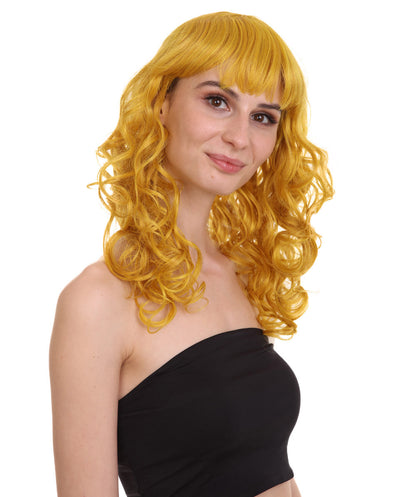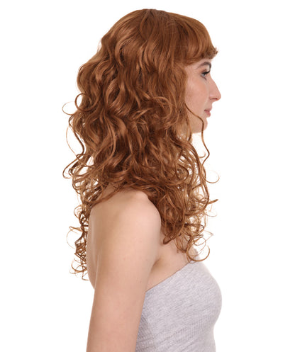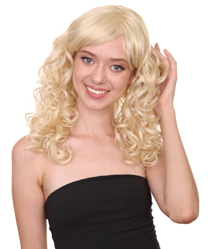 HPO Women's Bella Wig Collections | Long Curly Glamour Party Event Halloween Wig | Premium Breathable Capless Cap