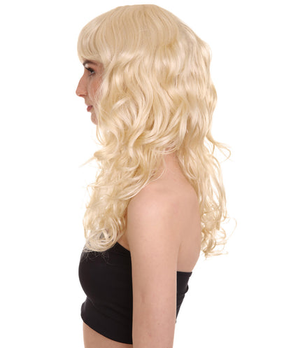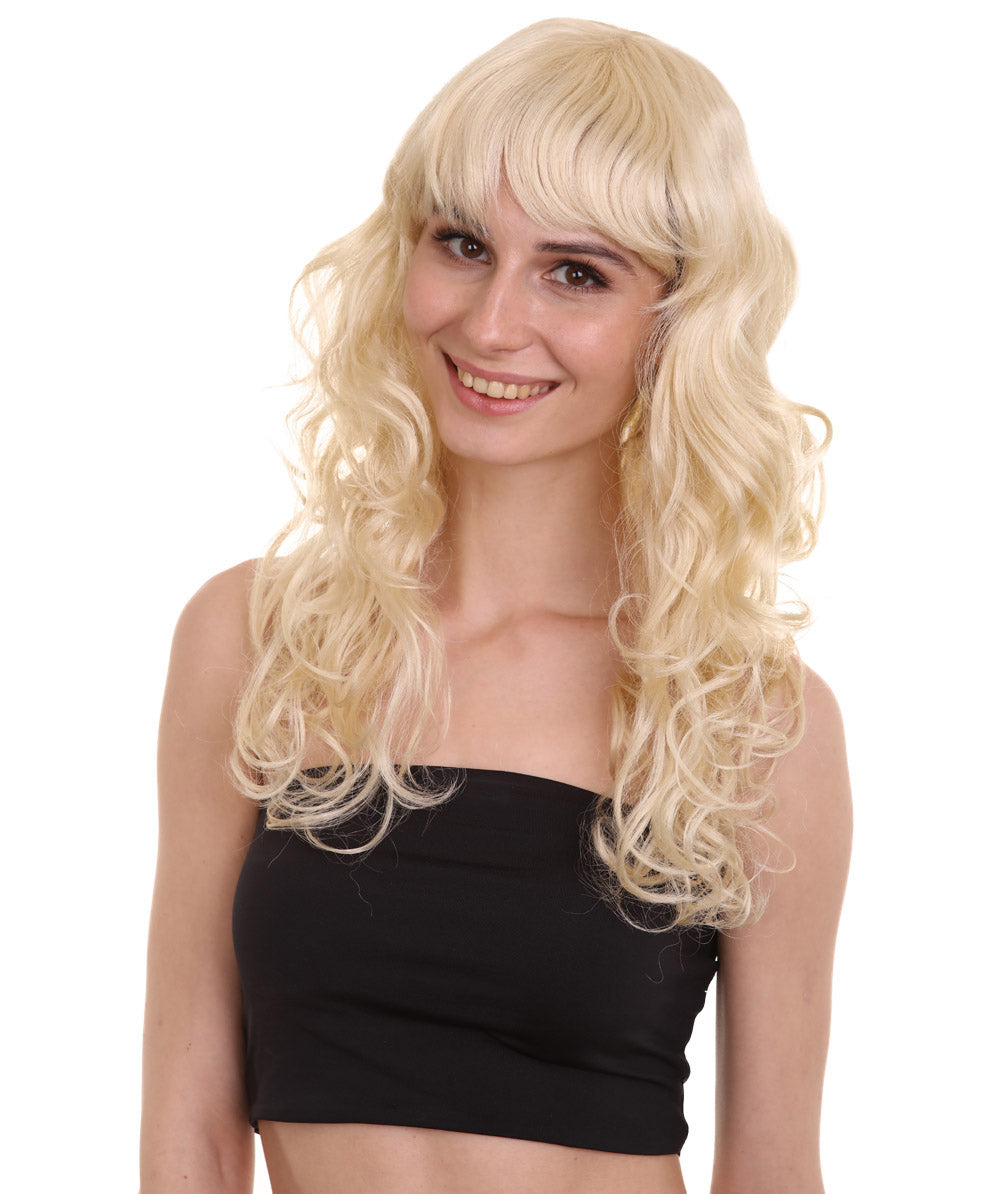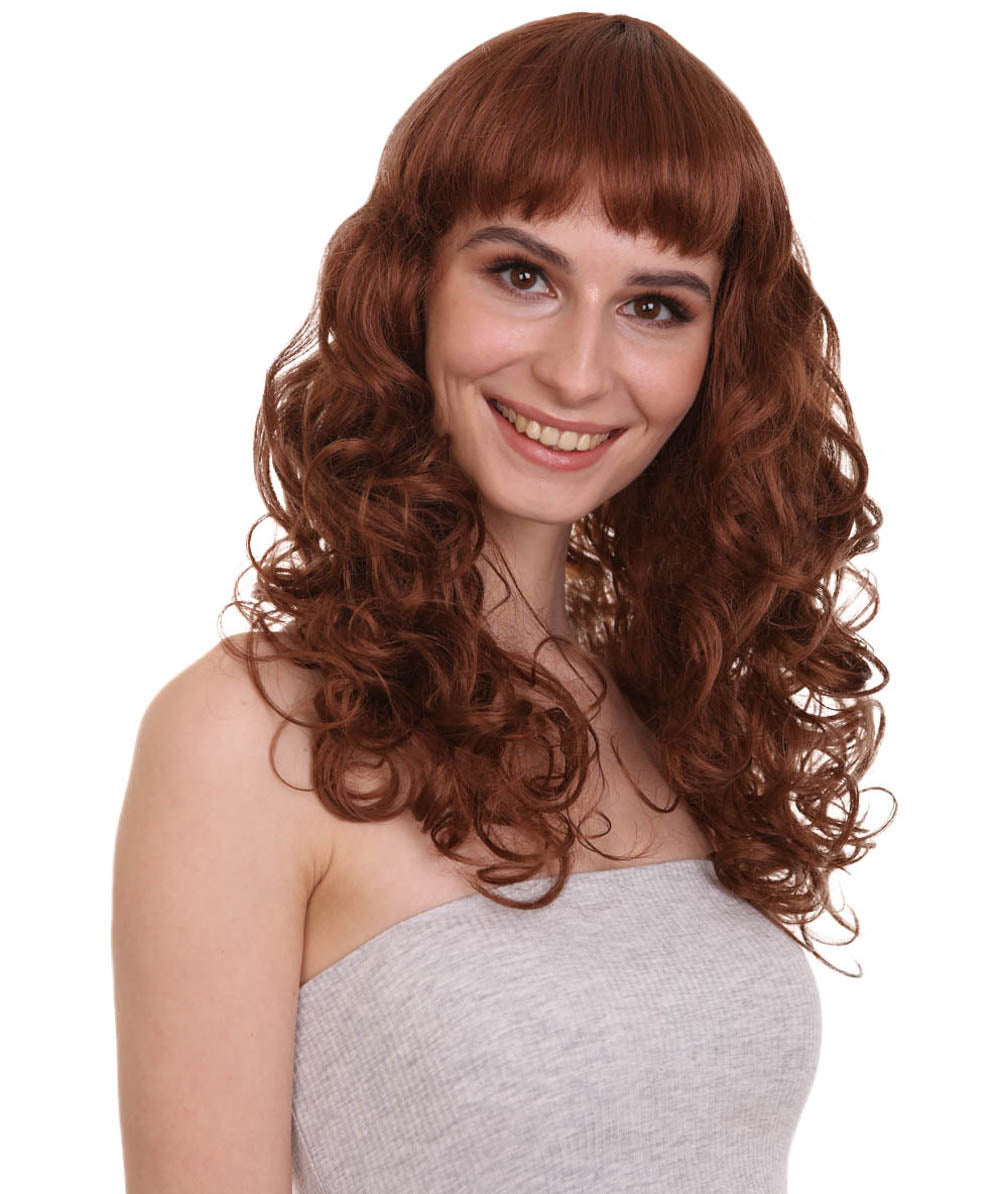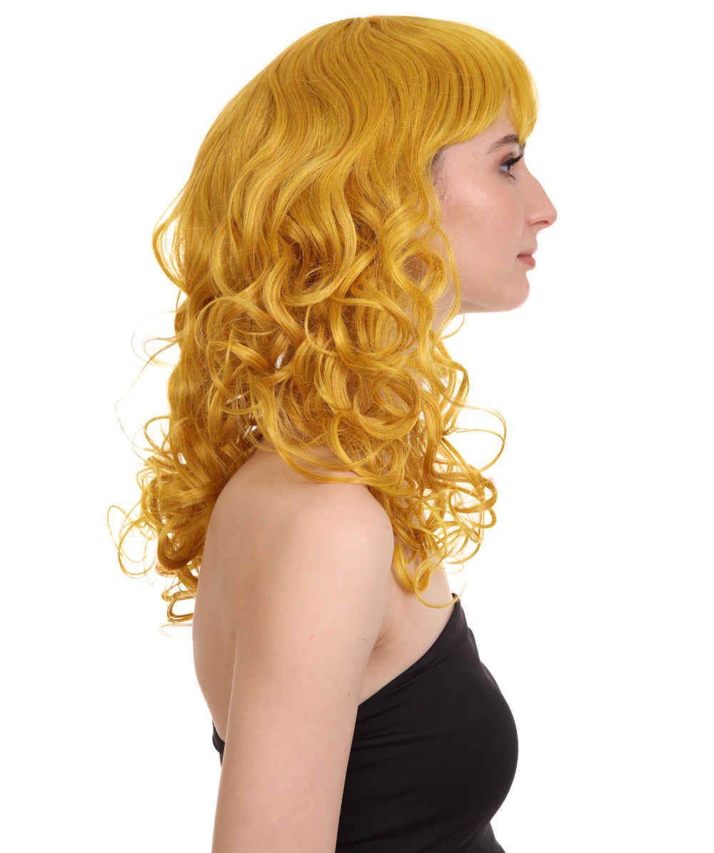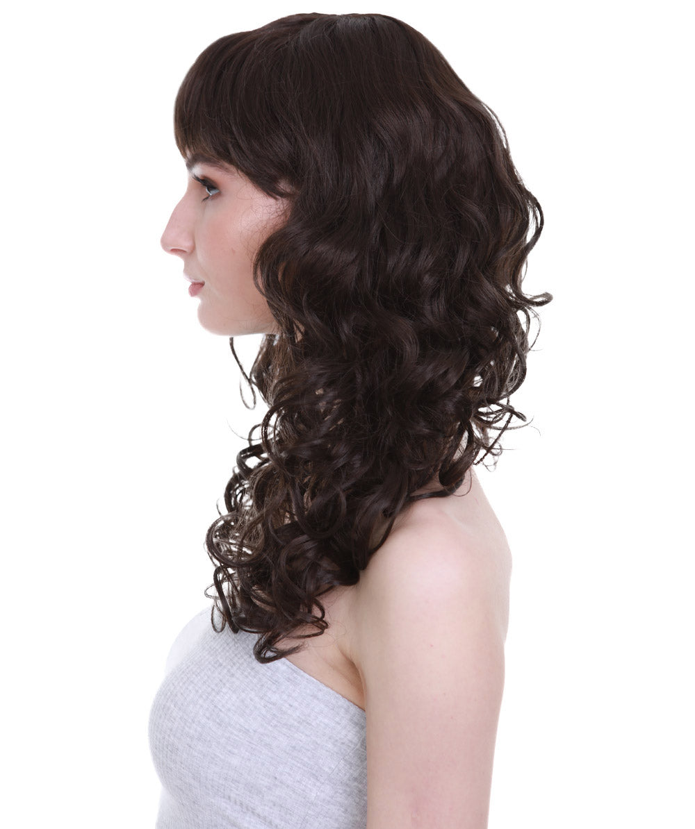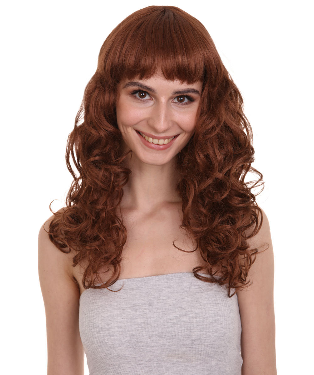 HPO Women's Bella Wig Collections | Long Curly Glamour Party Event Halloween Wig | Premium Breathable Capless Cap