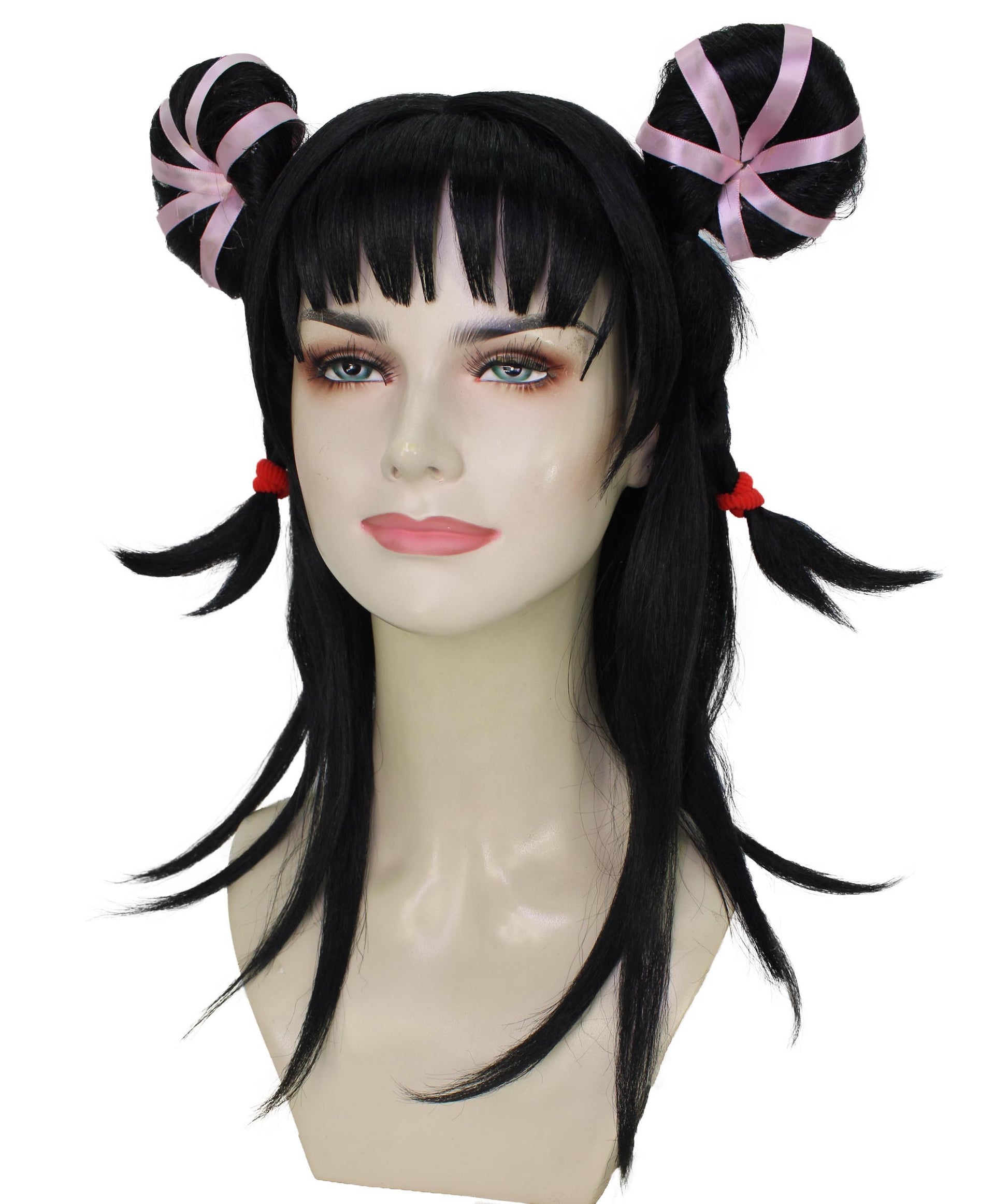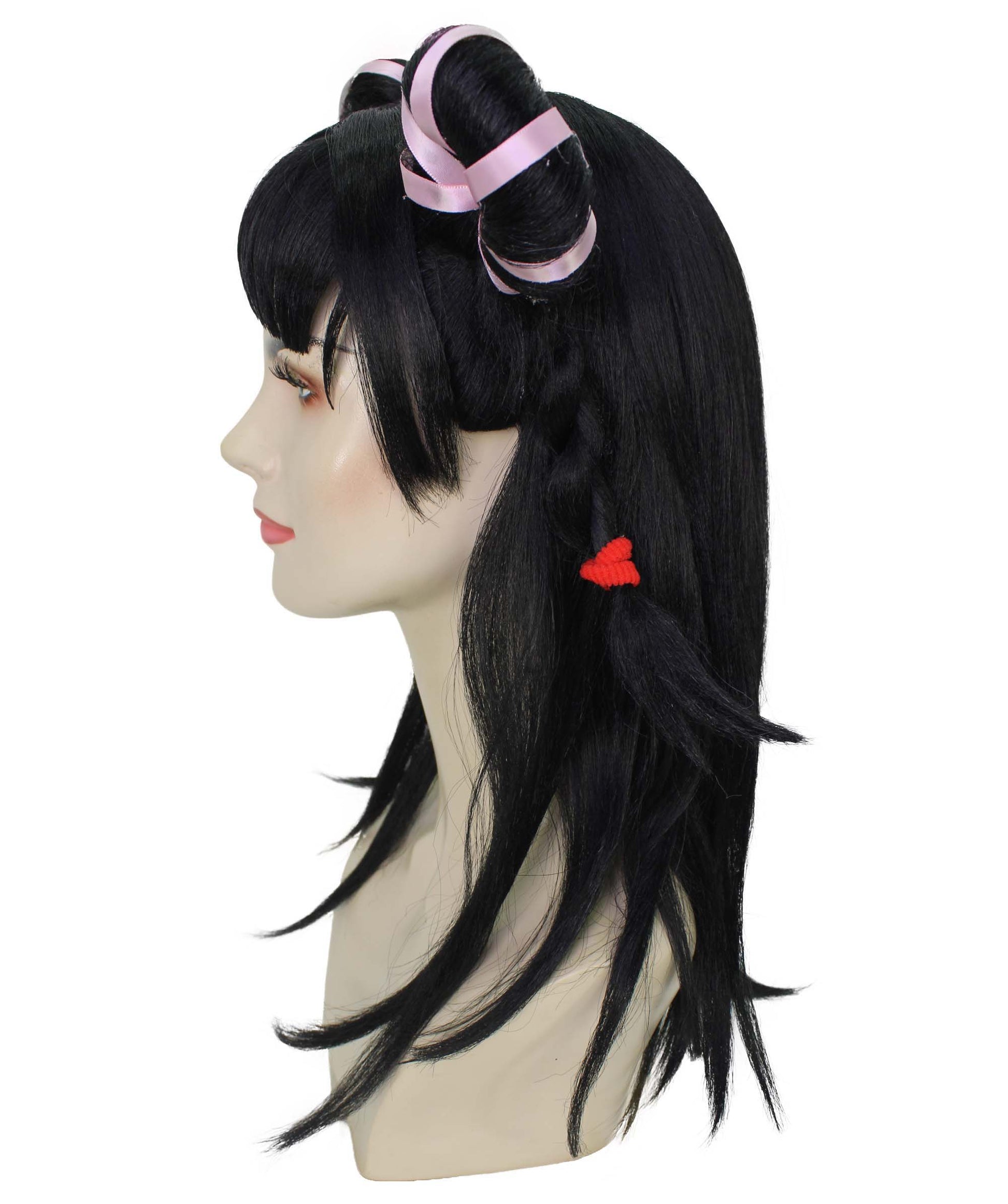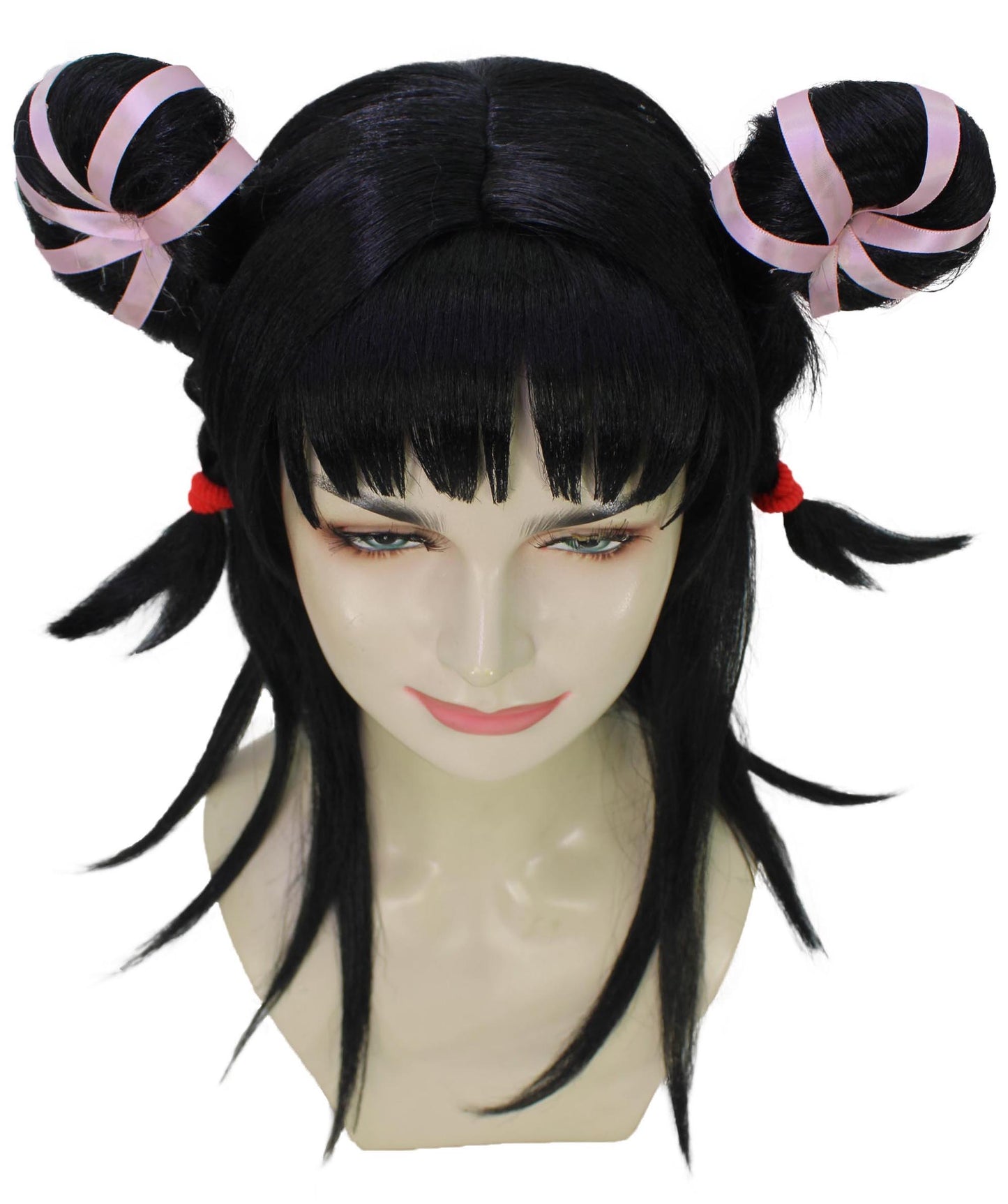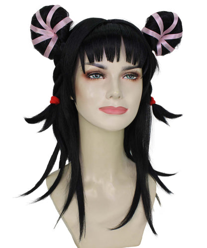 Presenting the Black Long Straight Double Bun Wig with Accessories, a remarkable piece of gear sure to make your cosplay and Halloween experiences even more amazing