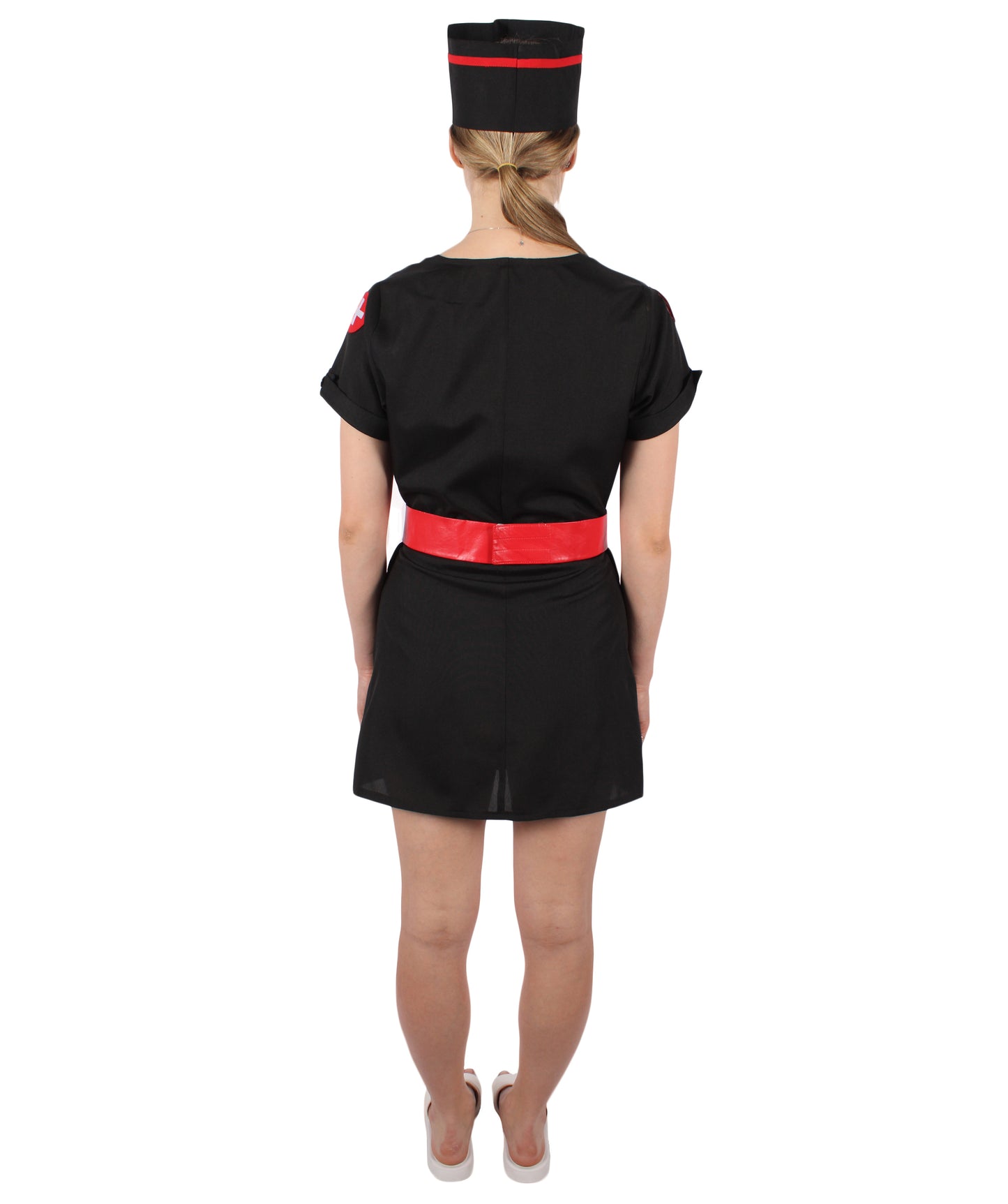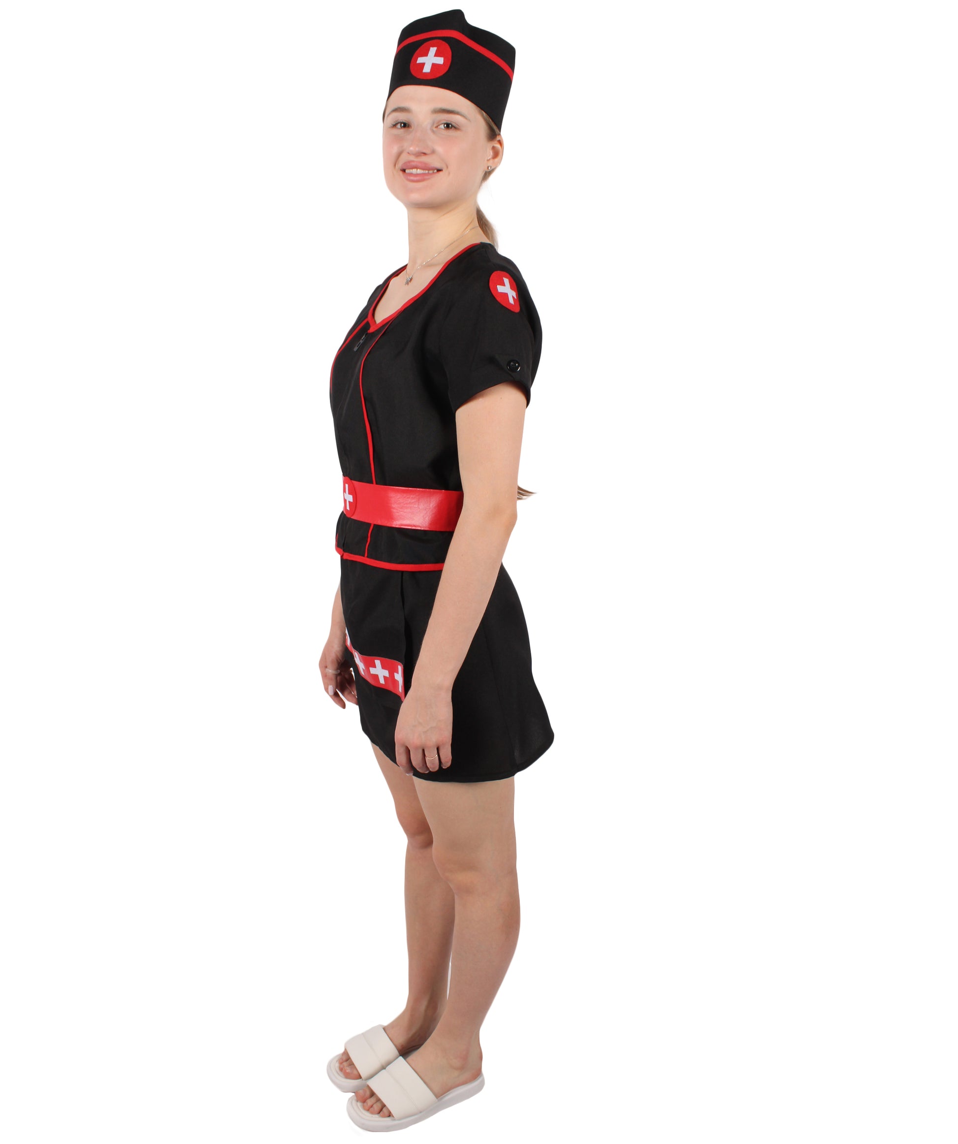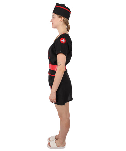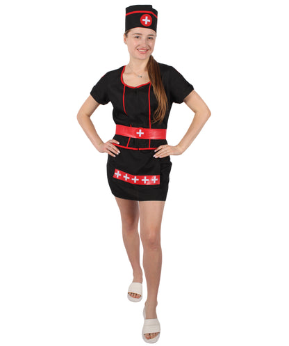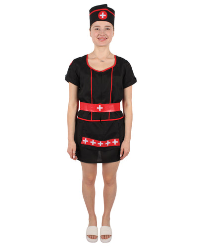 HPO Women's Black Mini Dress Nurse Costume Set | Suitable for Halloween | Flame-retardant Synthetic Fabric