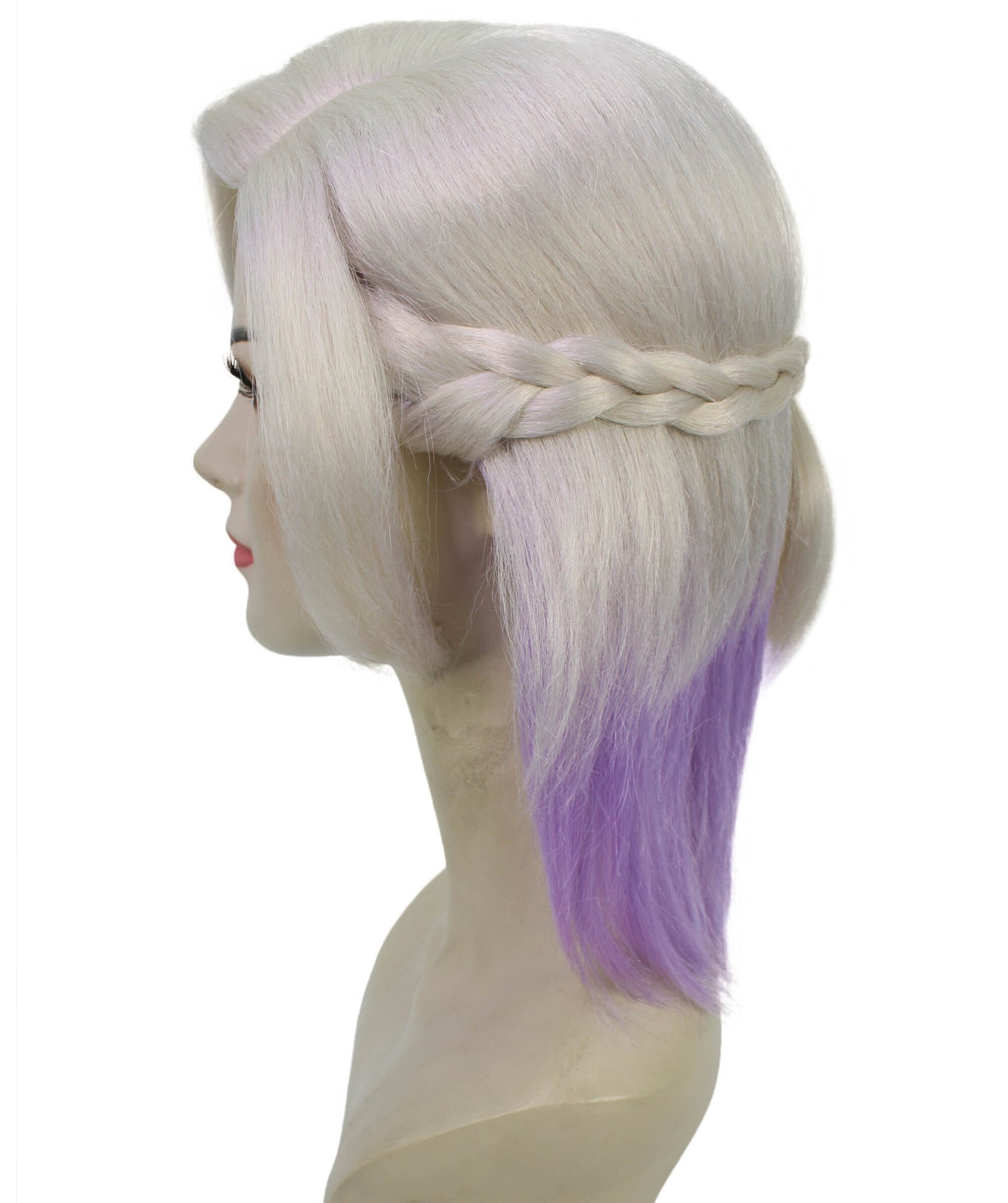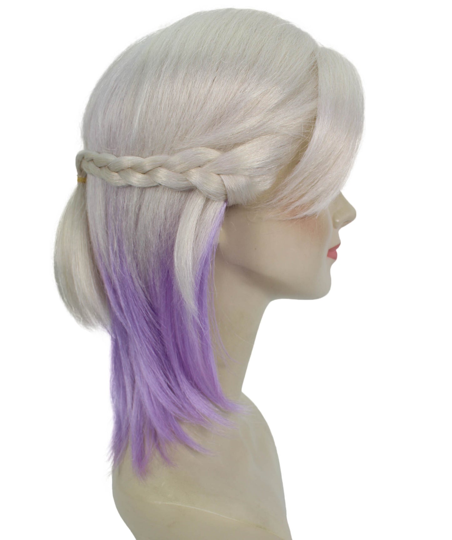 The HPO Women’s Blonde Purple Anime Wig is ideal for Halloween costumes. We craft this wig with flame-retardant synthetic fibers, and it ensures safety while adding a vibrant touch to your outfit.<br>This HPO Adult Women’s Blonde Purple Anime Wig for your next party!<br>With its blonde and purple hues, the wig embodies the essence of characters like Xiong Xiongle Vil Schoenheit from anime series, providing an opportunity to replicate their distinctive appearance.<br>This wig’s design hints at such characters’ unique style and personality, allowing wearers to embody their spirit effortlessly. The combination of blonde and purple shades offers a striking contrast that catches the eye and adds flair to any costume.<br>Its flame-retardant synthetic fibers prioritize safety, making it suitable for wear during Halloween events and other festivities.<br>The wig’s simplicity in design and ease of wear make it an accessible choice for individuals aiming to transform themselves into anime characters or simply stand out at Halloween gatherings.<br>Overall, the HPO Adult Women’s Blonde Purple Anime Wig is a versatile accessory that complements Halloween costumes and pays homage to iconic anime characters, enabling wearers to channel their persona with confidence and style.<br>Notable Features of the Wig:<br><br>Made of synthetic fiber <br>Perfect for Cosplay<br>Can Accommodate Teens and Adults<br>Not Suitable for Heat-styling <br>Can Not be Dyed<br>Breathable Capless Cap<br>Cruelty-Free<br>Premium Handcrafted Wig<br>Designed for Comfortable Fit