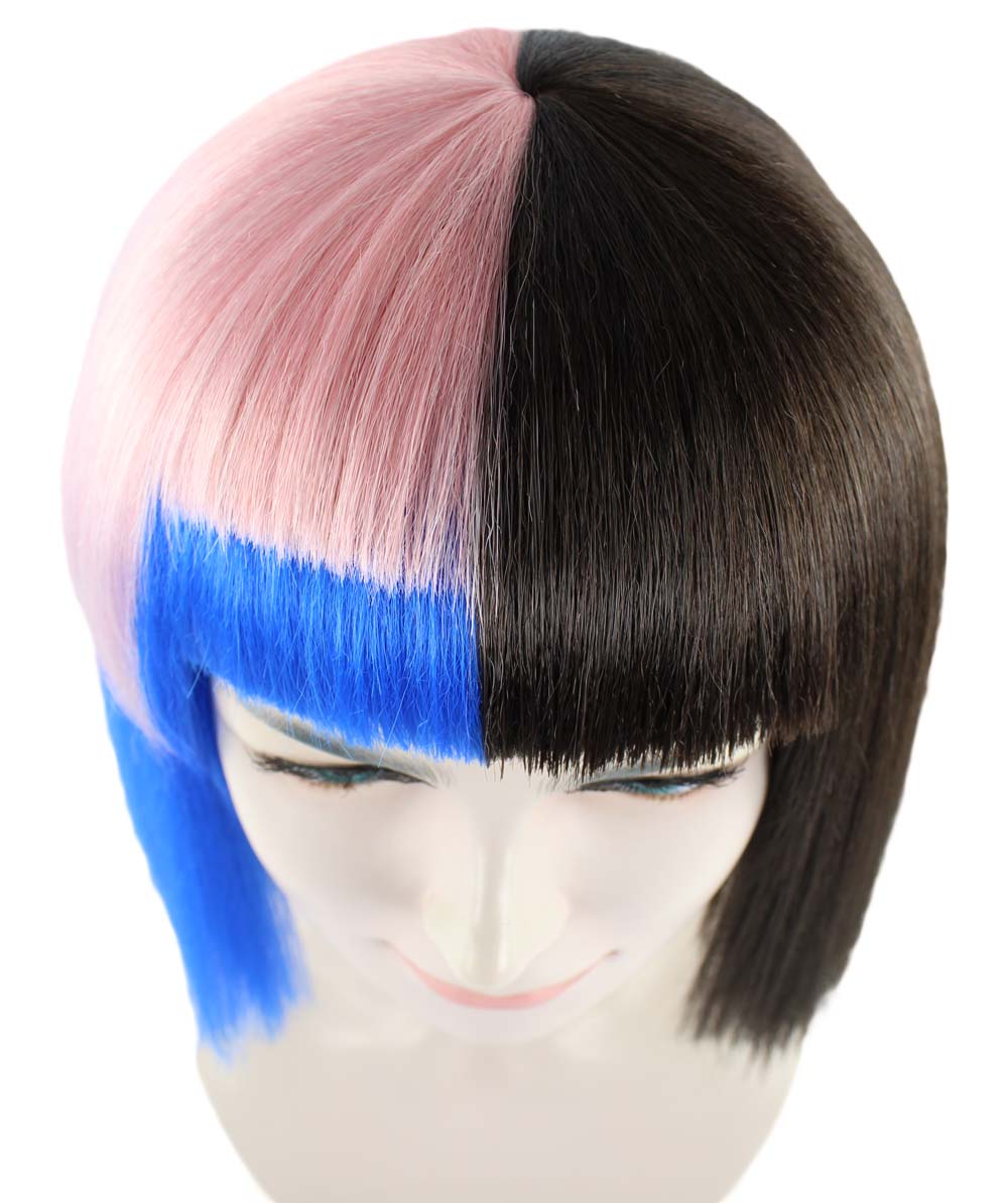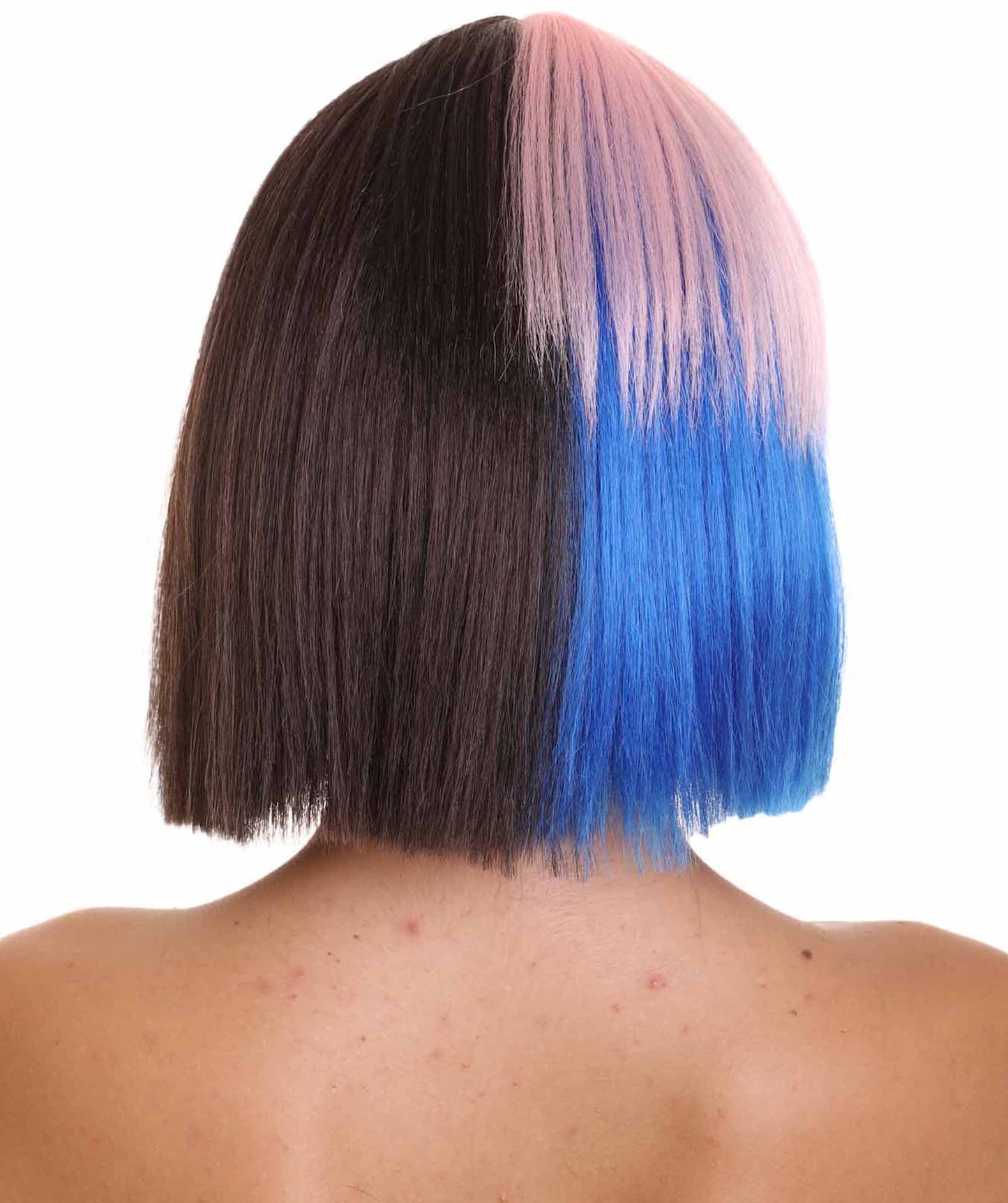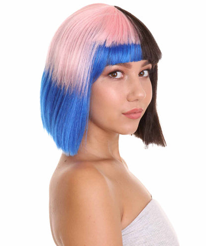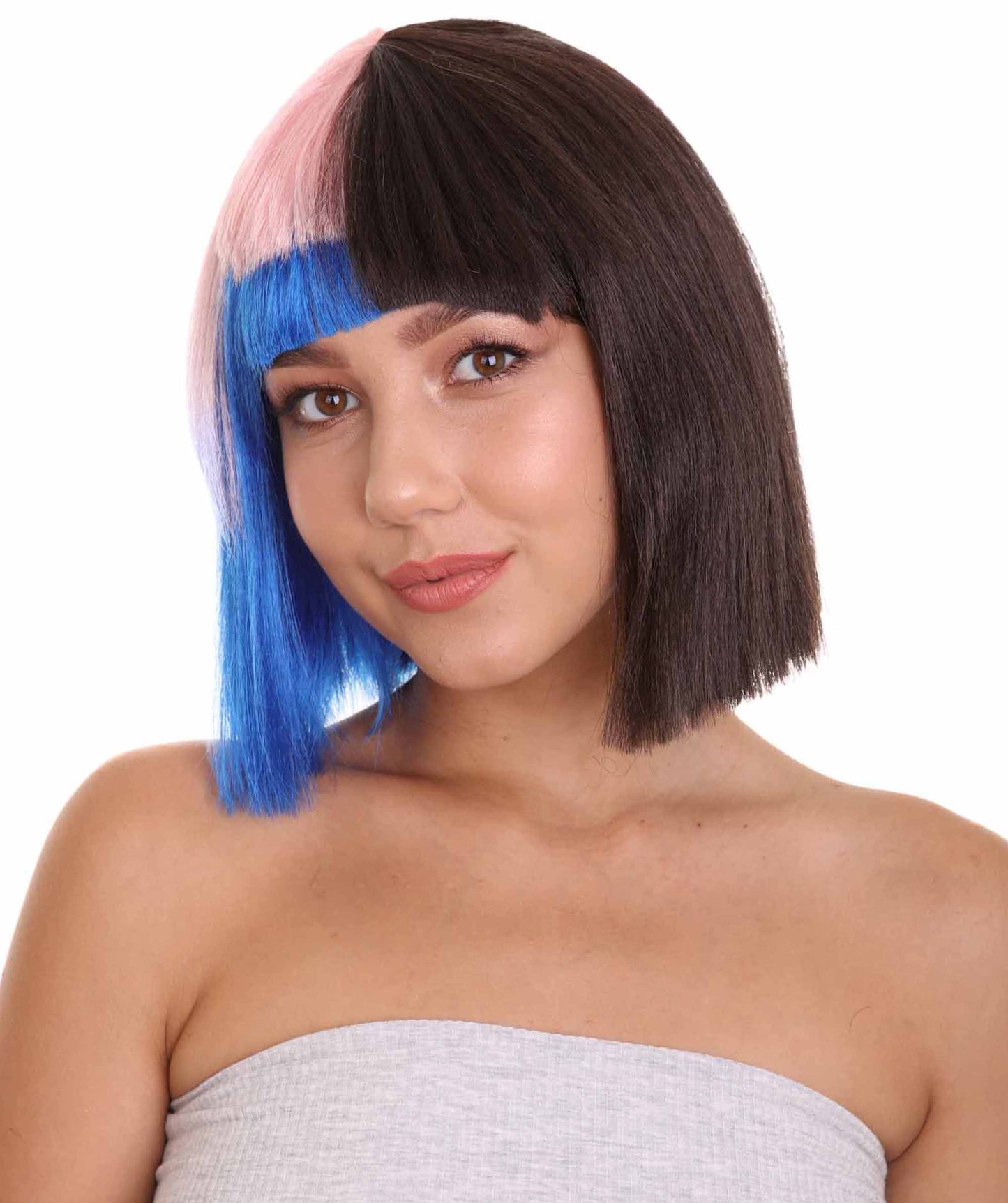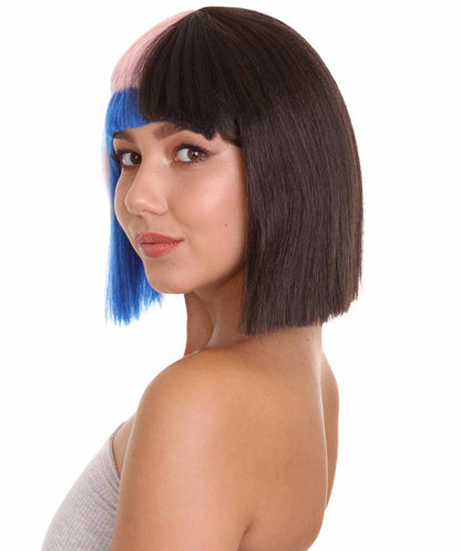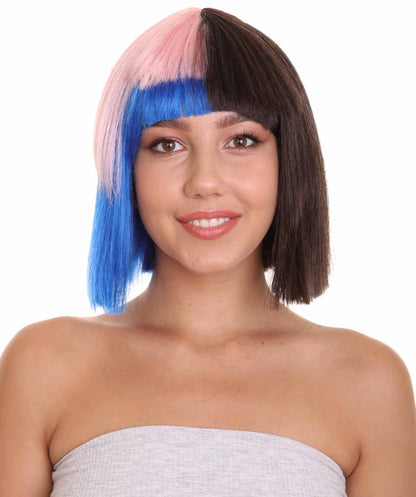 HPO Womens Bob Wig | Black, Pink, & Blue Celebrity Wig | Premium Breathable Capless Cap