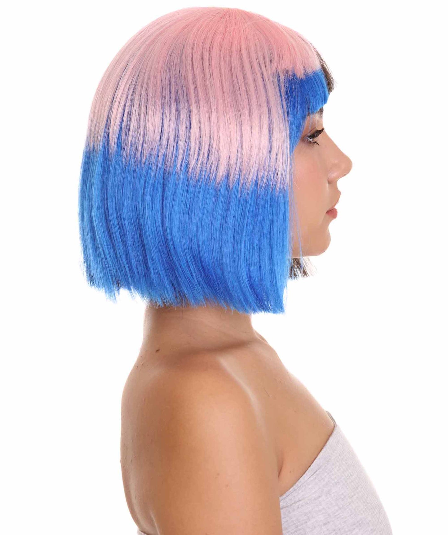 Versatile Bob Wig in black, pink, & blue for your next Halloween or cosplay extravaganza, crafted from flame-retardant synthetic fiber, this chic wig not only ensures safety but also allows you to express your unique style with confidence.