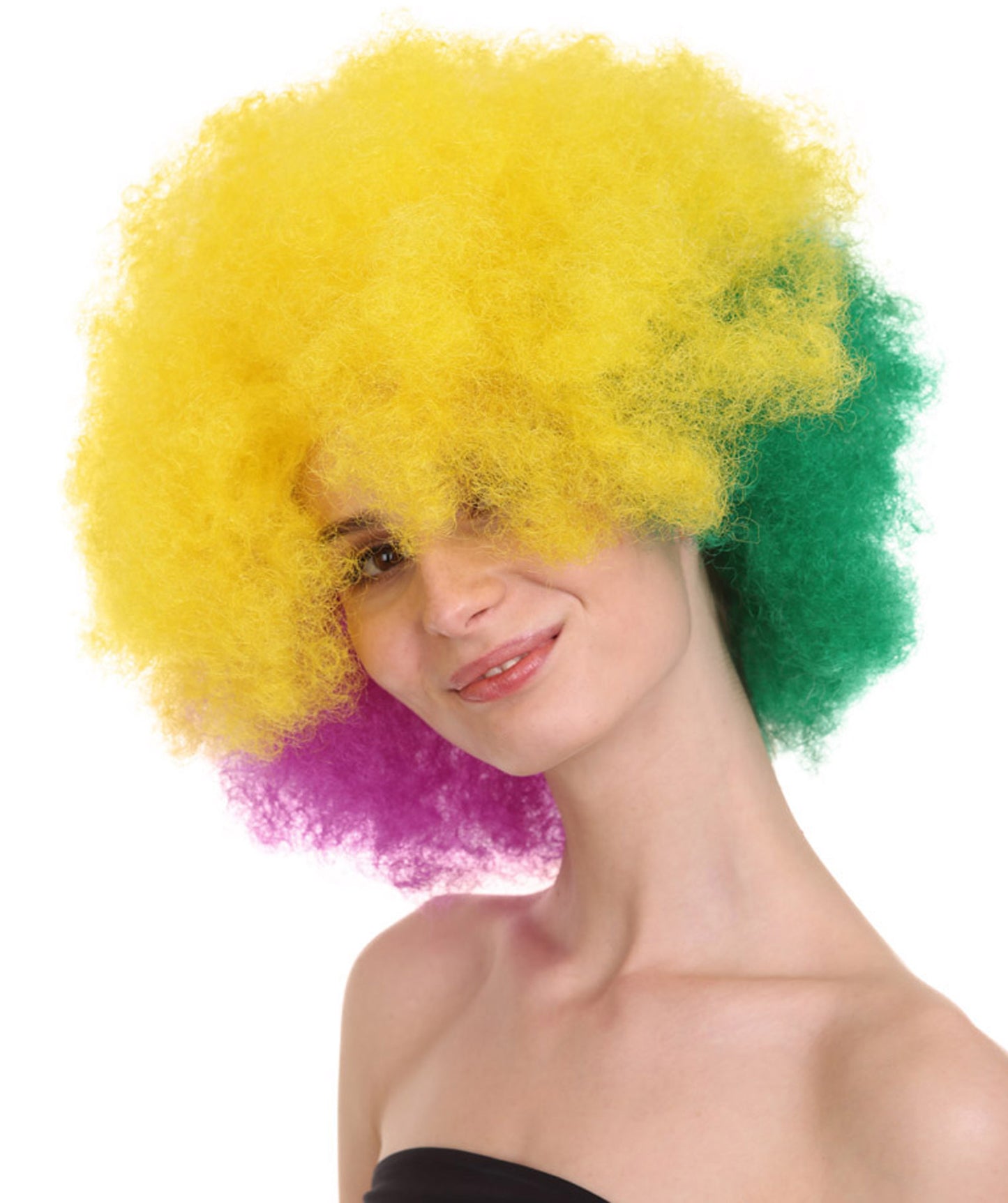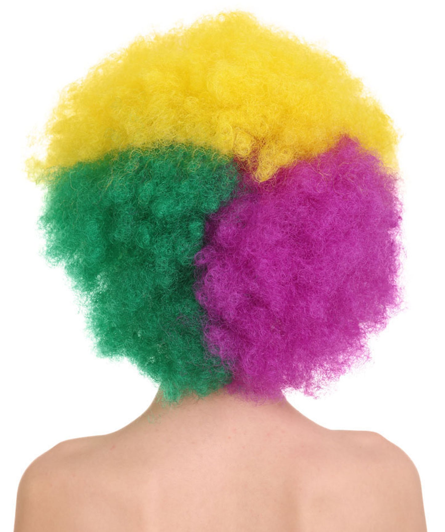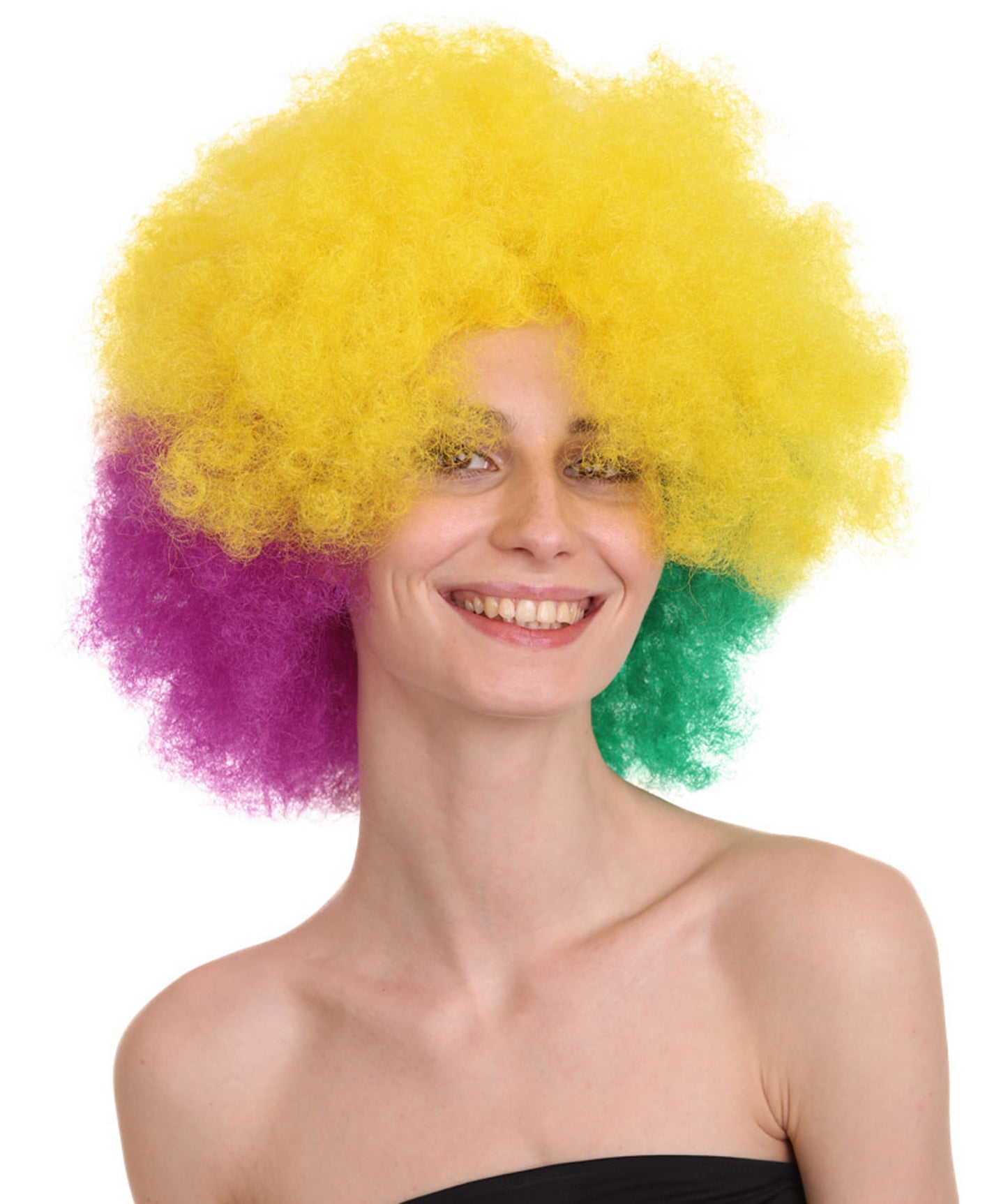 HPO Women's Carnival Mardi Gras Tri-Color Wig | Jumbo Afro Halloween Wig | Premium Breathable Capless Cap