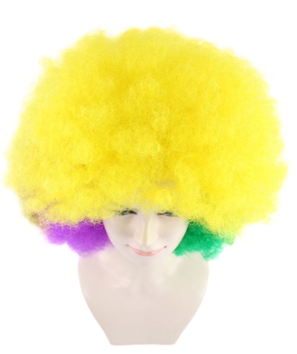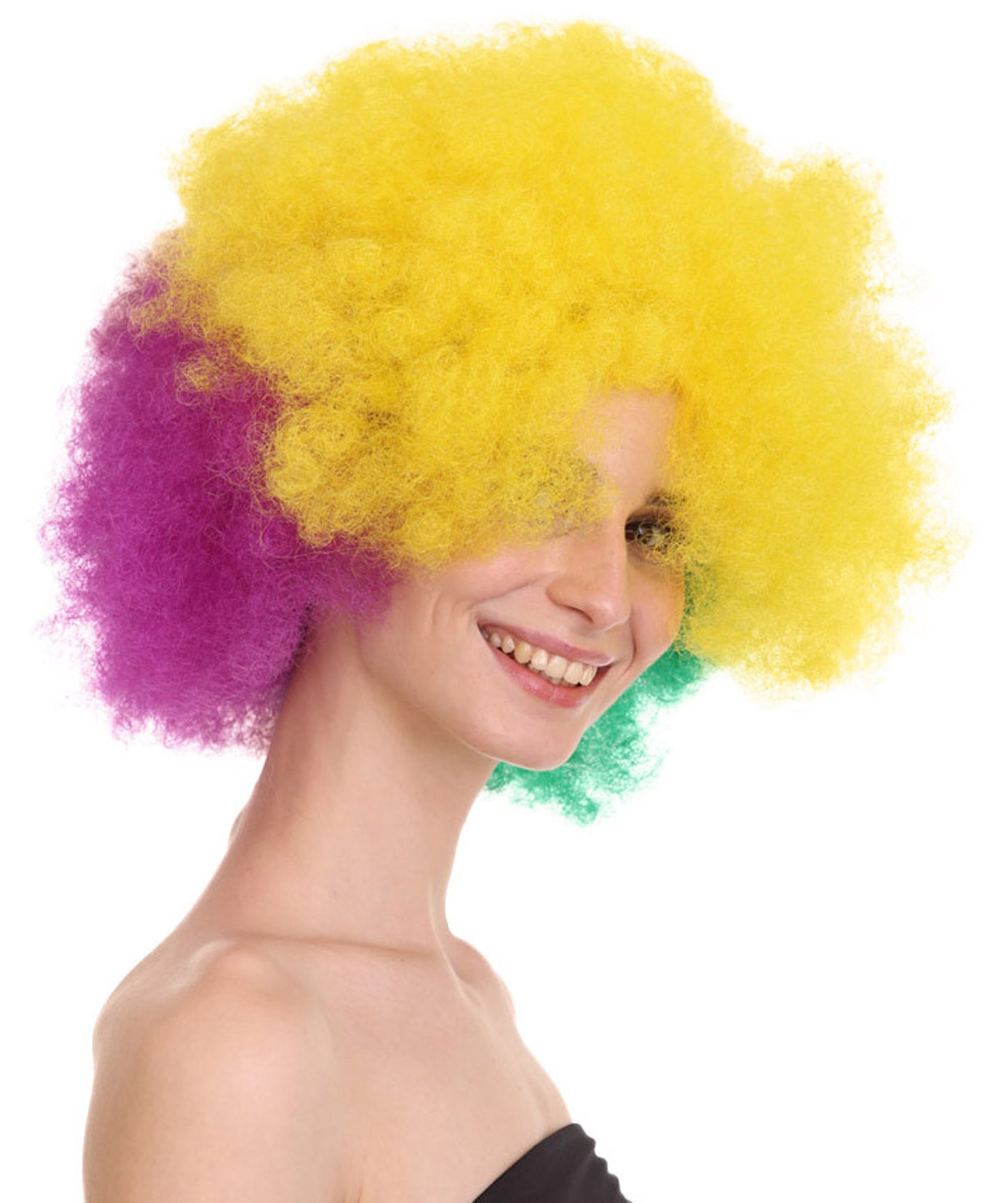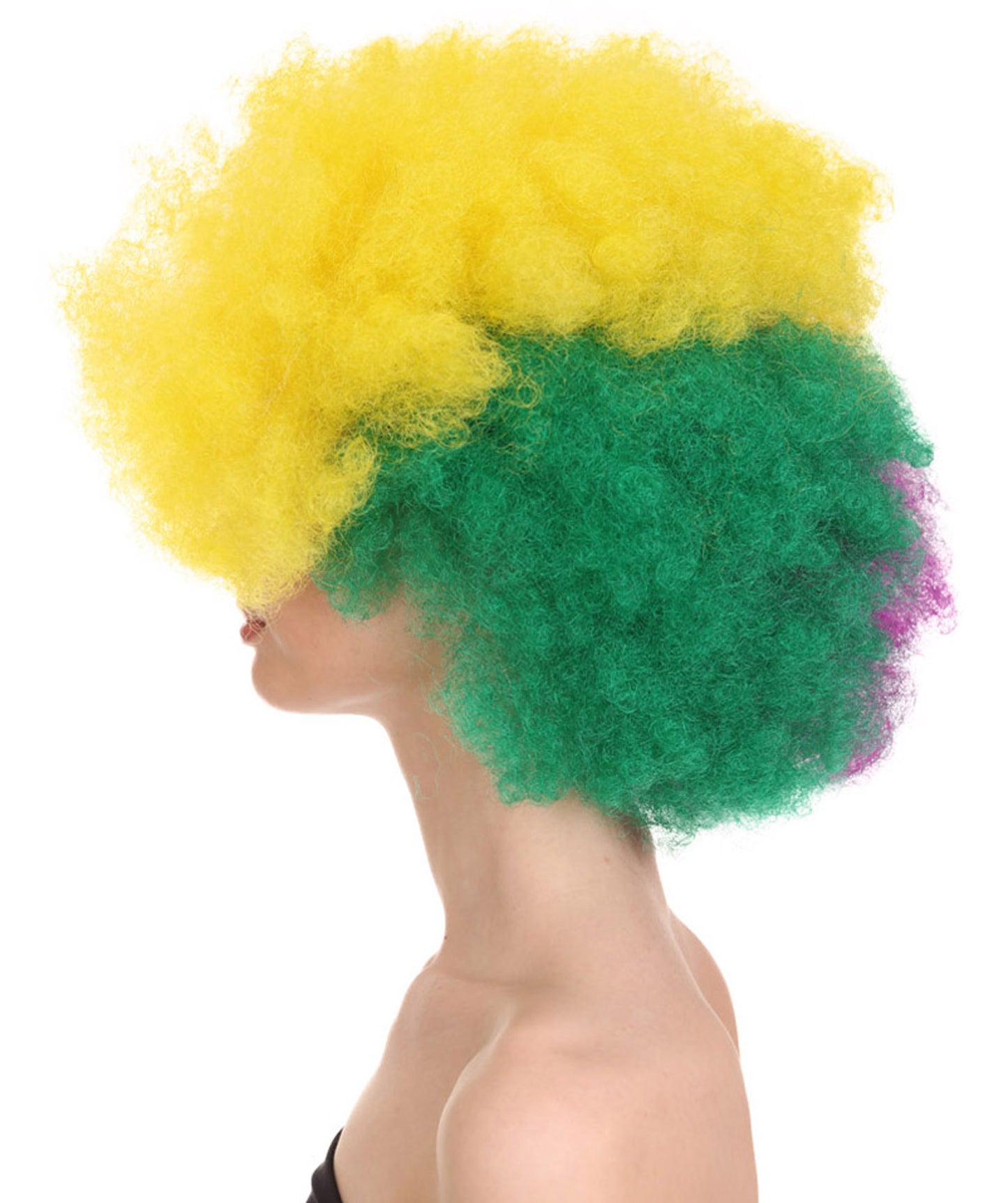 HPO Women's Carnival Mardi Gras Tri-Color Wig | Jumbo Afro Halloween Wig | Premium Breathable Capless Cap
