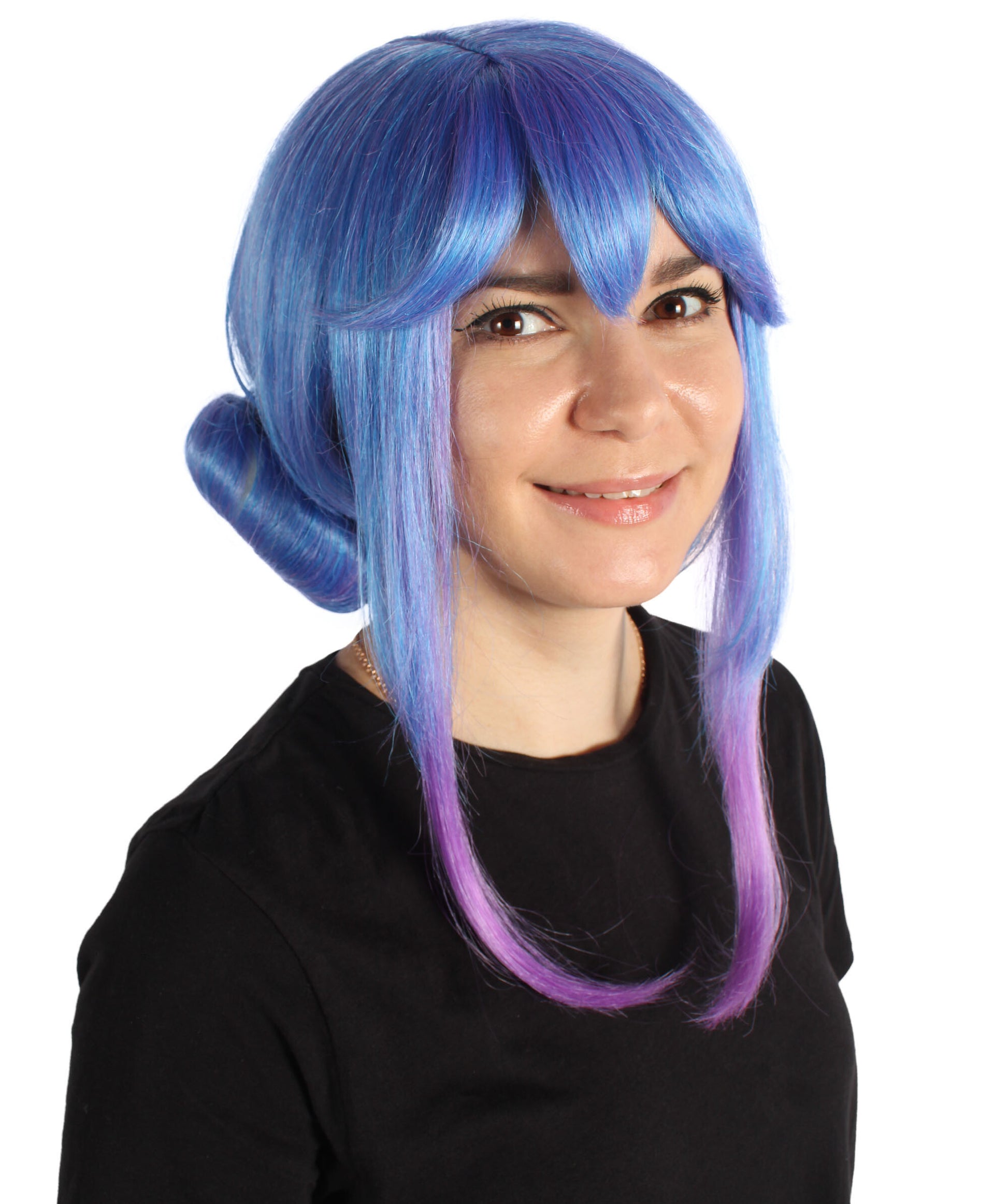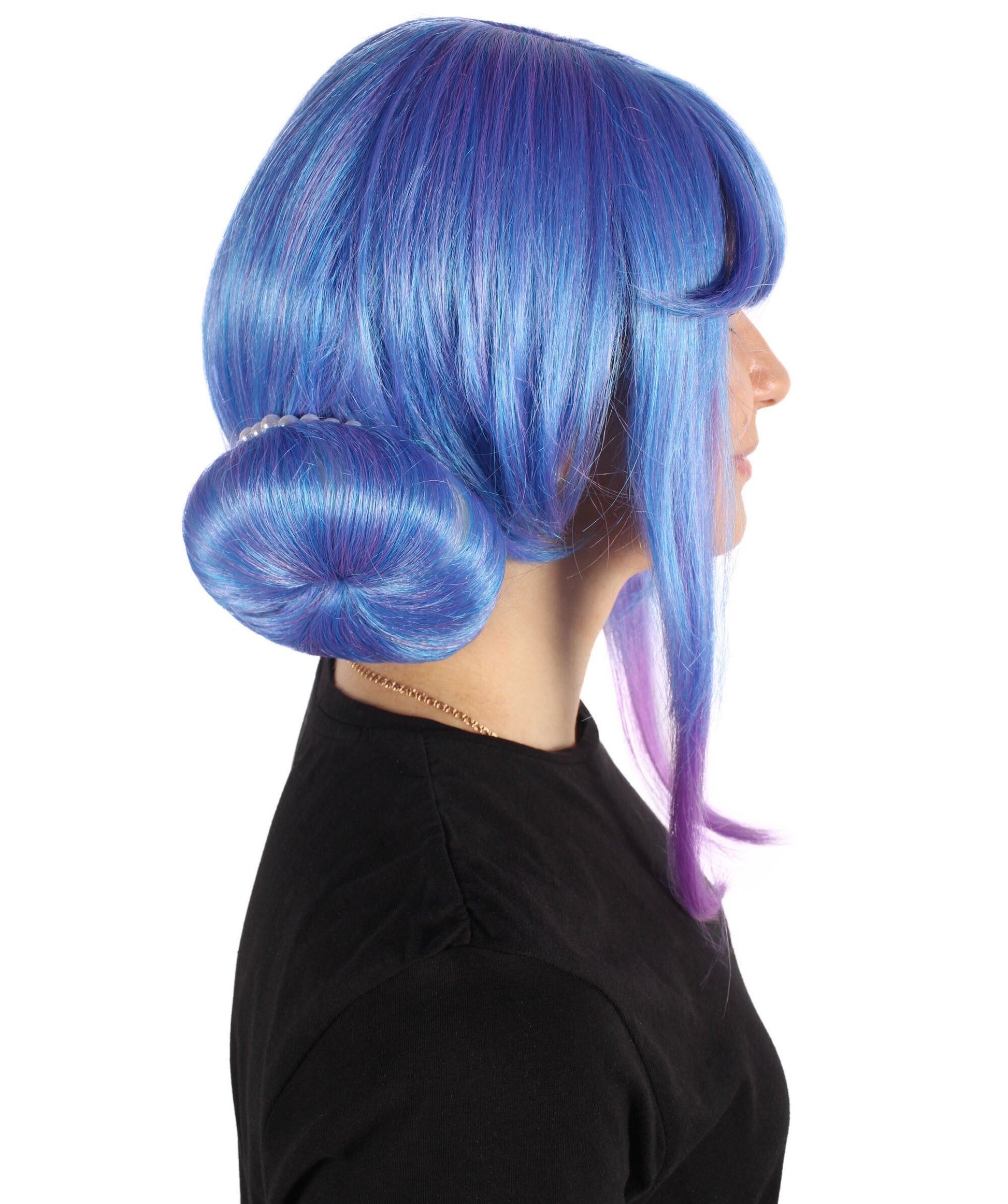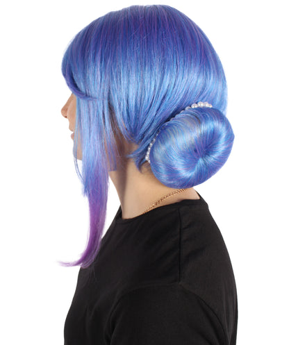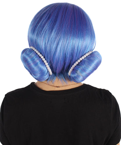 HPO Women's Crystal Rose Double Bun Blue Wig,Perfect for Halloween,Flame-retardant Synthetic Fiber