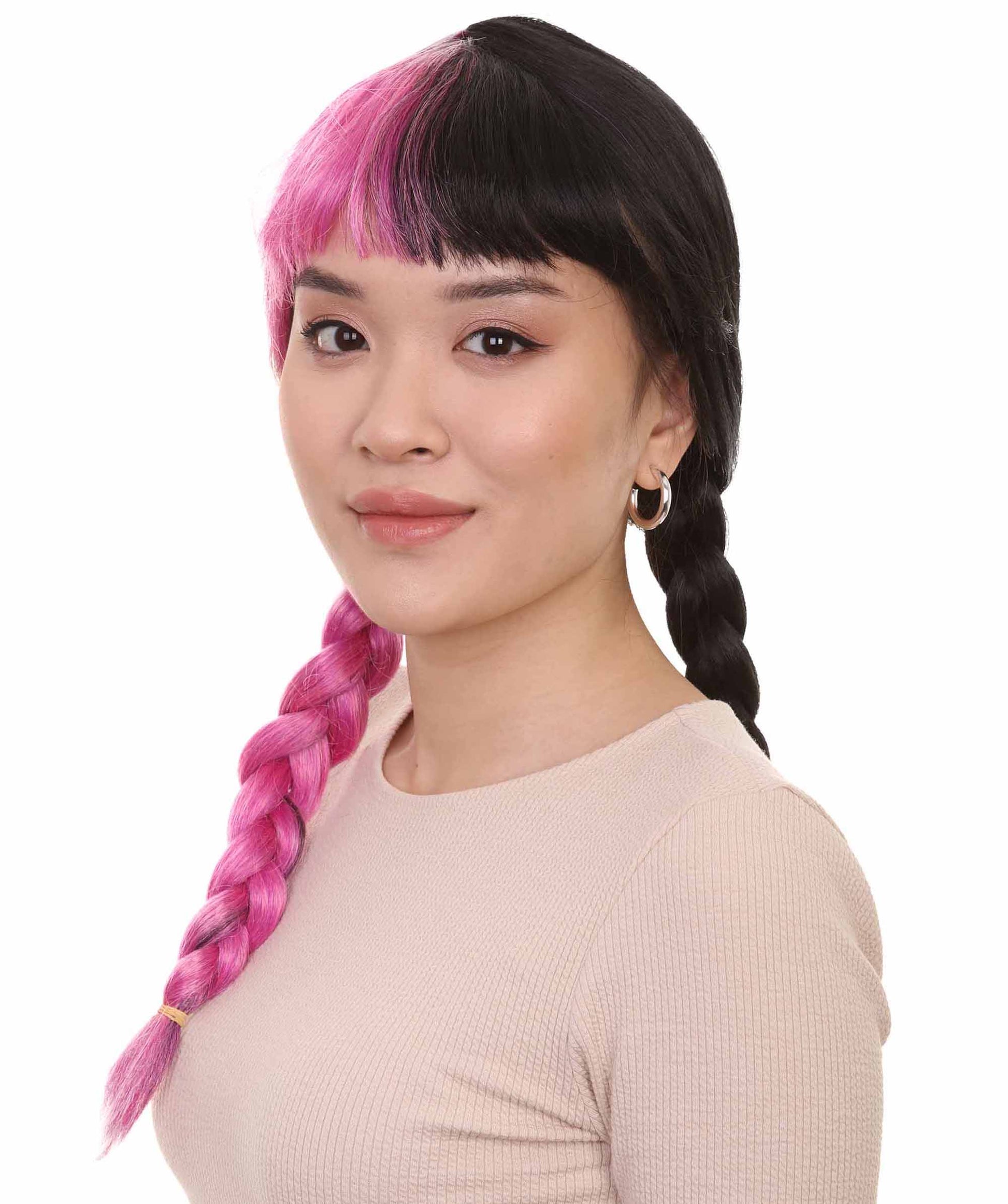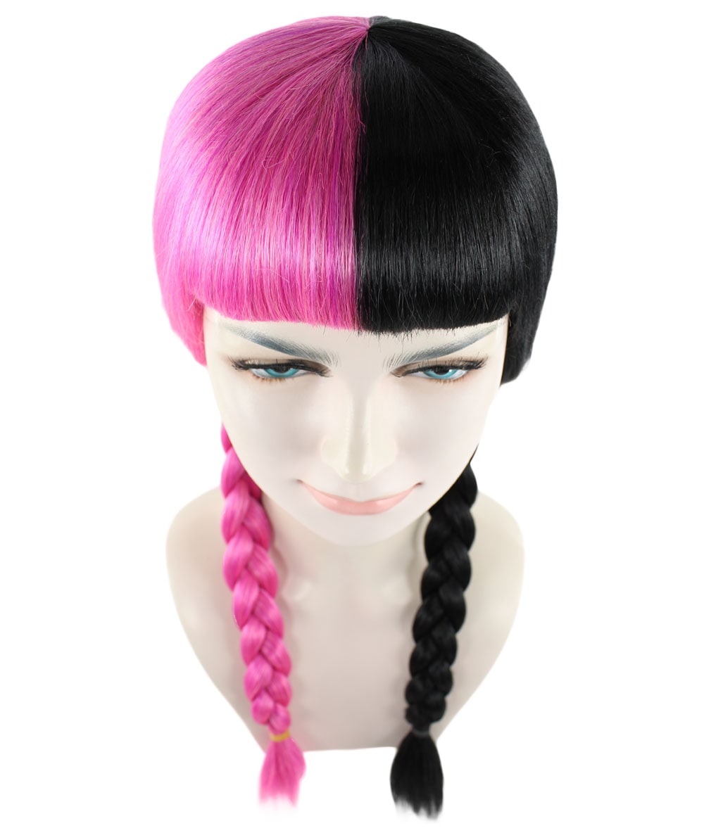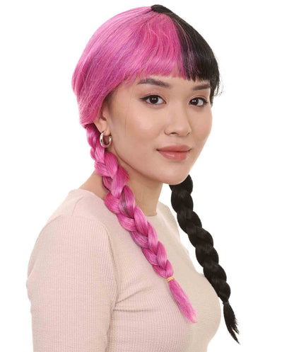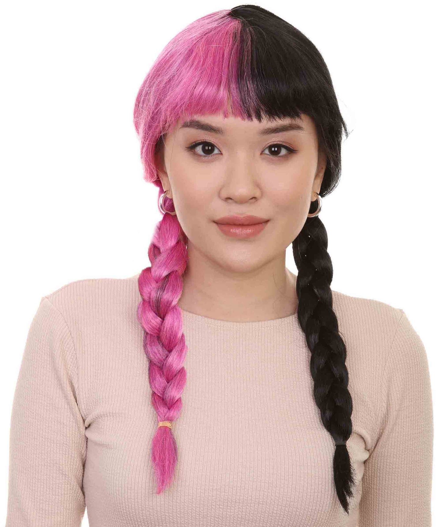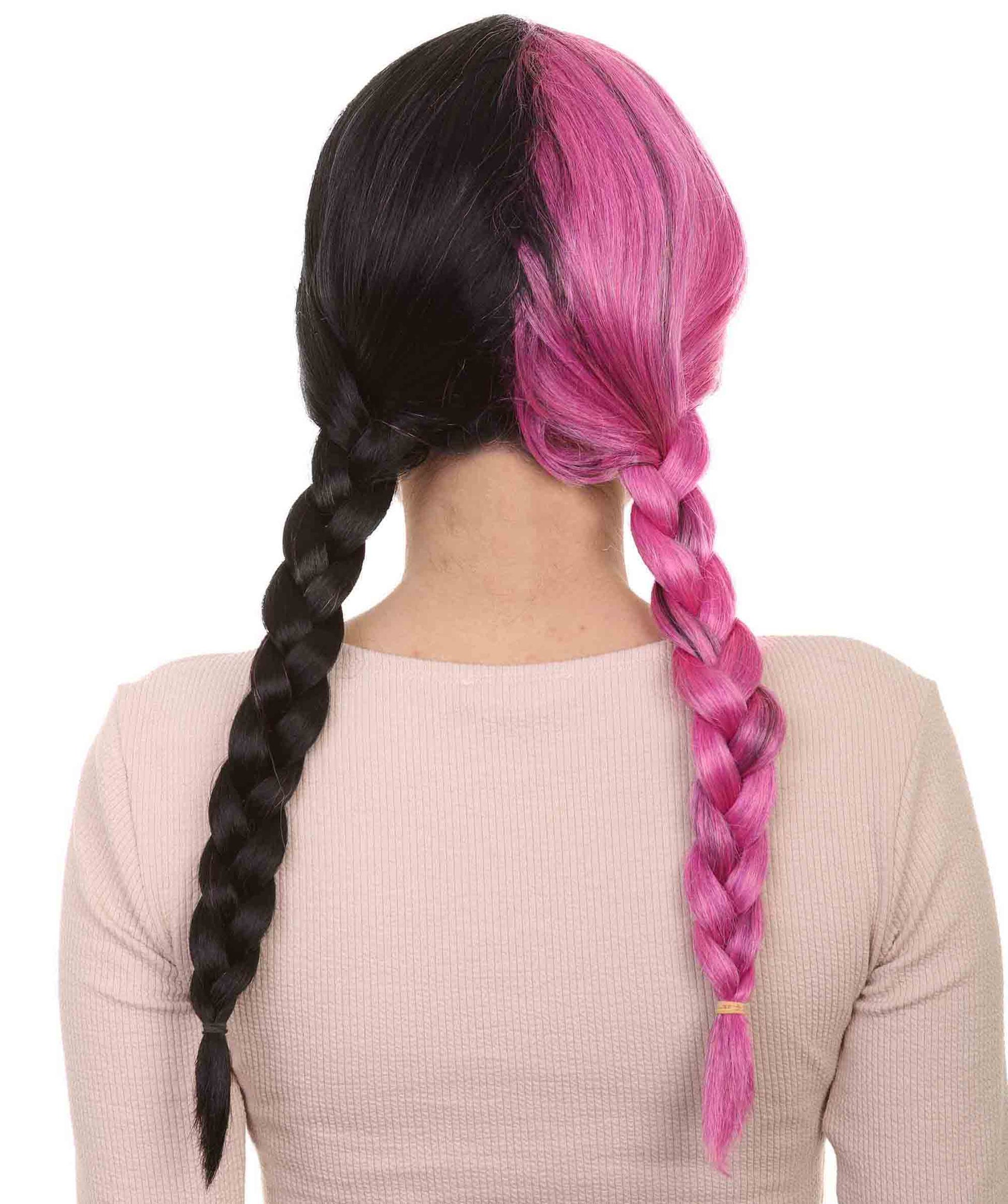 Half Pink Half Black Double Braid Wig for Halloween and Cosplay