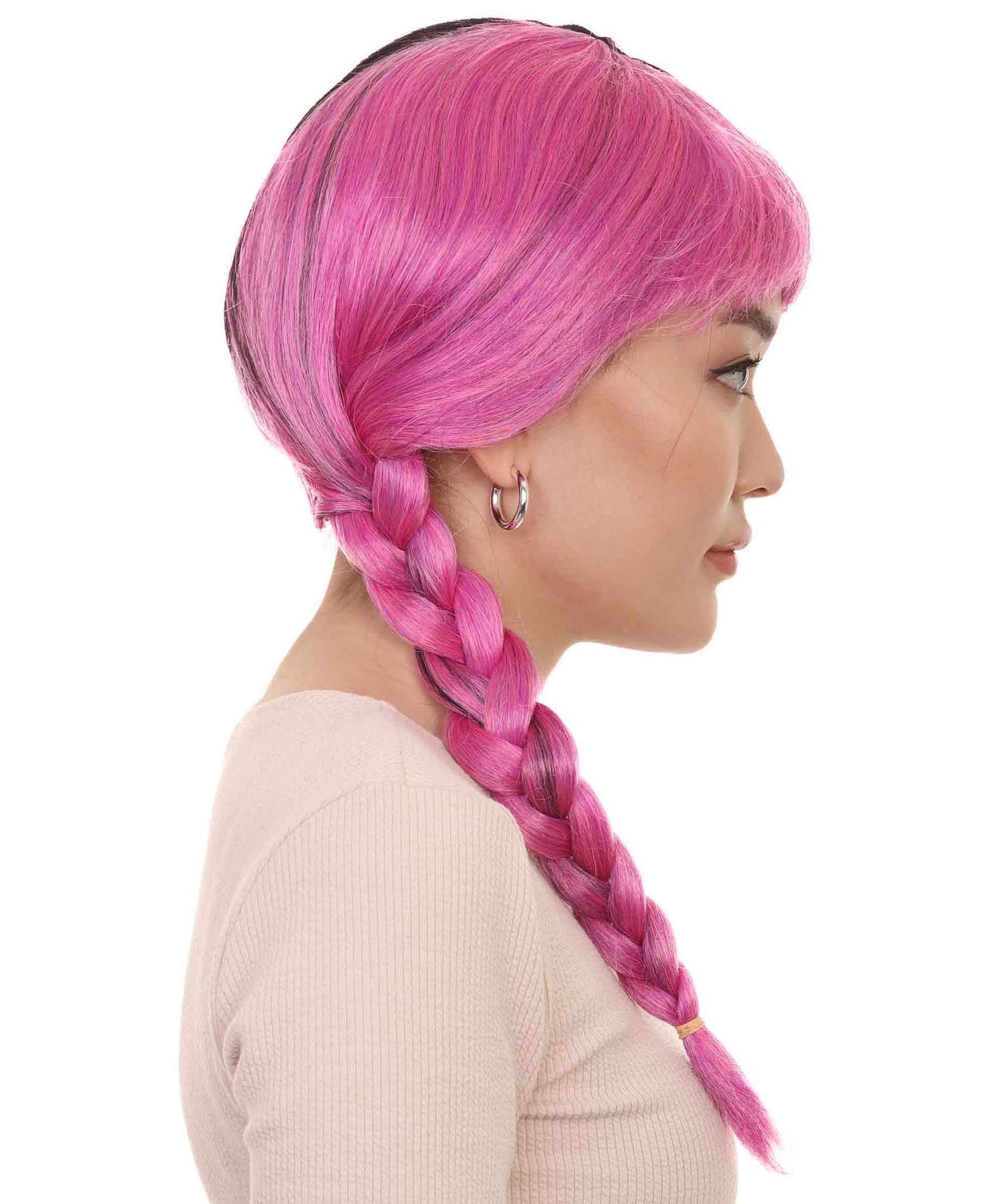 HPO Womens Double Braid Wig | Pink & Black Celebrity Wig | Premium Breathable Capless Cap