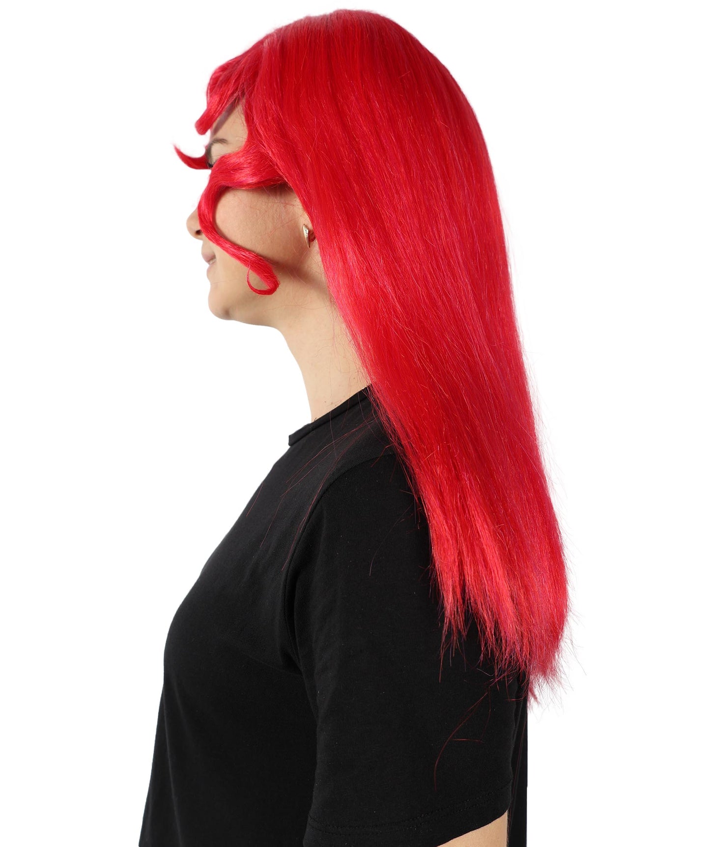 HPO Women's Drag Queen Red Wig I Halloween Wig I Flame-retardant Synthetic Fiber