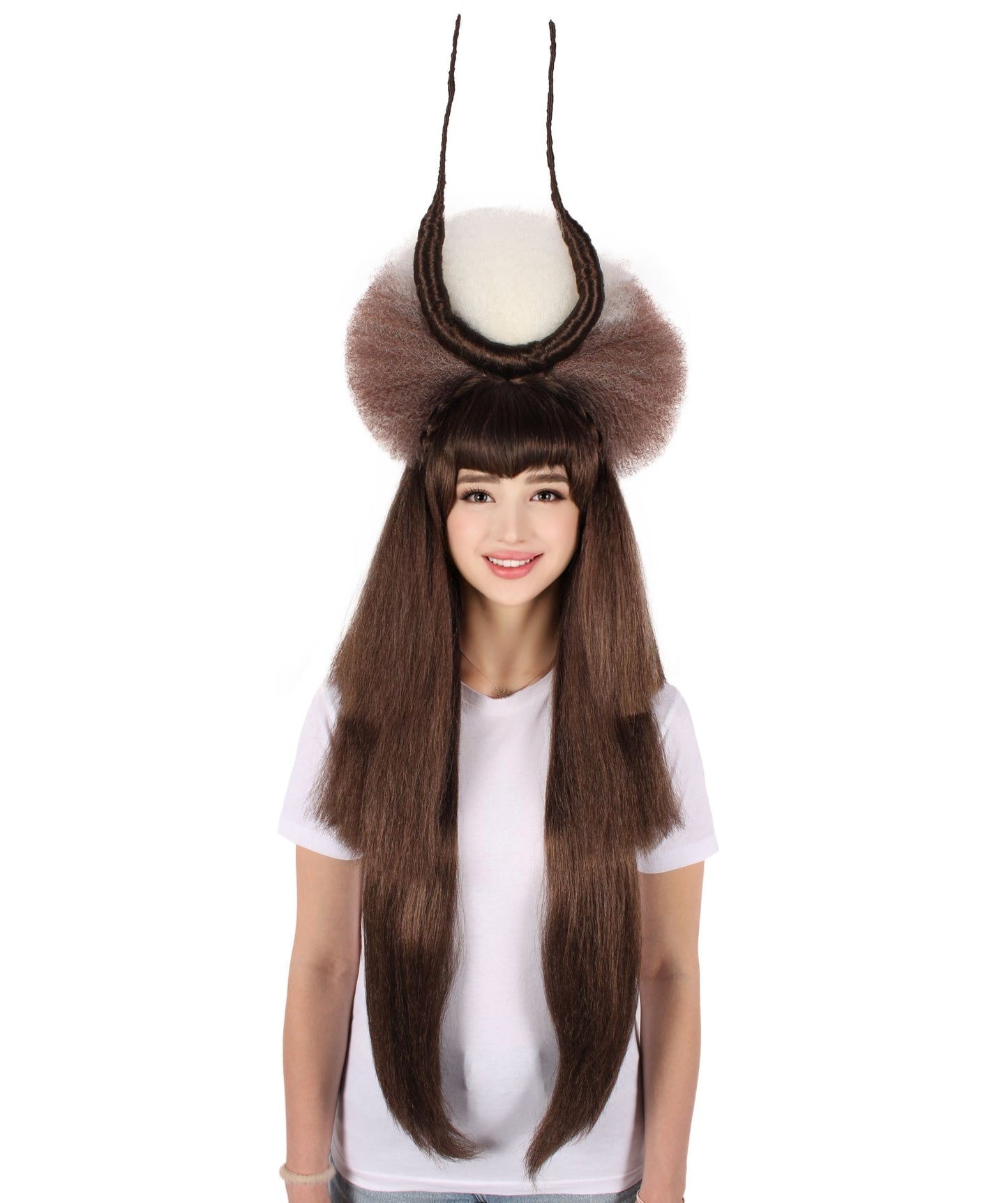 Get ready to rock with our beautiful and unique Dramatic Devil Horn Layered Wig at your upcoming and Halloween event. It is a long, multicolor, and Layered Wig with a beautiful design. The pair of horns on the top added extra drama and uniqueness to the Layered Wig.
