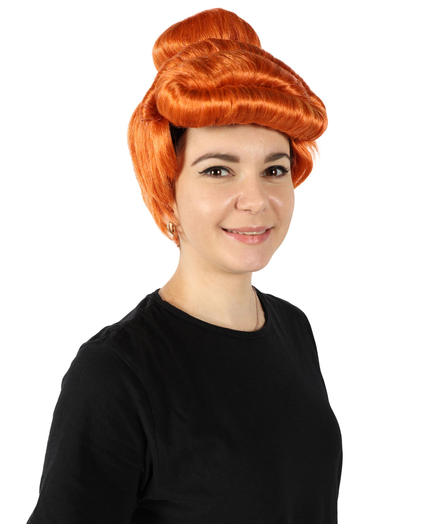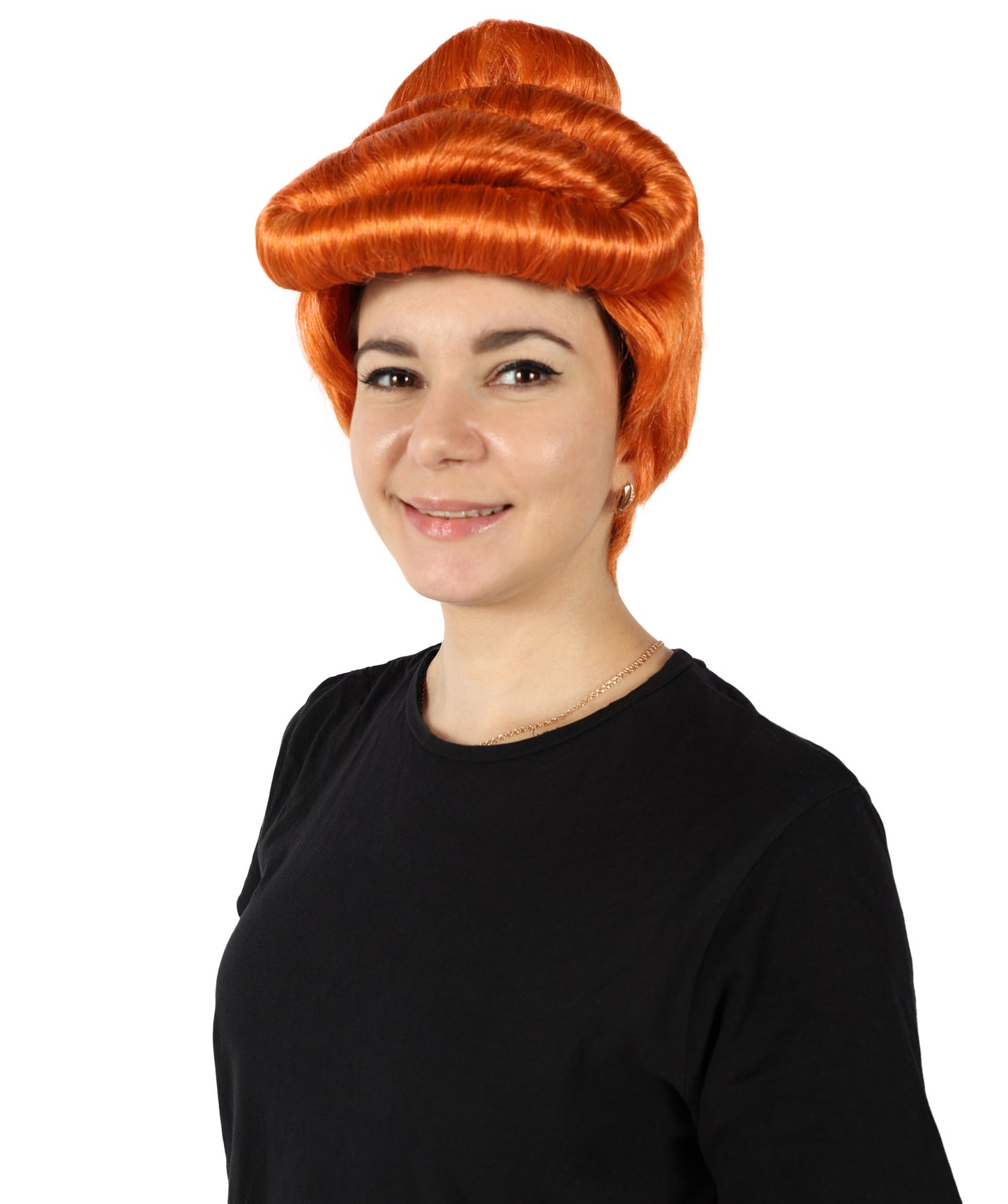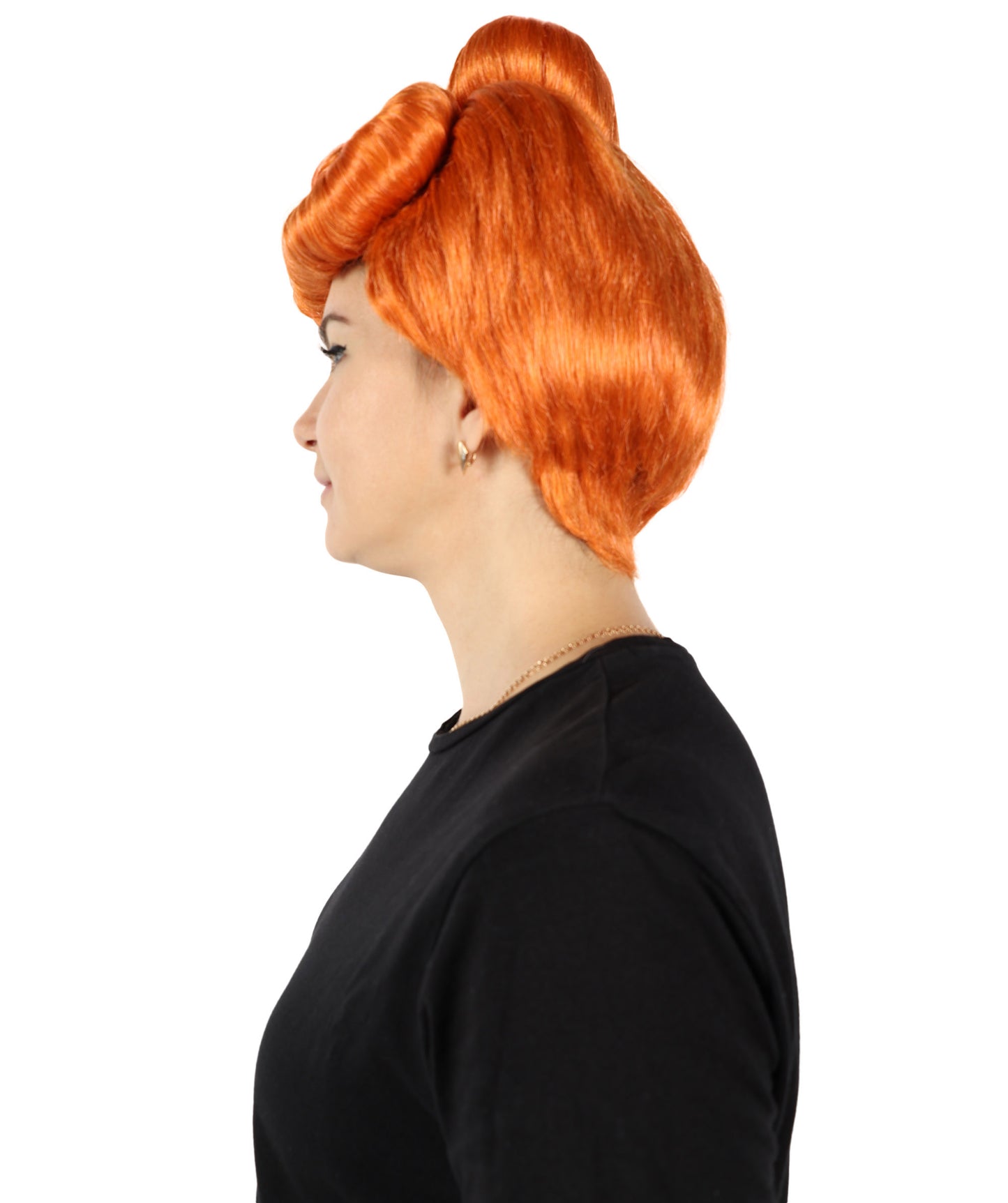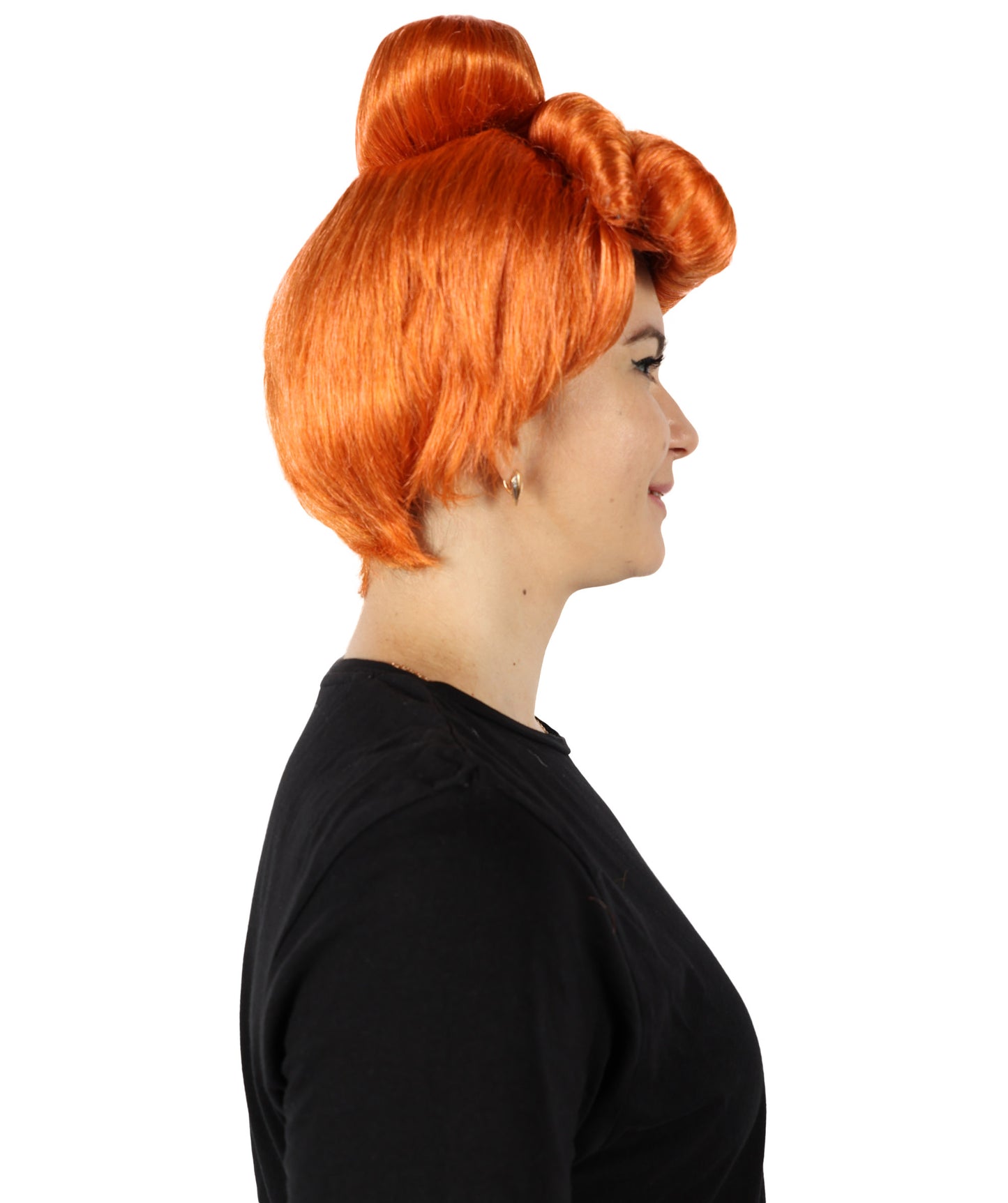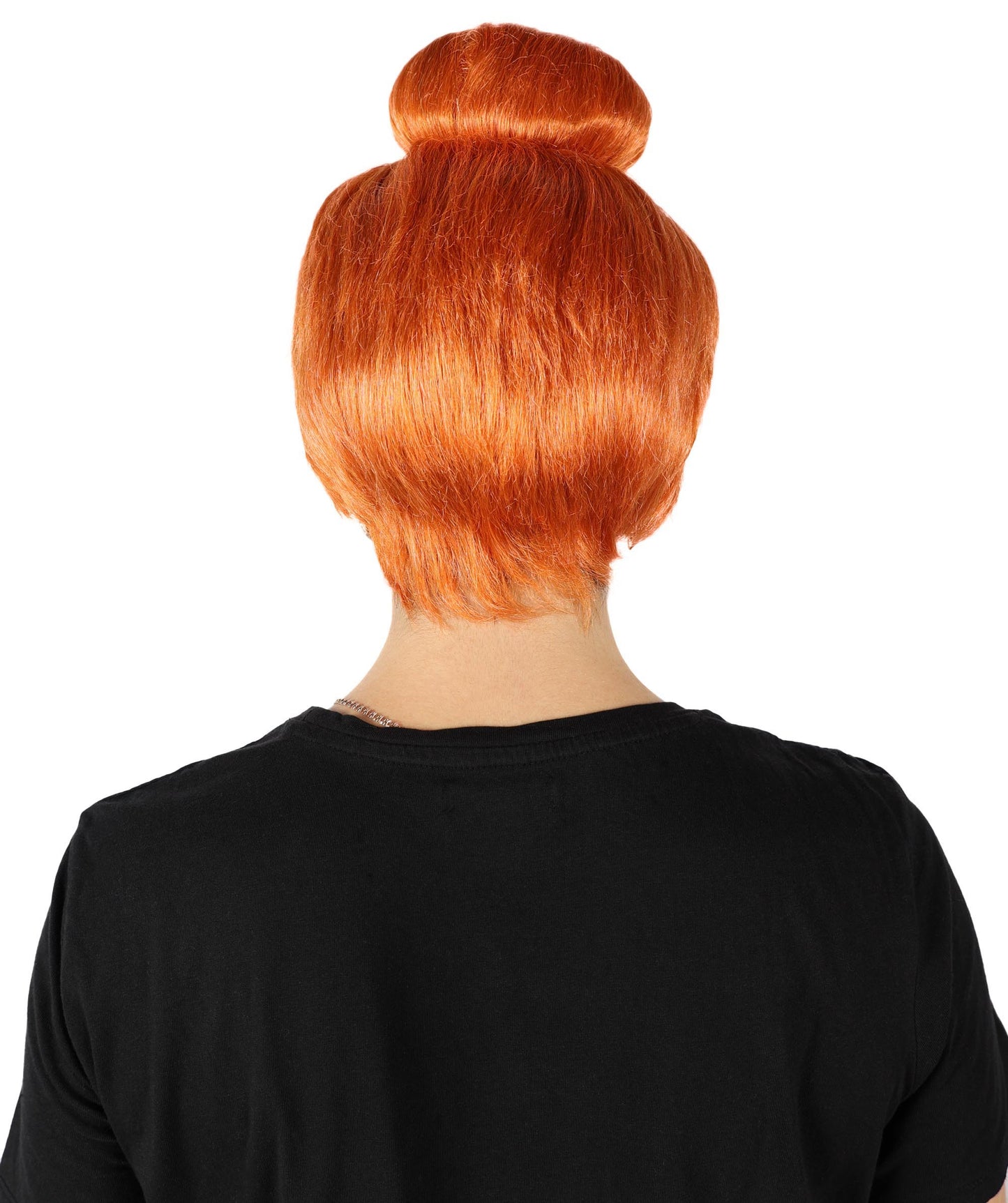 HPO Women's Fictional Character Orange Knot Bun Pompadour Wig I Halloween Wig I Flame-retardant Synthetic Fiber