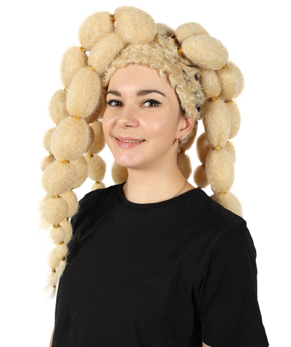 HPO Women's Fluffy Long Knot Blonde Wig I Halloween Wig I Flame-retardant Synthetic Fiber