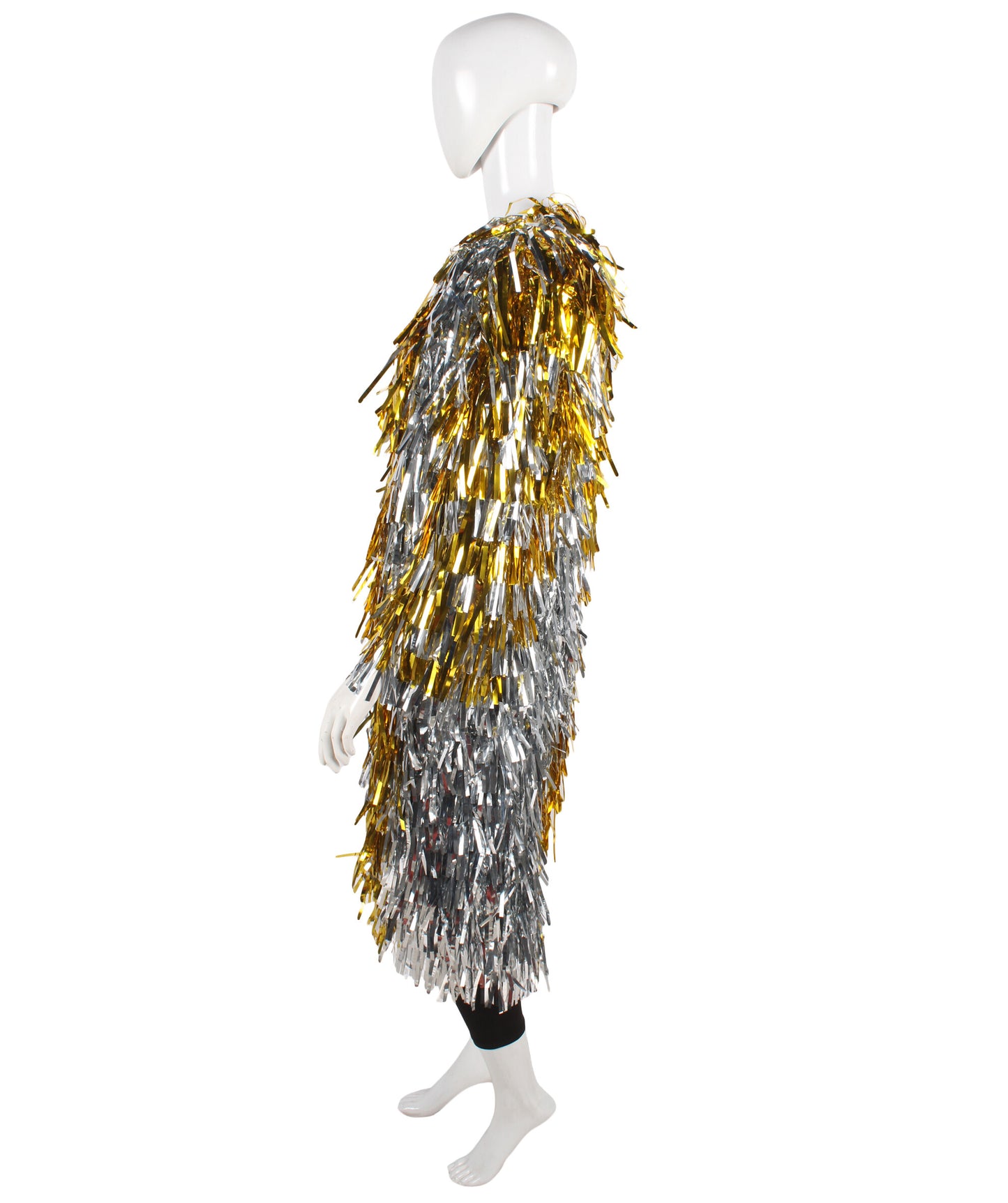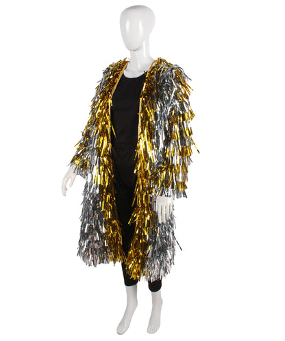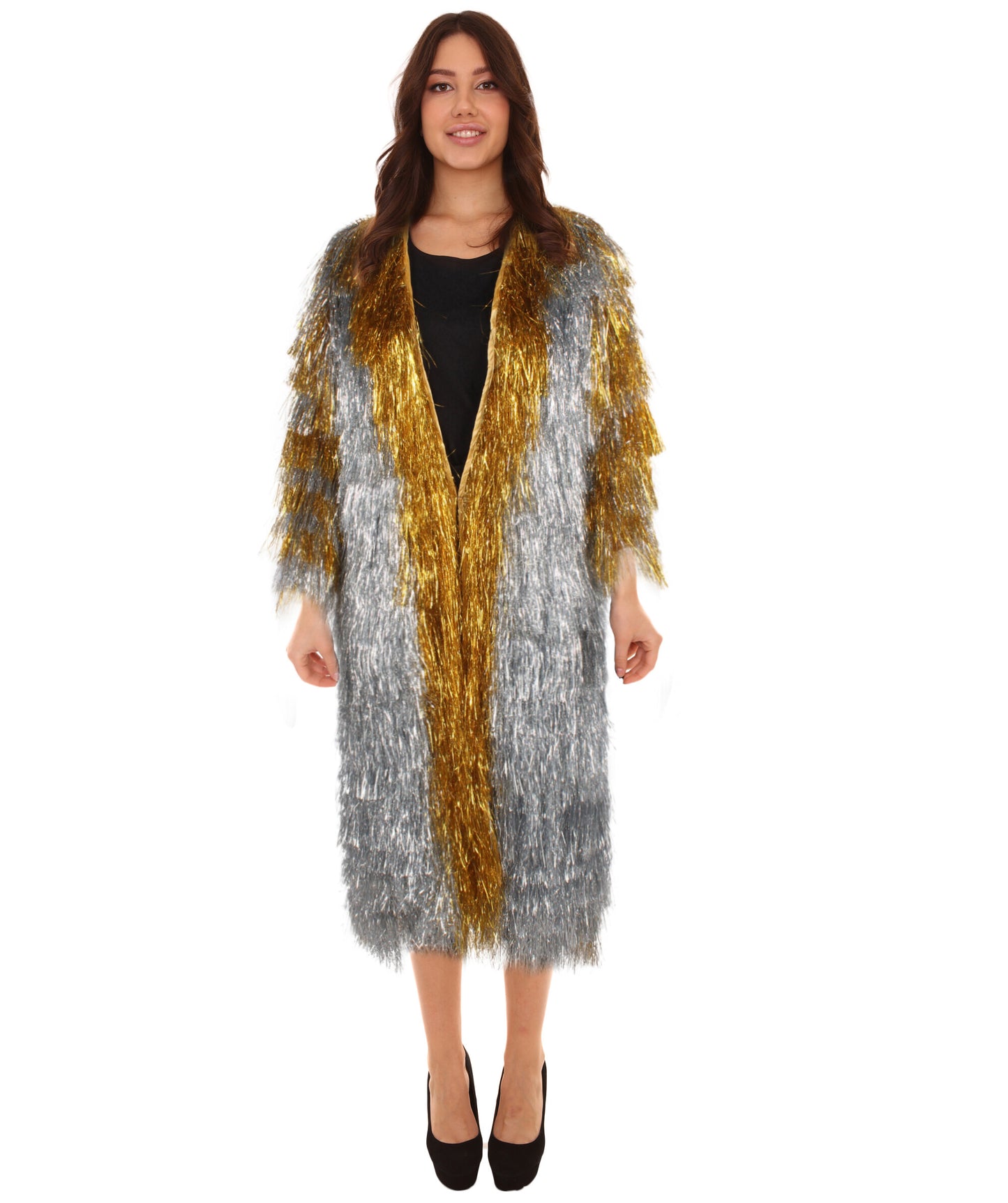 This Adult Women’s Gold & Glitter Tinsel Trench coat for your next cosplay party!