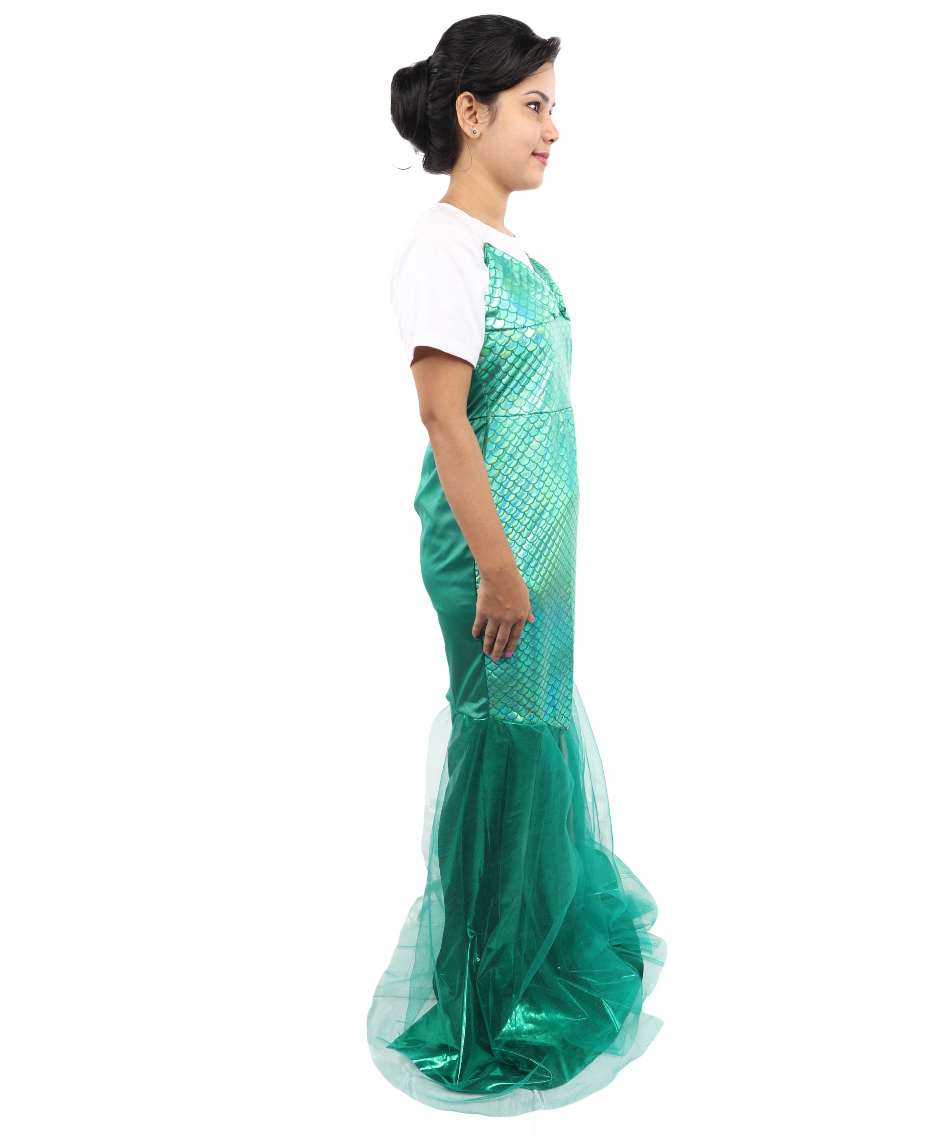 HPO Women's Green Fishtail Sequin Gown Costume | Elegant Shimmer Dress | Ideal for Halloween, Parties, Cosplay & Evening Themes