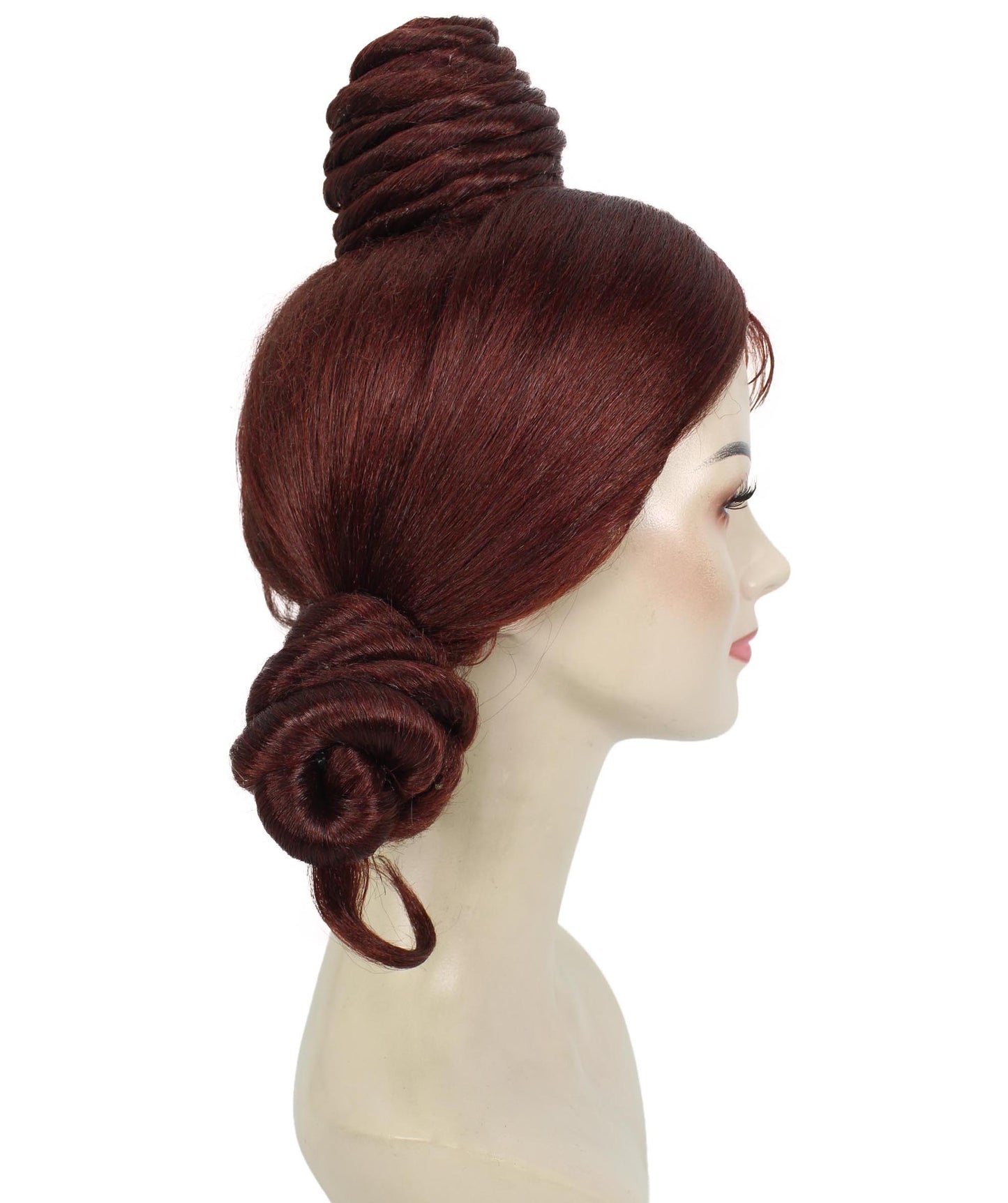 This ethereal top knot wig, with its ghostly white color and stylish top knot hairstyle, is ideal for representing spirits, specters, or otherworldly beings. Whether you're dressing up for a Halloween party, convention, or themed event, the Haunted House Ghost Top Knot Wig gives your costume a chic yet spooky touch that will make people shudder.