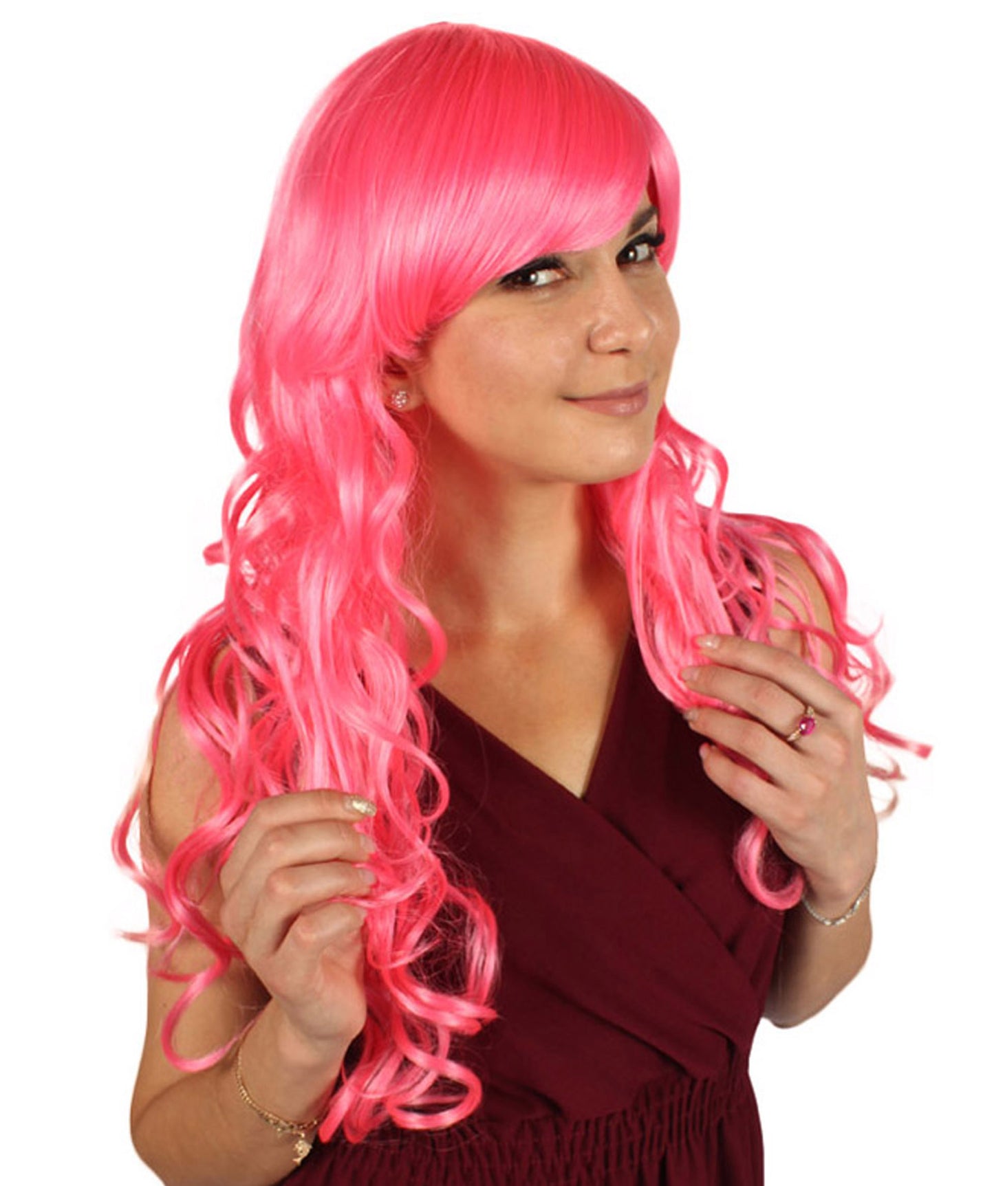 Whether you're diving into a fantasy role, embracing a whimsical character, or simply adding flair to your Halloween ensemble, this Pink Long Curls Wig is the perfect choice.