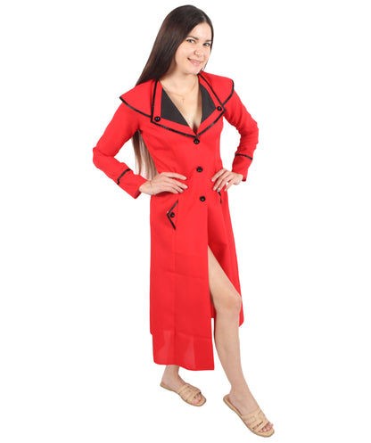 From the stunning Red Dress Costume, you'll be sure to turn heads and make hearts race. Step into the spotlight. This costume, which is made of opulent fabric that flows beautifully over all curves, is a symphony of sophistication and charm. The classic form radiates grace and elegance, while the vivid scarlet color conveys power and desire.