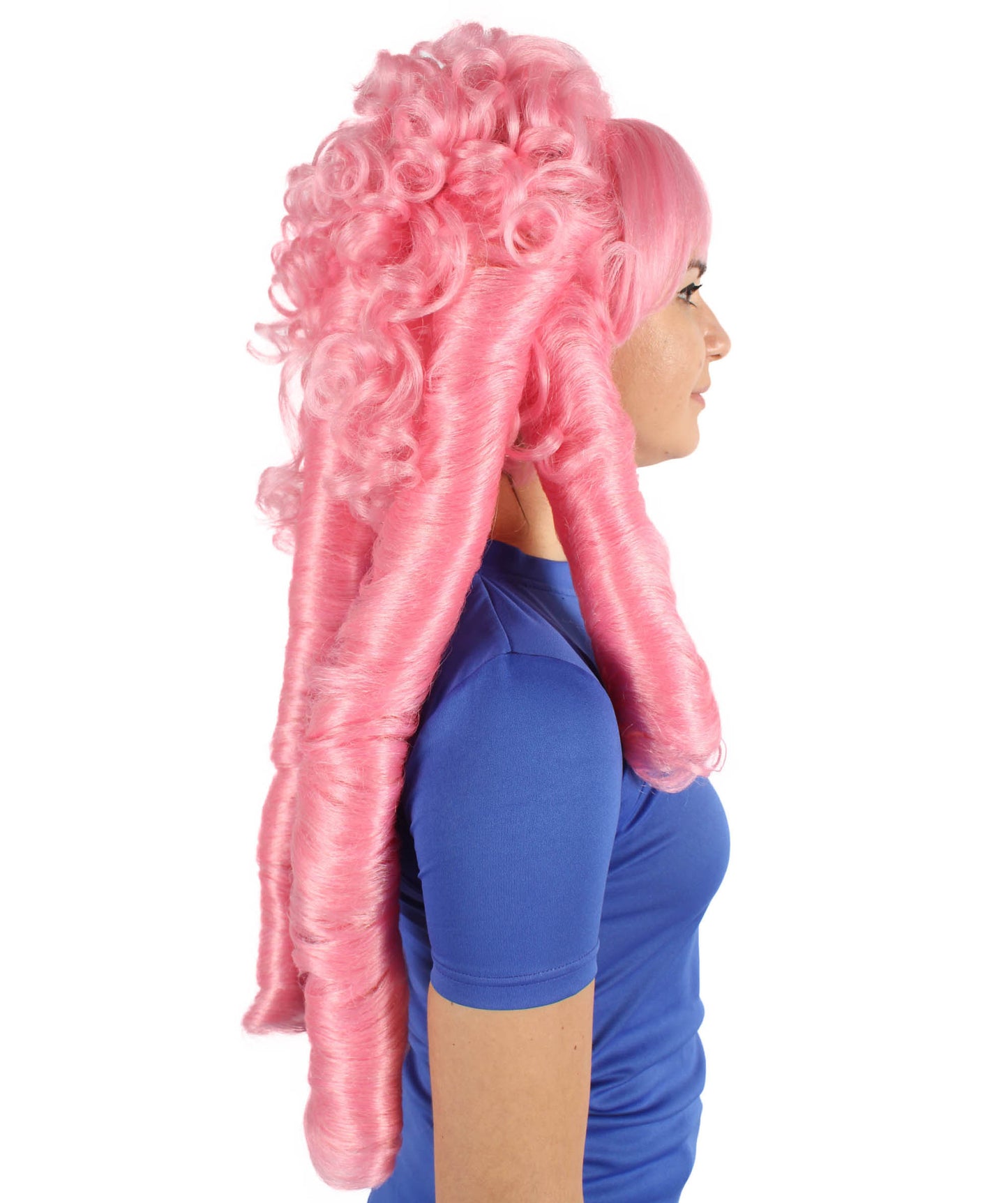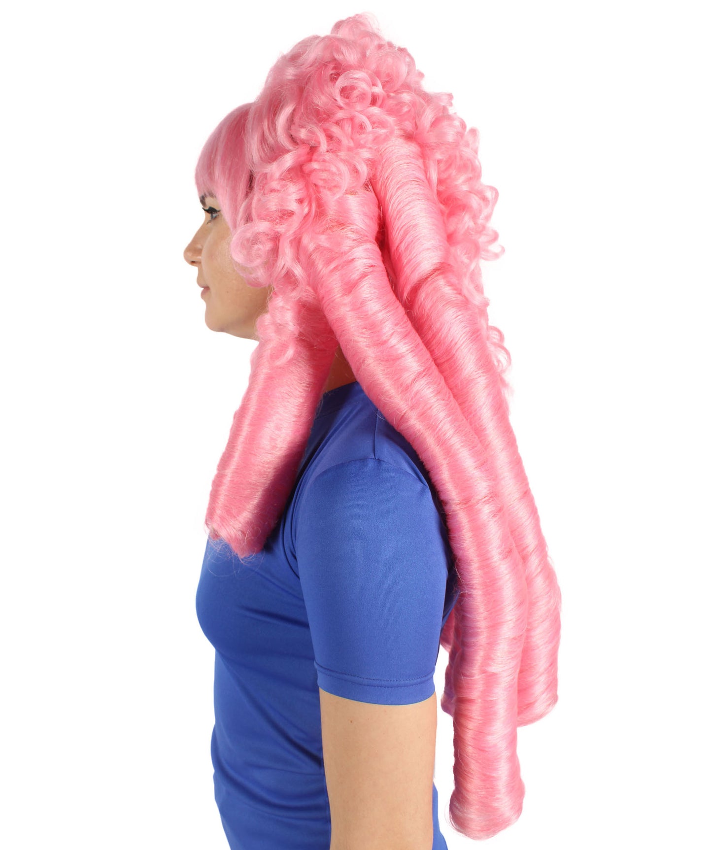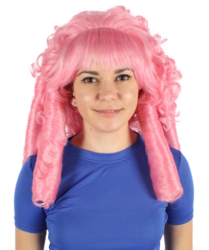 HPO Women's Magical Stone Cartoon Series Leader Pink Long Ringlets Curly Wig | Flame-retardant Synthetic Fiber