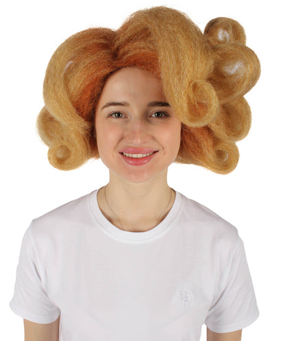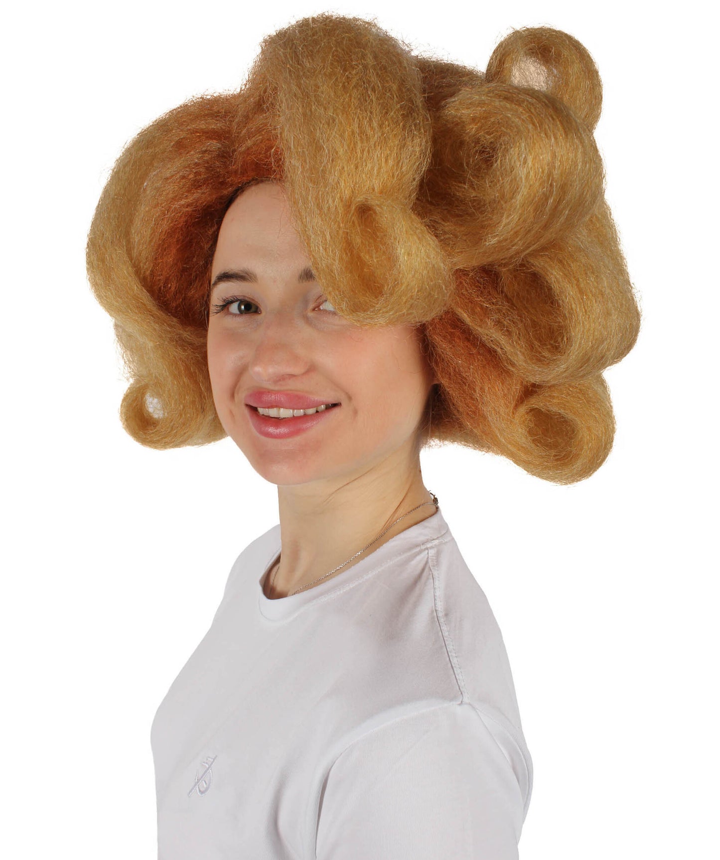 HPO Women's Brown Color Fluffy Curl Wig Perfect for Halloween, Flame-retardant Synthetic Fiber