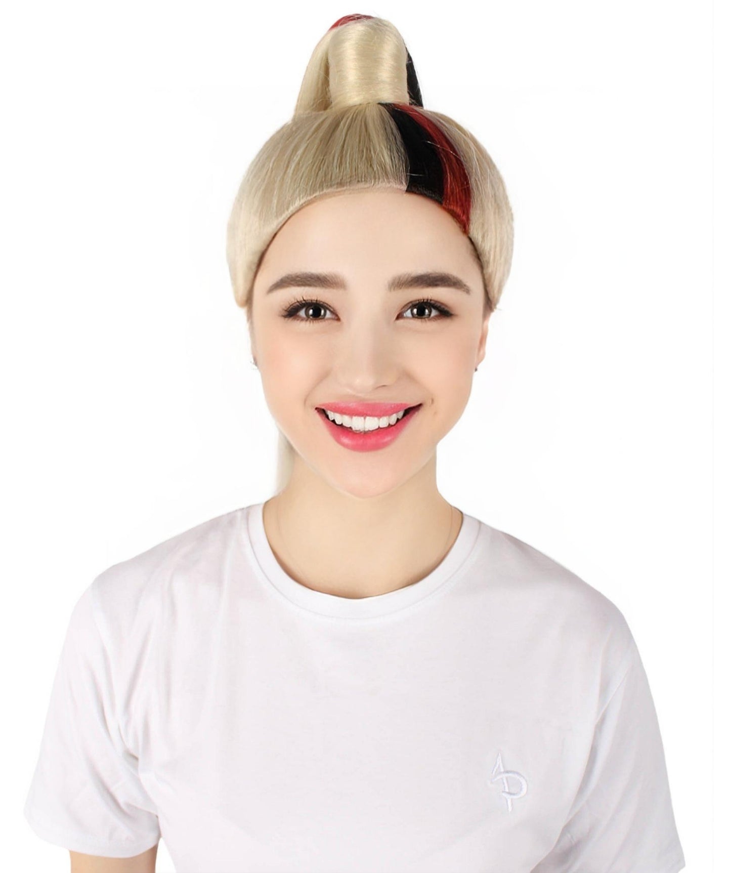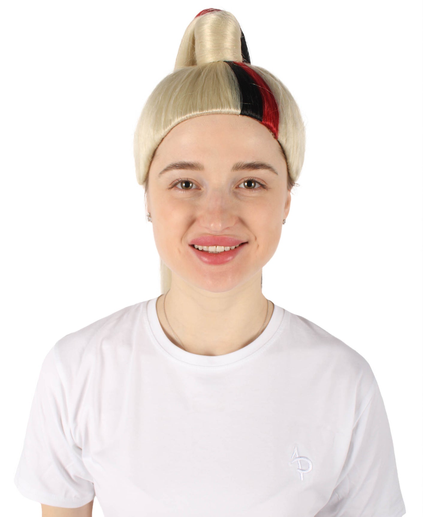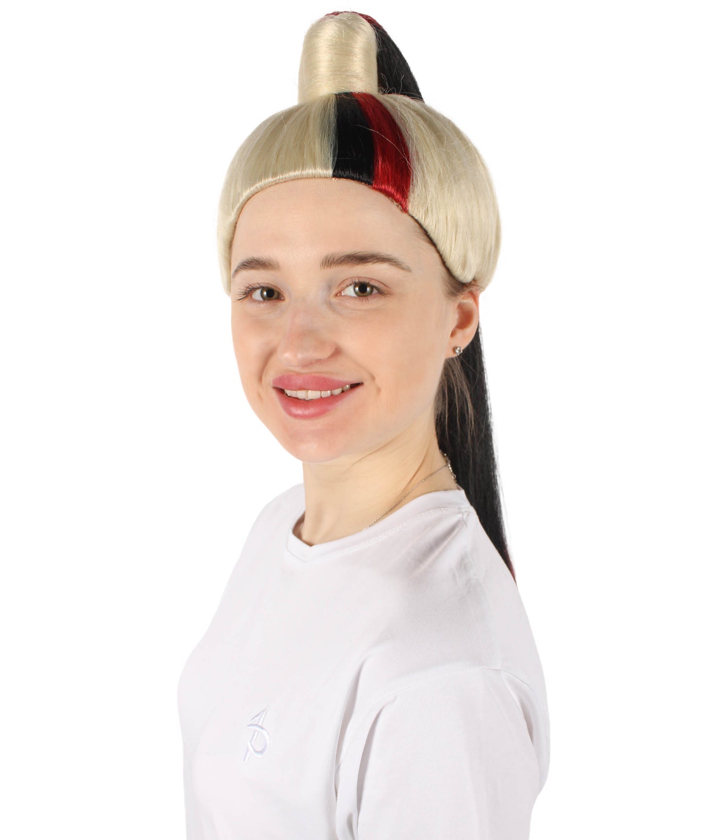 This hairpiece has a playful updo ponytail hairstyle that adds a modern touch and makes it a perfect choice for characters who love to keep fun and fabulous. Whether you're trying to a fiery fantasy character or a sassy and vibrant personality, this wig will change your costume game. Get ready to catch the limelight, make people amazed, and show your creativity with the Red and Blonde Long Two Tone Wig. Who says Halloween can't be both spooky and fabulous?