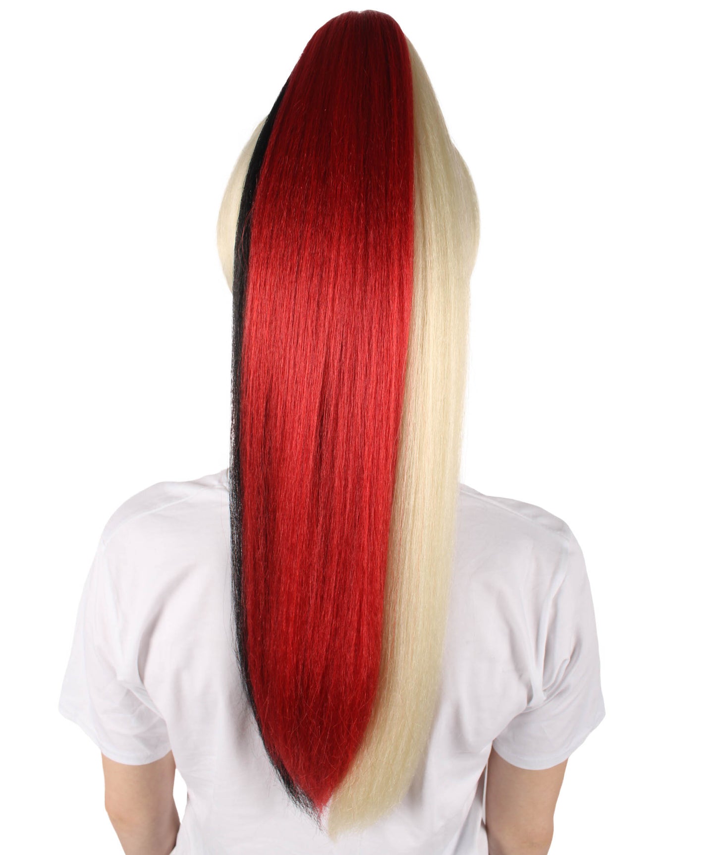 HPO Women's Red and Blonde Long Two Tone Wig | Perfect for Halloween | Flame-retardant Synthetic Fiber