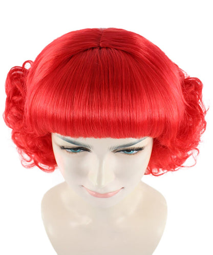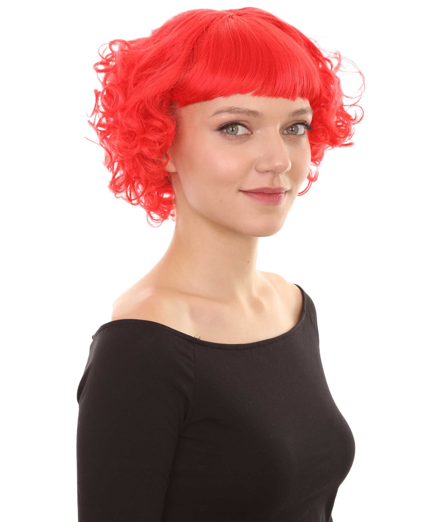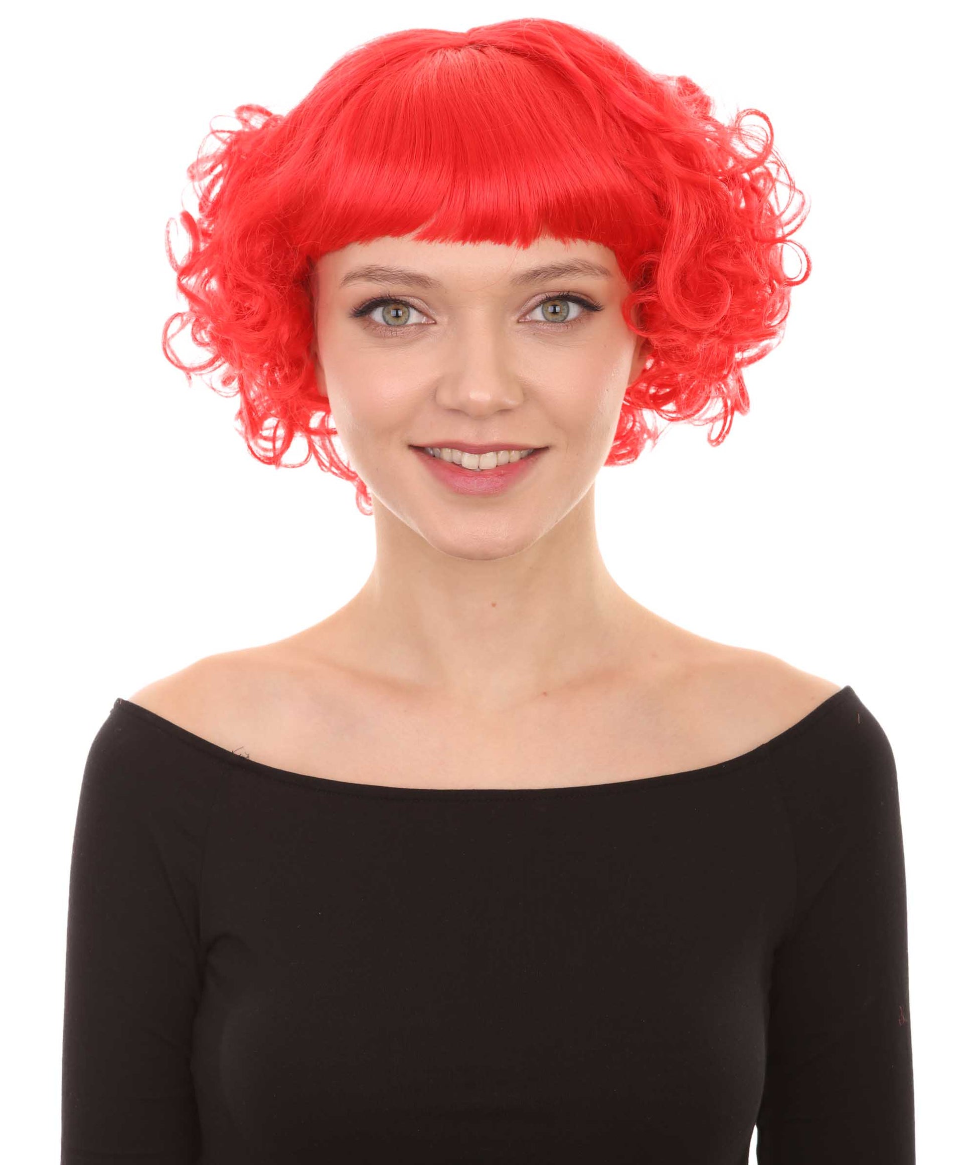 HPO Women's Short Red Cute Curly Wavy Wig | Party Ready Fancy Halloween Wig | Premium Breathable Capless Cap