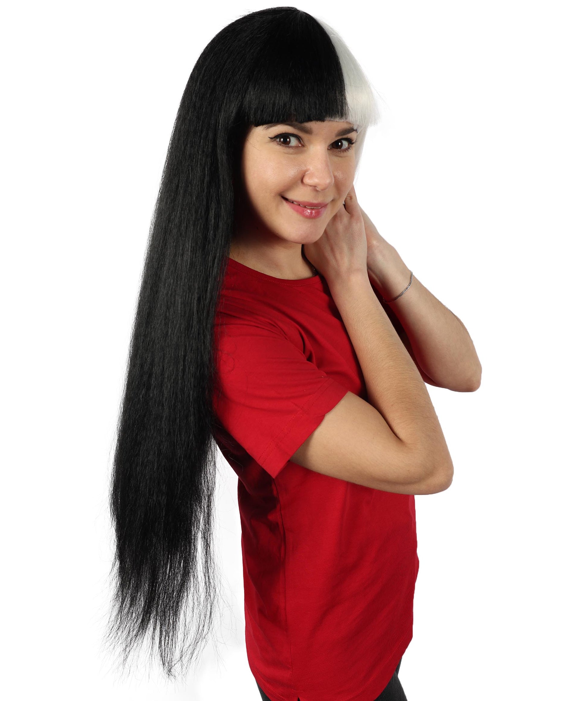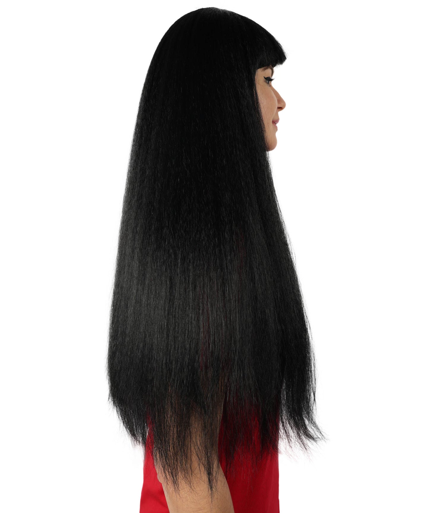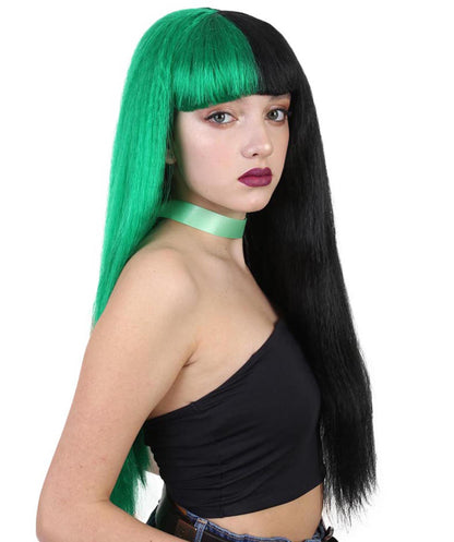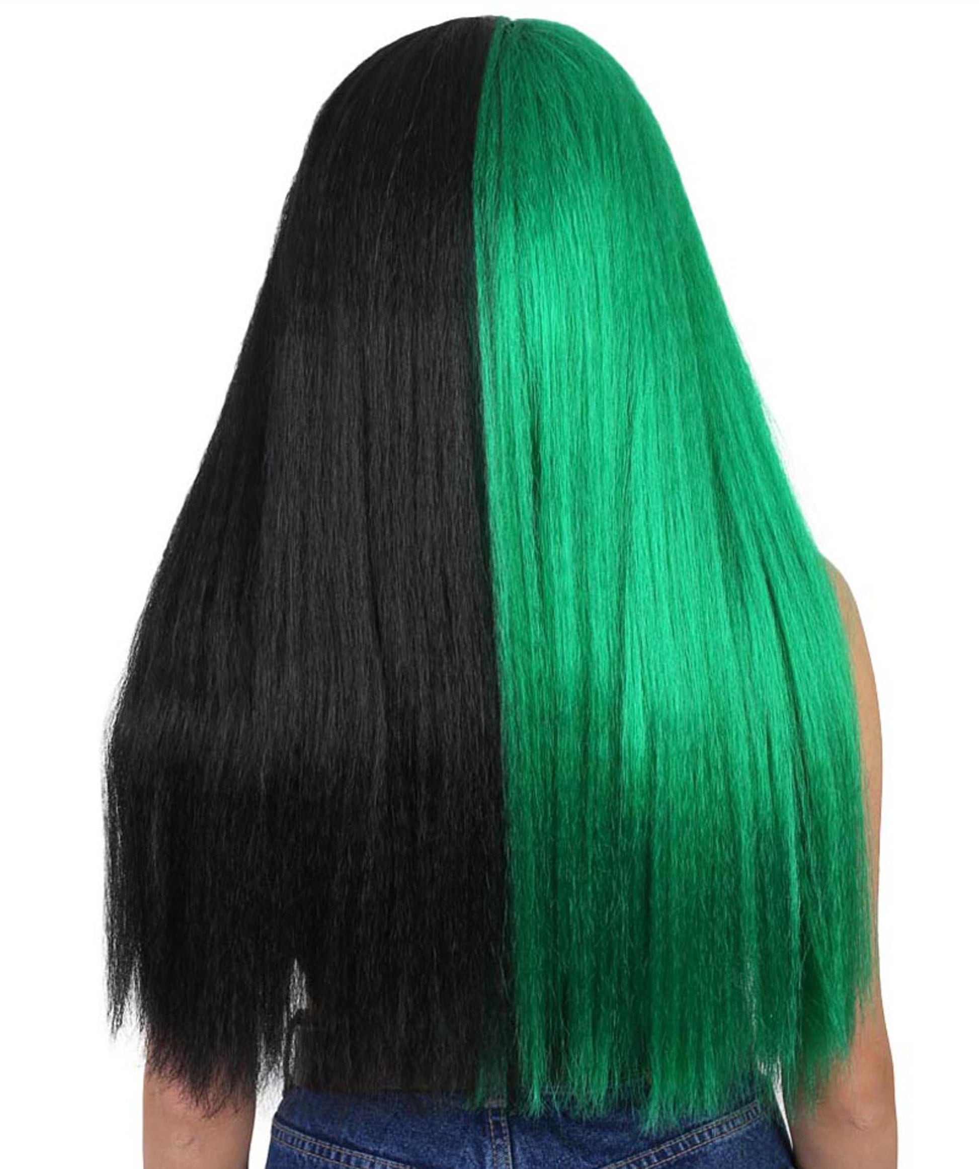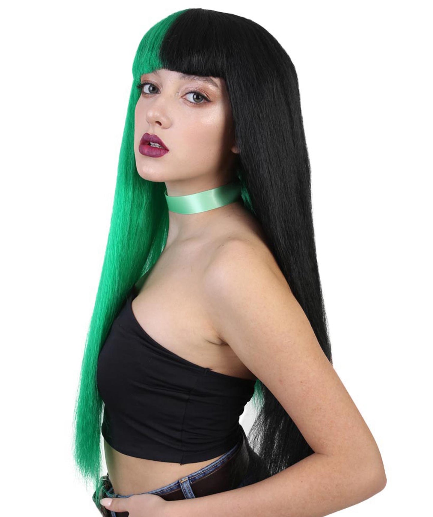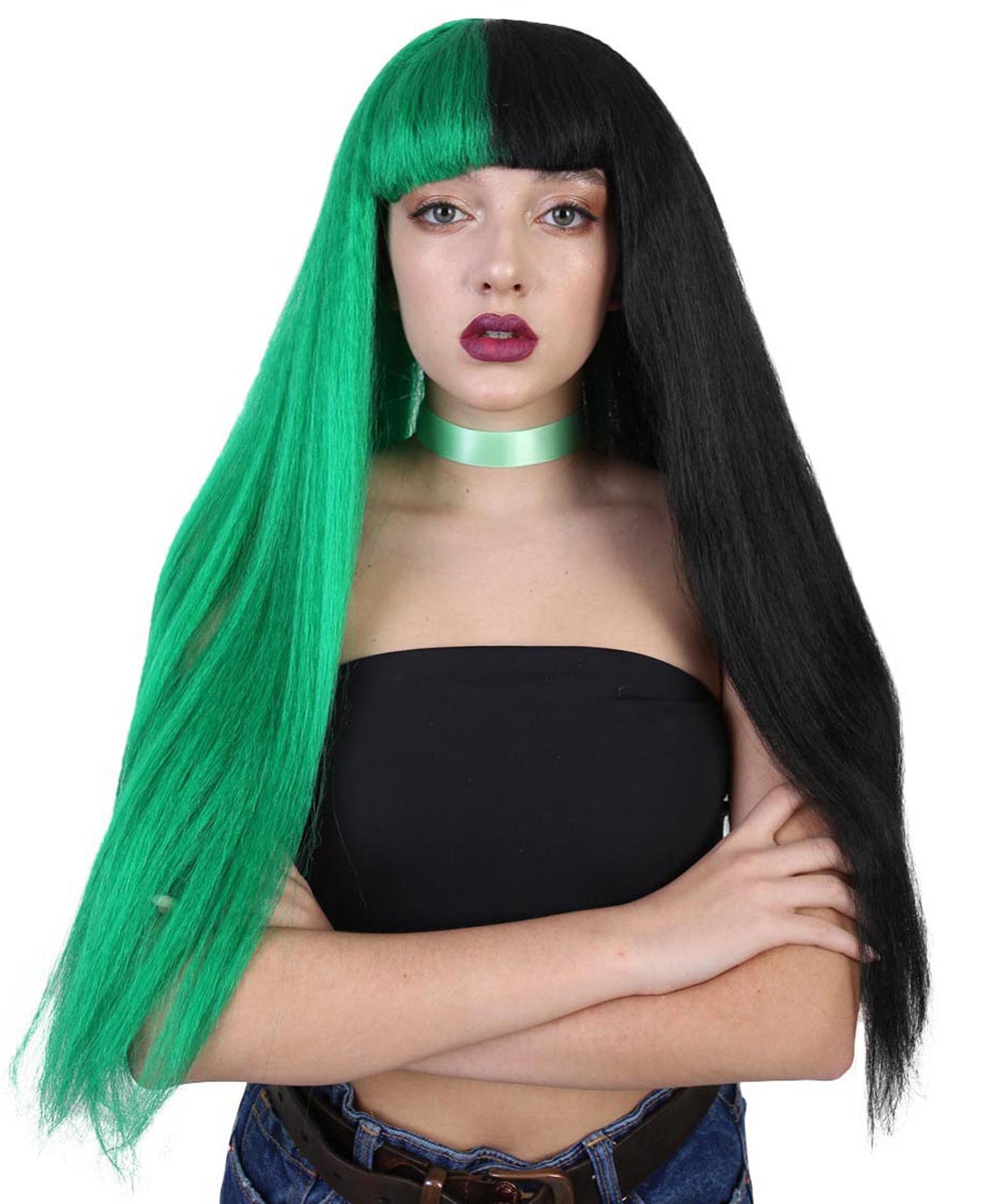 HPO Women's Singer Wig | Long Green Black Celebrity Straight Wig | Premium Breathable Capless Cap