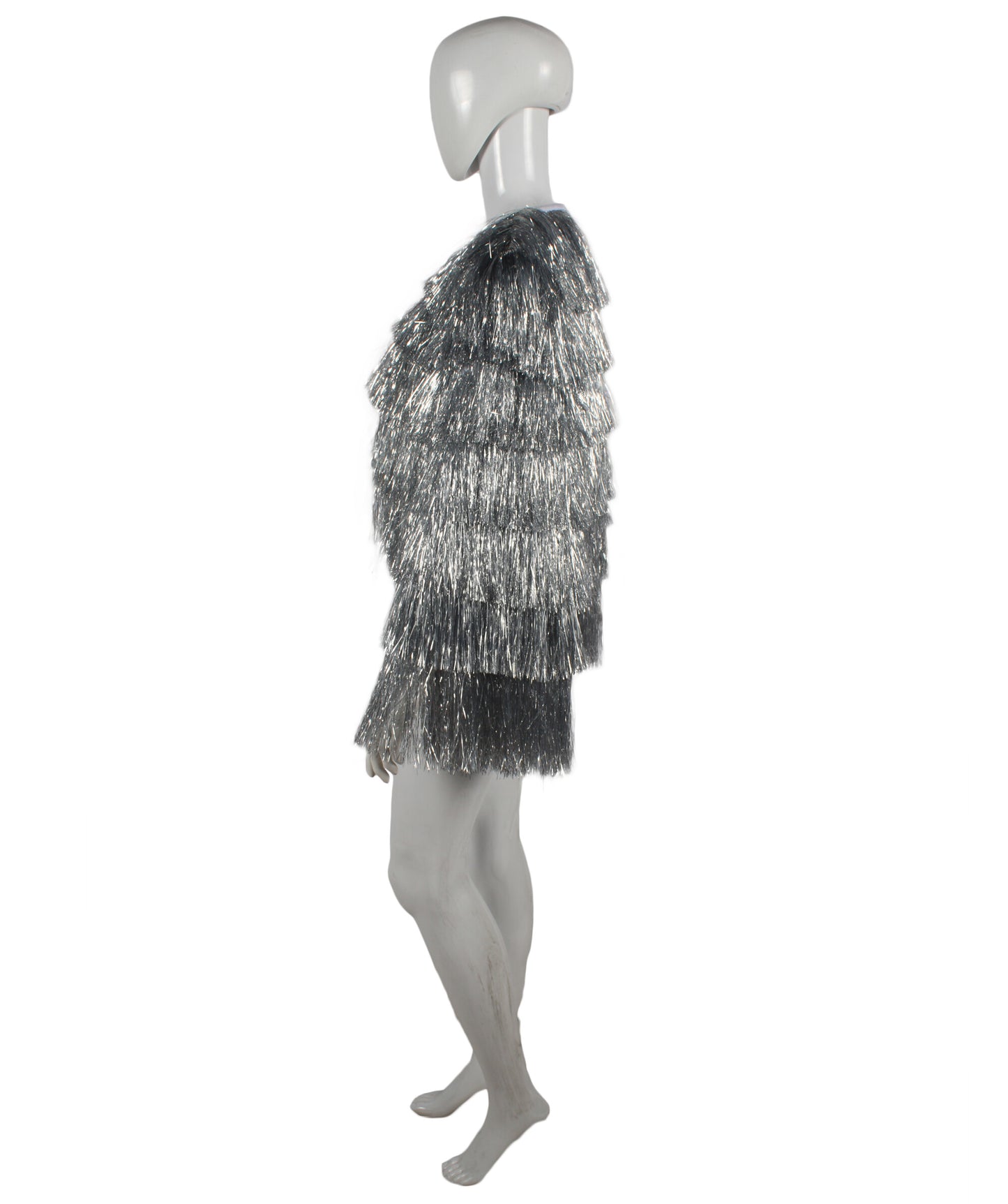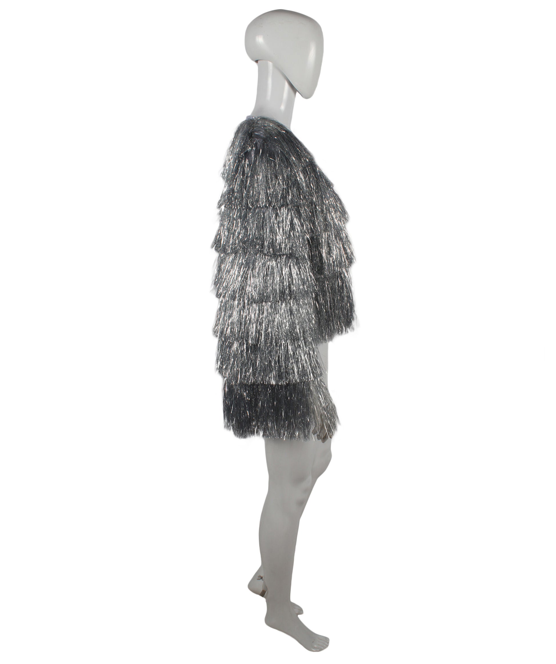 Presenting our Tinsel Sparkly Silver Jacket, the perfect piece for style and sophistication for your upcoming celebrations! This glittering silver jacket is made with synthetic materials and is the perfect option for Halloween, gatherings, or any other festive occasion when you wish to dazzle like a light ball. This silver tinsel jacket is very shiny to look at and also feels comfortable to wear for any kind of long party or occasion.