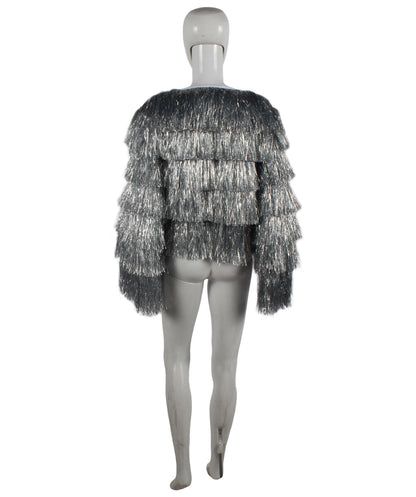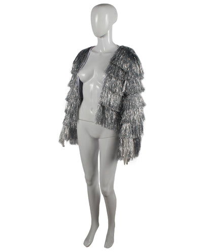 HPO Women's Tinsel Sparkly Silver Jacket, Perfect for Halloween