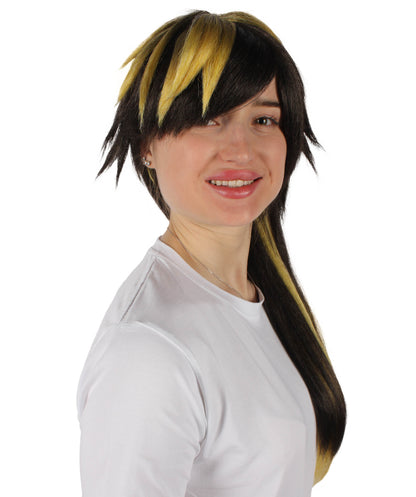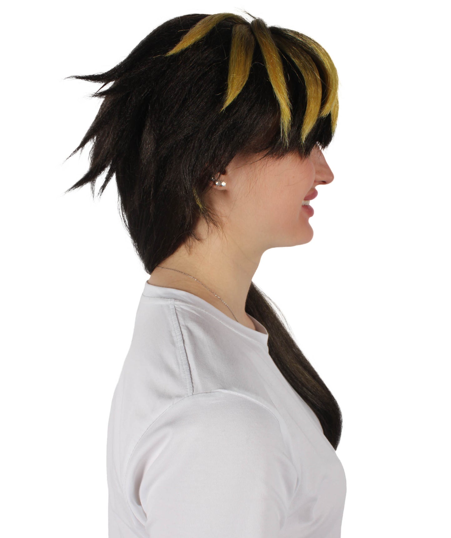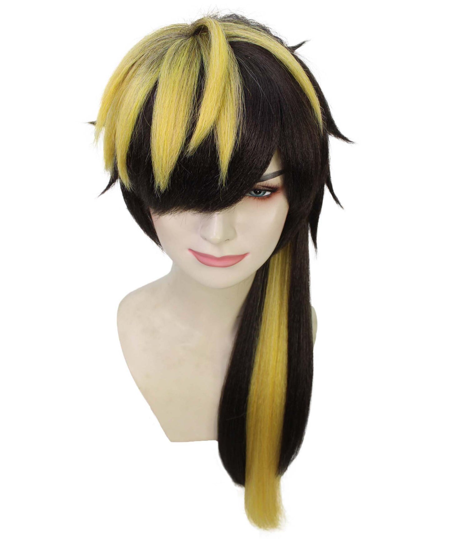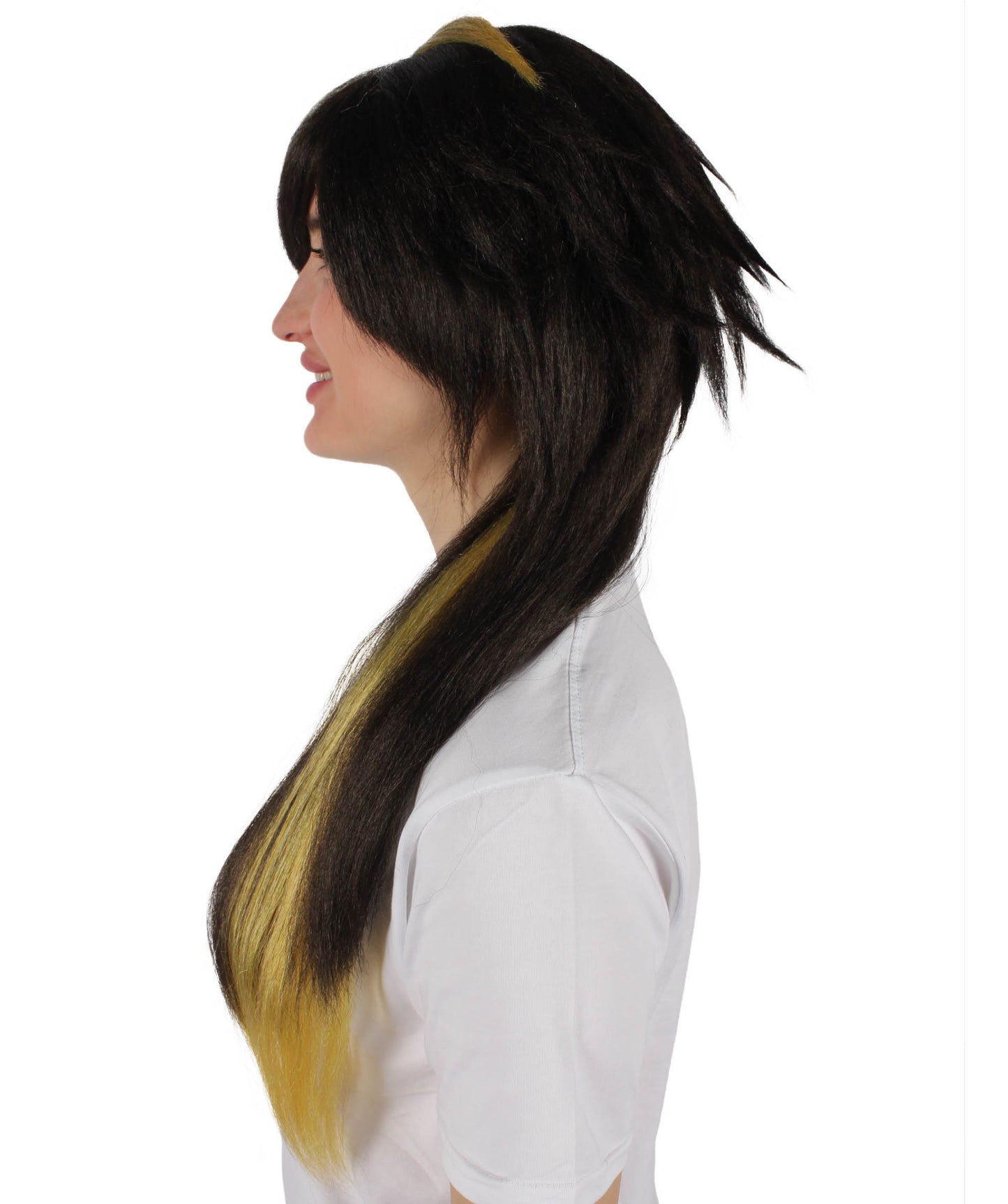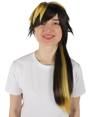 HPO Women's Visual Kei Musician Black & Yellow Wig,Perfect for Halloween, Flame-retardant Synthetic Fiber