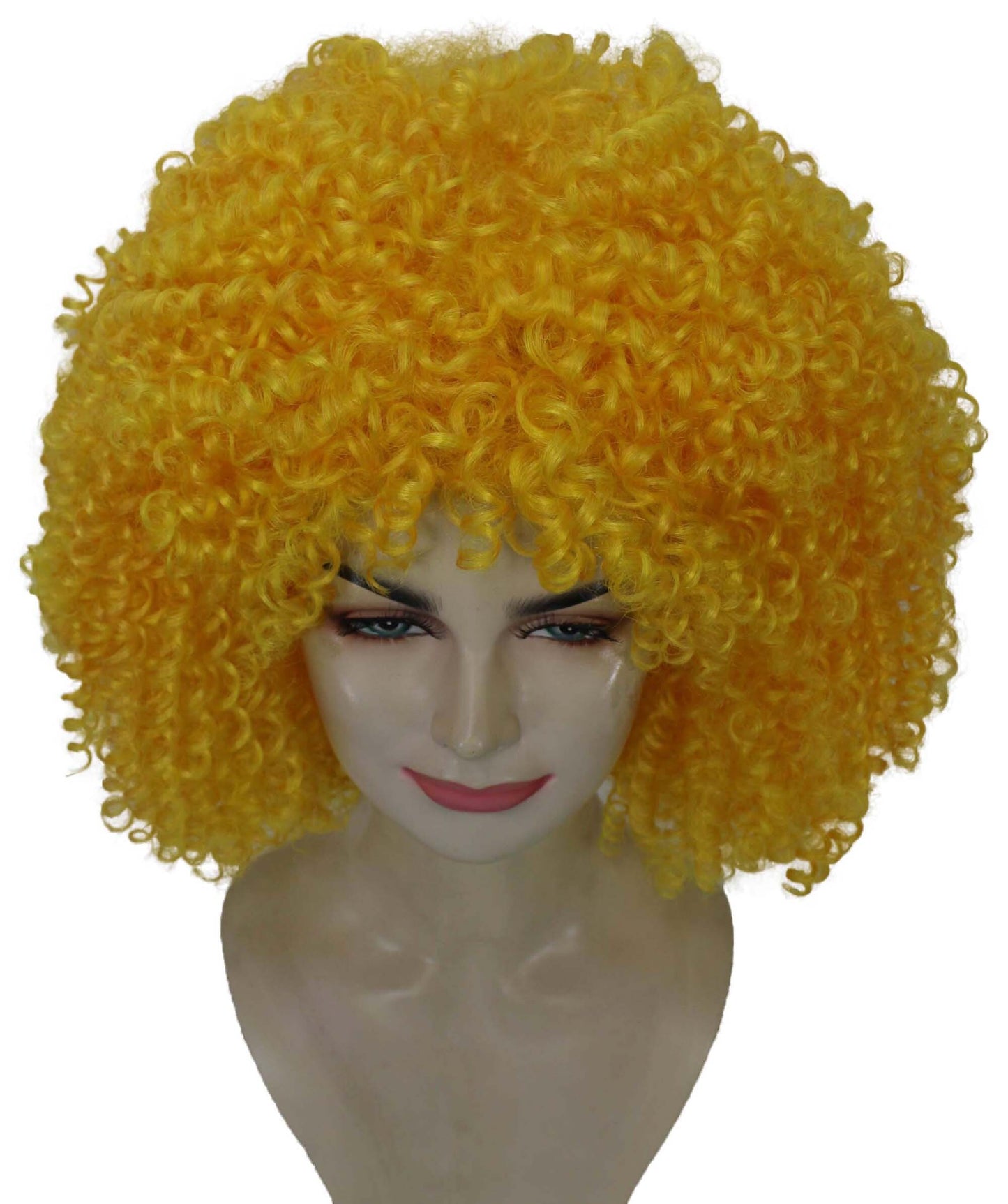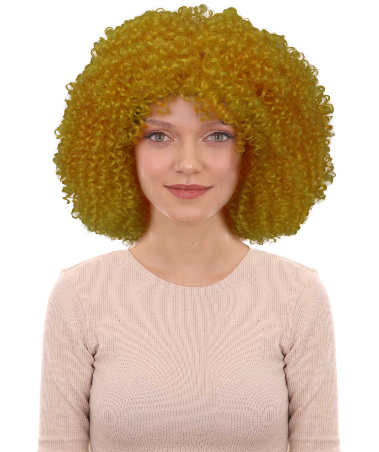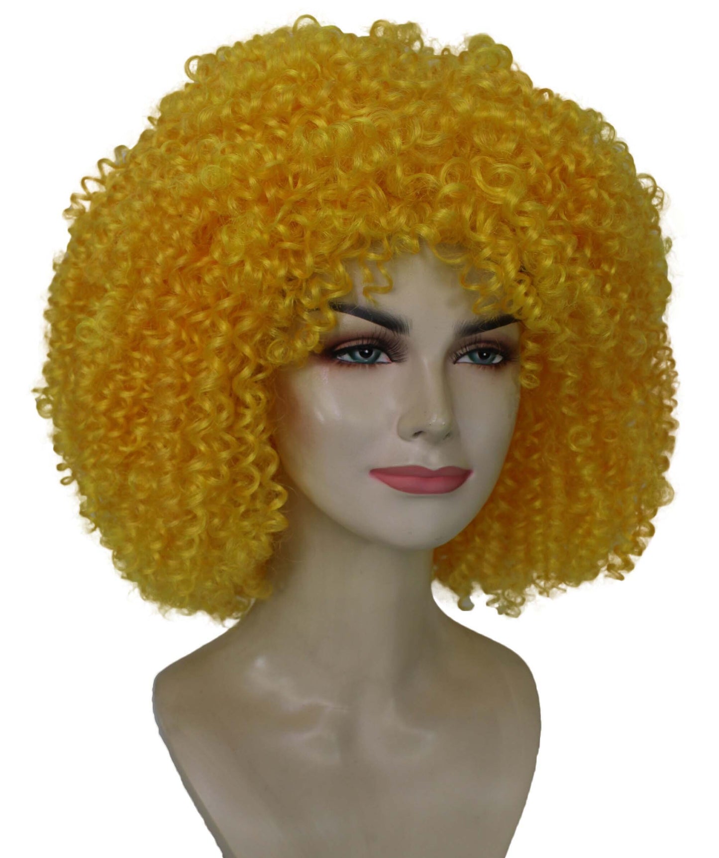 HPO Women's Yellow Afro Kinky Curly American Drag Wig, Perfect for Halloween Flame-retardant Synthetic Fiber