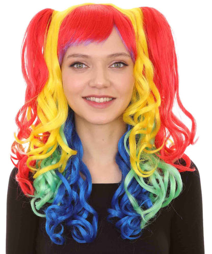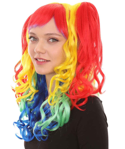 Featuring a vibrant mix of colors, including red, yellow, green, blue, and purple, this multicolor pigtail wig is sure to turn heads wherever you go. The wavy texture of the hair adds a touch of elegance and femininity, while the curled ends give it a playful, flirty vibe.