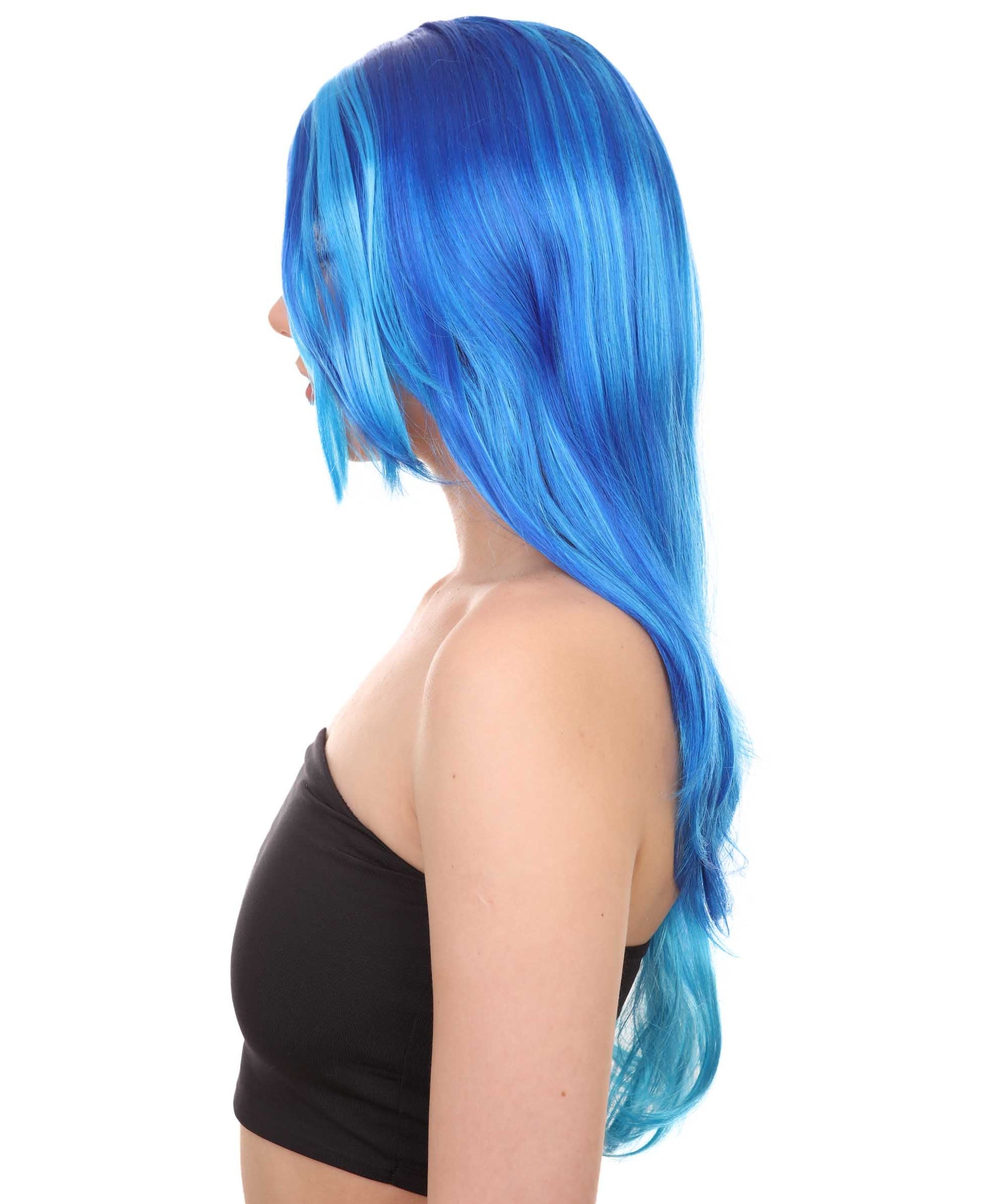 Long Wavy Blue Womens Wig | Sexy Halloween Wig | Premium Breathable Capless Cap