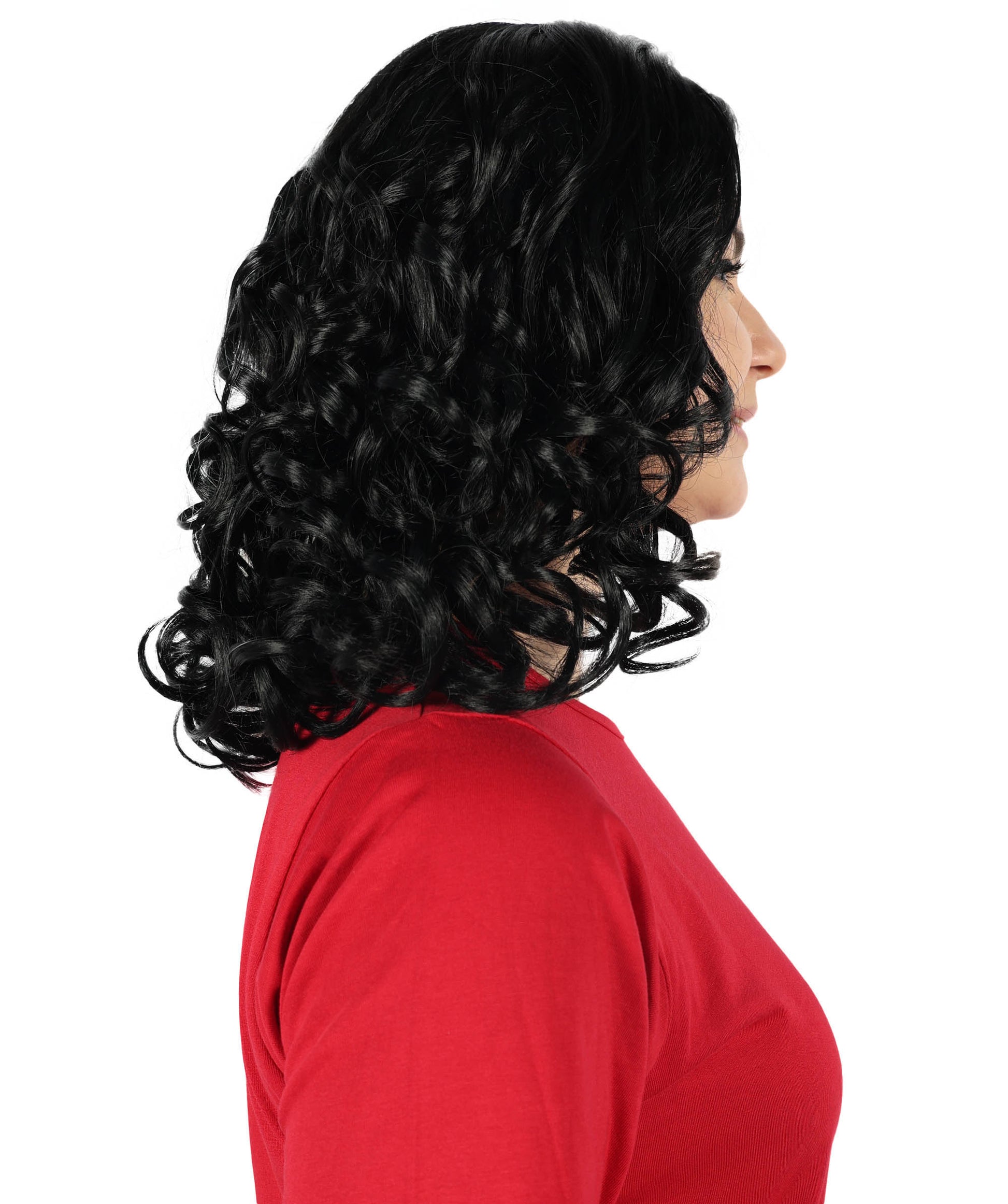 This character's hair reflects her background and the fact that she is sea nymph. She has a special relationship with her under water friends and can even speak their language. Her hair is beautiful golden color mixed with streaks of blue representing her oceanic roots. Now you too can get her mermaid like locks with our Lagoona wig.