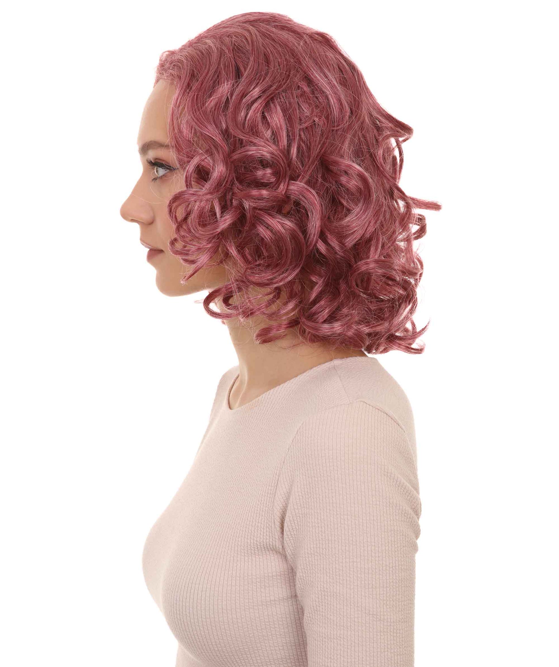 Women's Pink Curly Wig | Party Ready Halloween Wig | Premium Breathable Capless Cap.