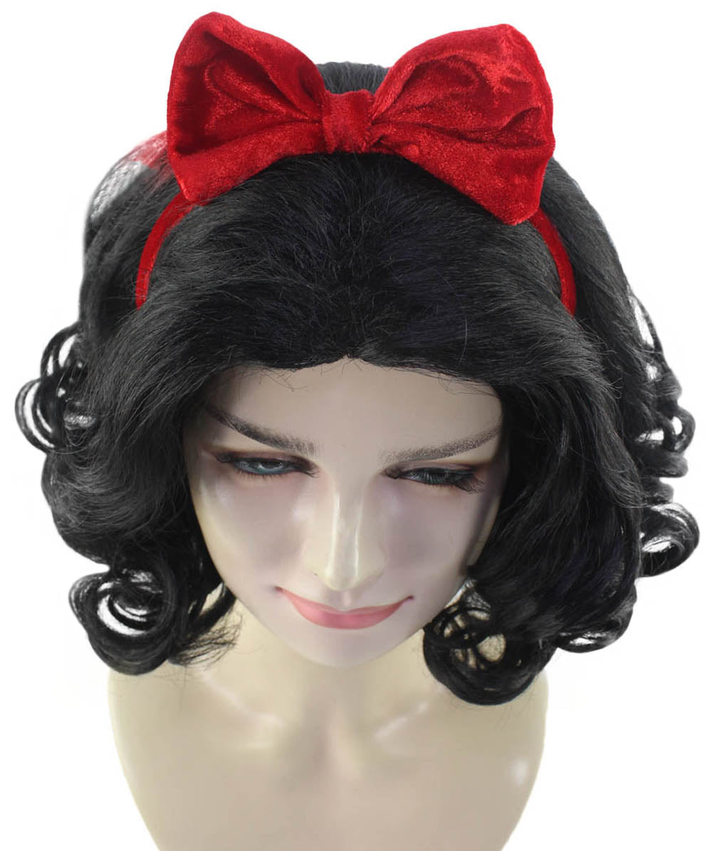 Womens Princess Wig with Red Bow | Black TV/Movie Wigs | Premium Breathable Capless Cap