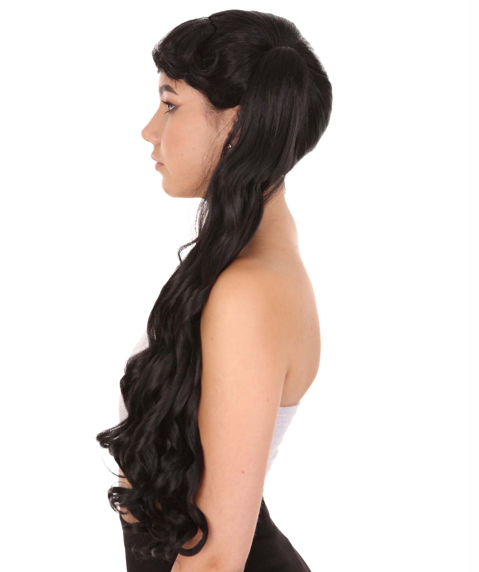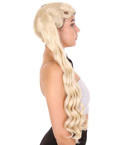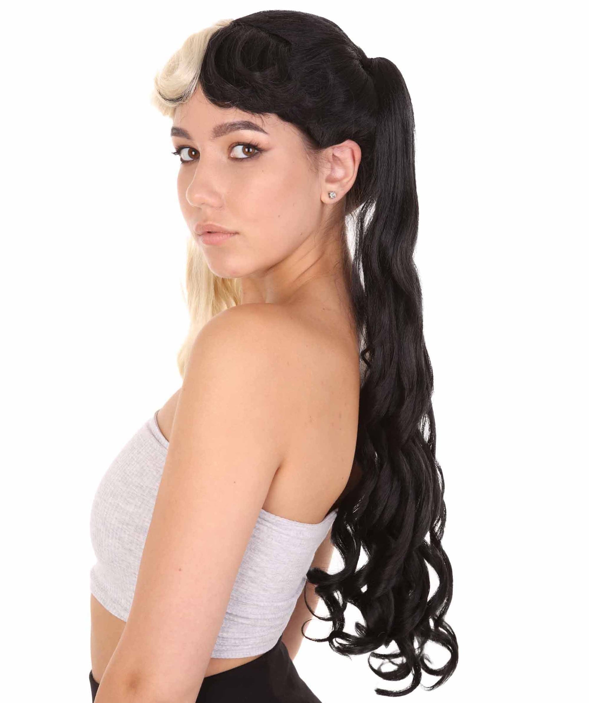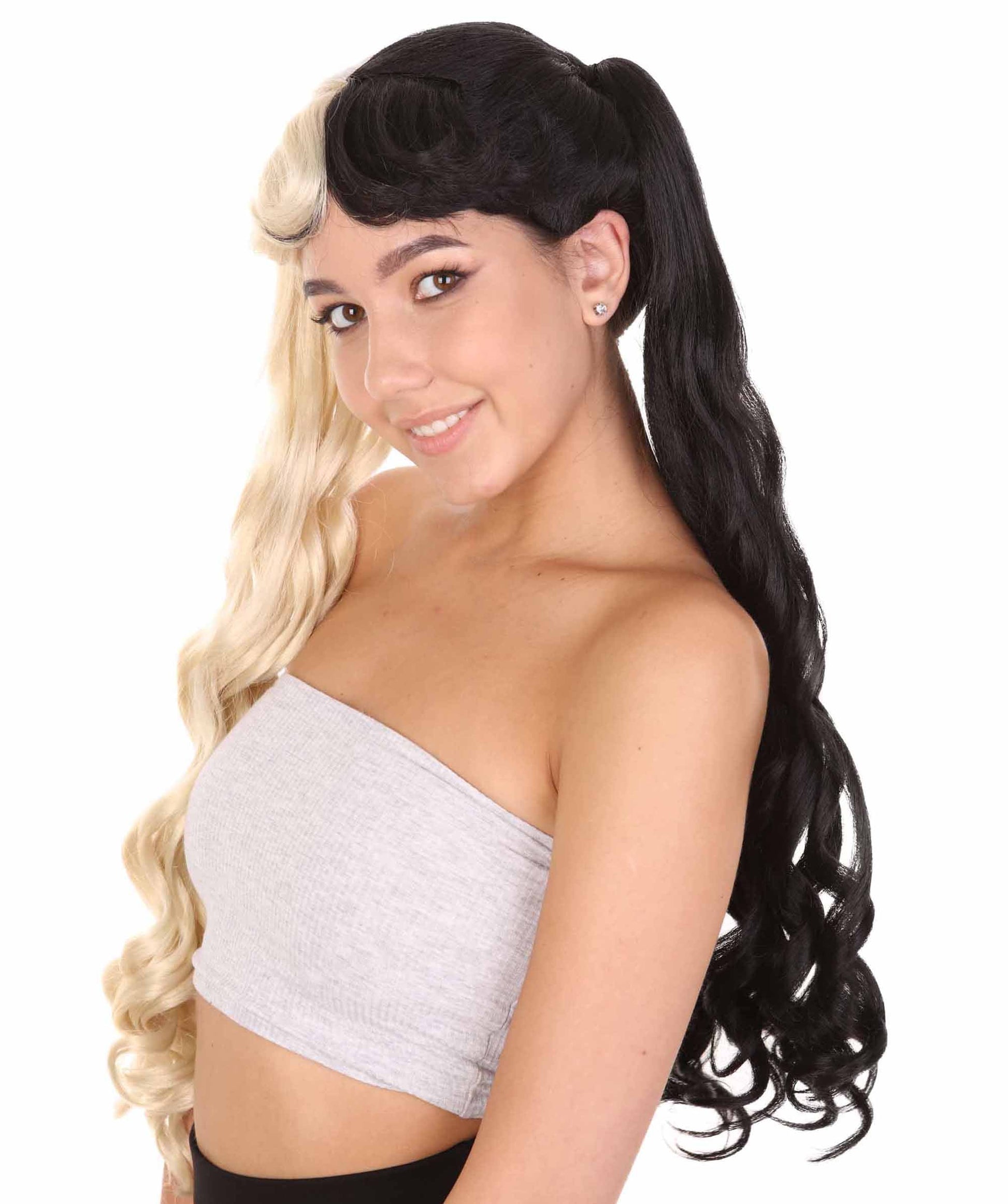 Marie, Long Wavy Two Tone Black and White High Pigtails Womens Wig | Premium Breathable Capless Cap