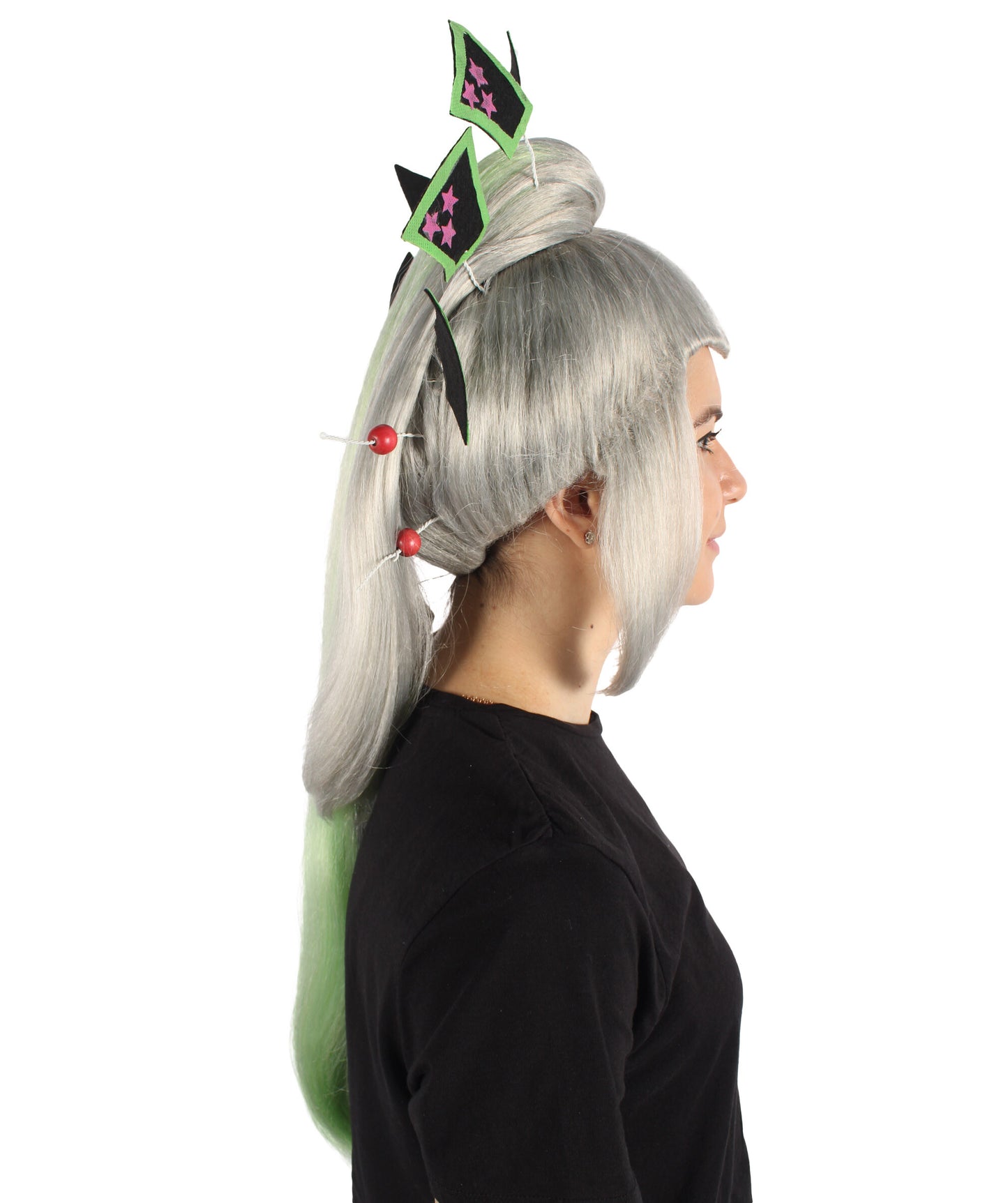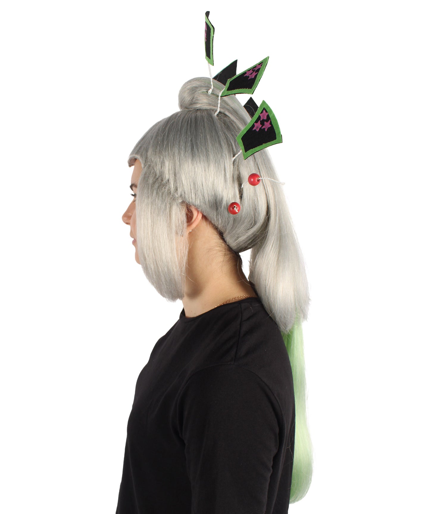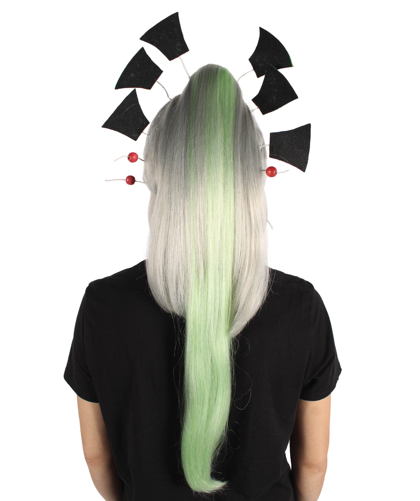 For your demonic appearance, choose our Japanese Anime Villain Character Wig for your next Halloween event! This striking wig features a unique and eye-catching combination of white and green hair, perfectly capturing the essence of the devilish monster character you adore. The wig is expertly crafted with synthetic fibers, ensuring a soft and natural feel while maintaining its vibrant colors.